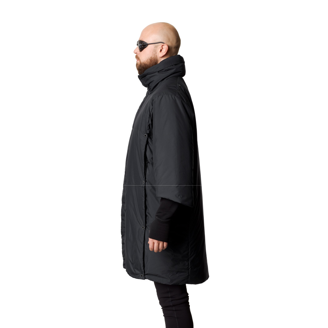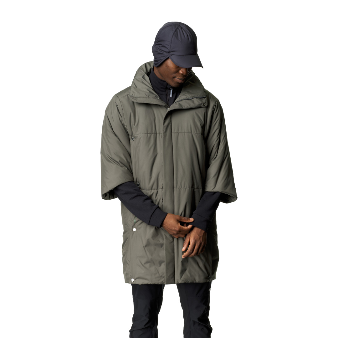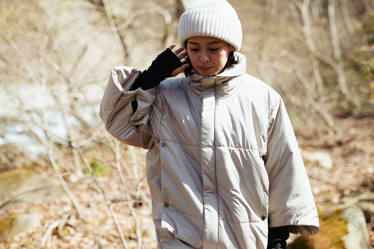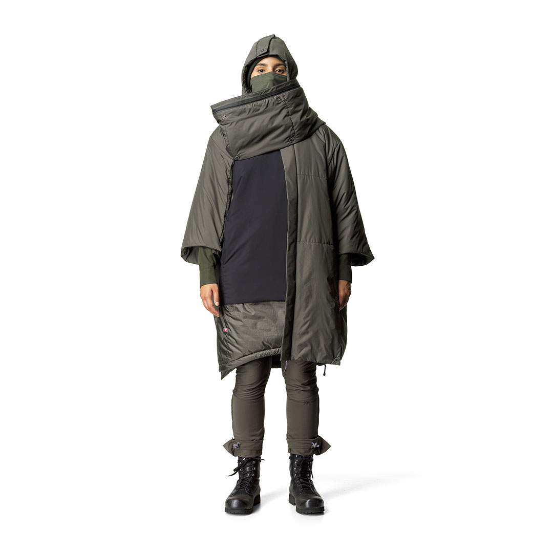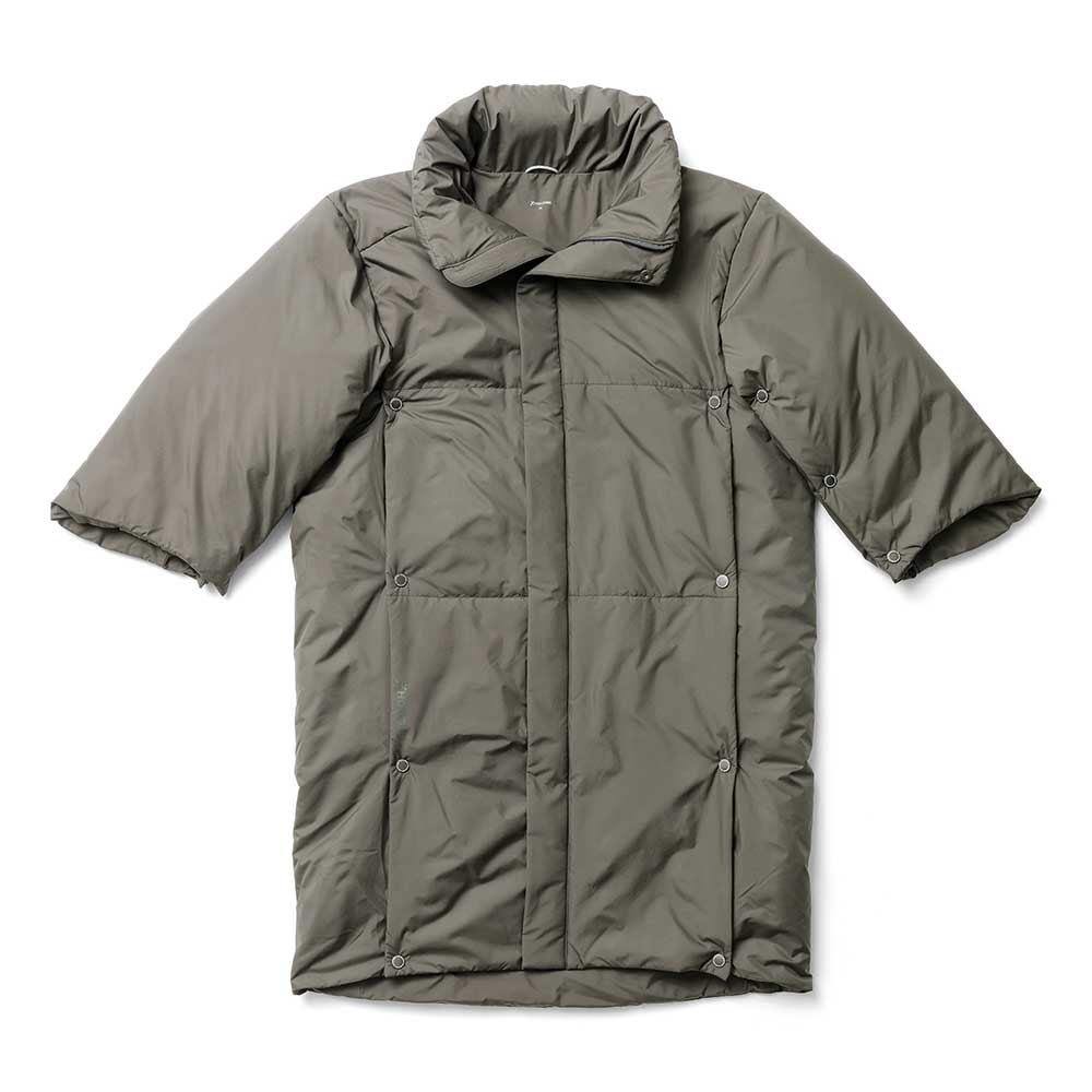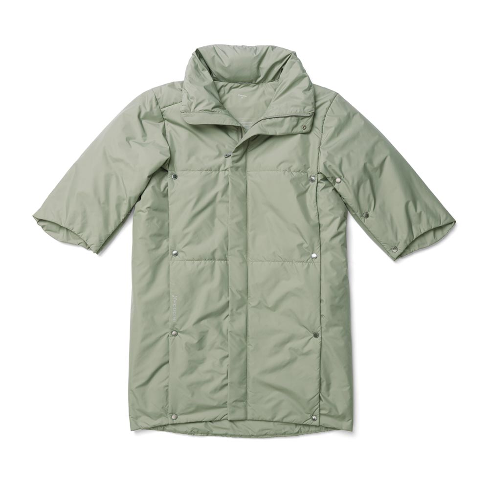 袖を通してジャケットに、フロントのボタンをオープンにしてブランケットに。くるくるとまとめればピローに。そのほか、シュラフの中のテントシューズ代わりや、子ども用のシュラフとして……使い手のアイデア次第でいく通りもの使い方ができる、PrimaLoft® Silver入りインサレーションジャケットです。着用したままでも水仕事や調理などの作業がしやすいよう、袖丈は短めに仕立ててあり、荷物を少なくしたいキャンプシーンに最適。肌寒いときはセンターのジッパーをあげ、インナーにPower Houdiを重ねてみて下さい。最高レベルの暖かさを発揮するはずです。スウェーデン流のちゃんちゃんことも呼べそうな、ゆったりとしたユニセックスのシルエットは、秋口から春先までの気軽な防寒着として活躍しそう。