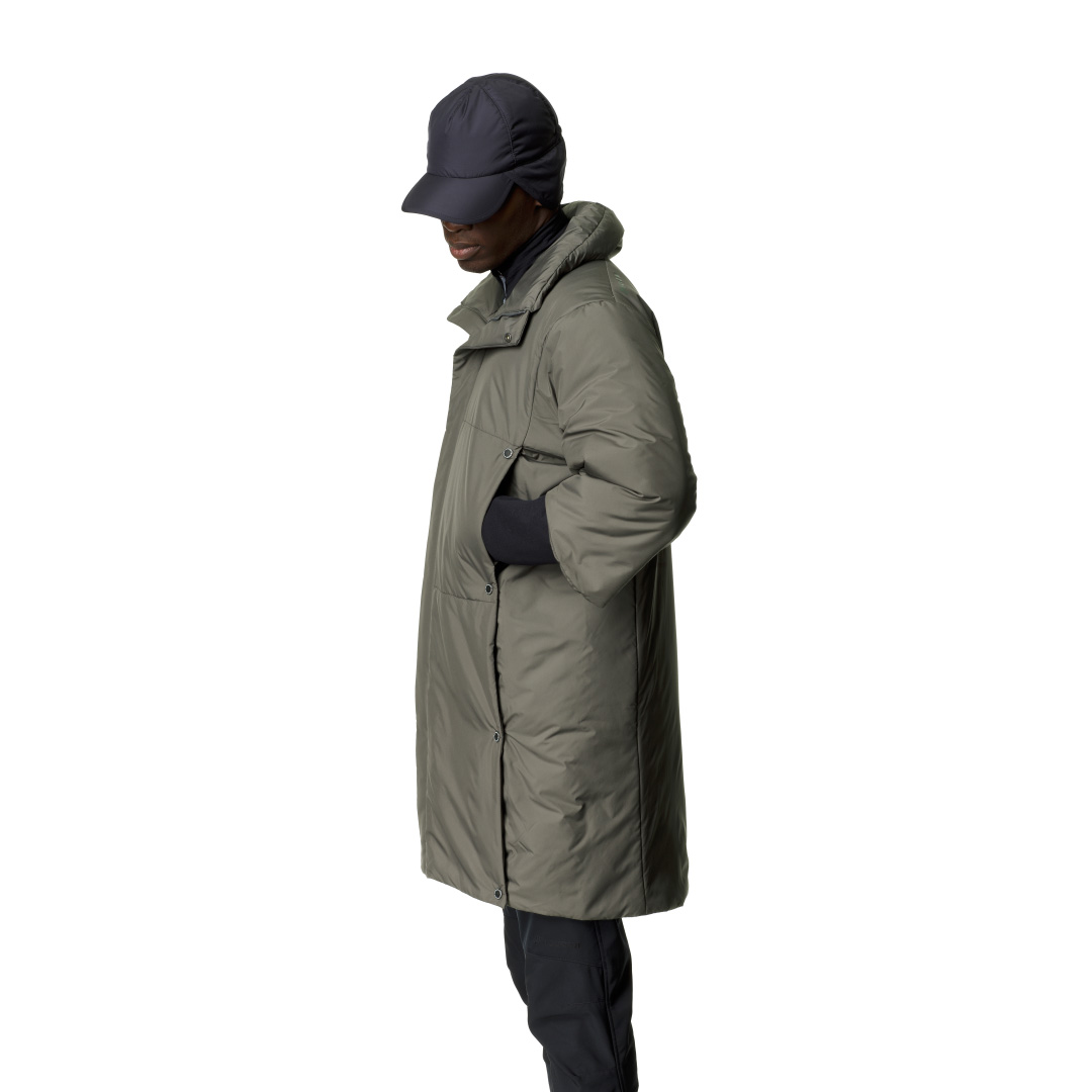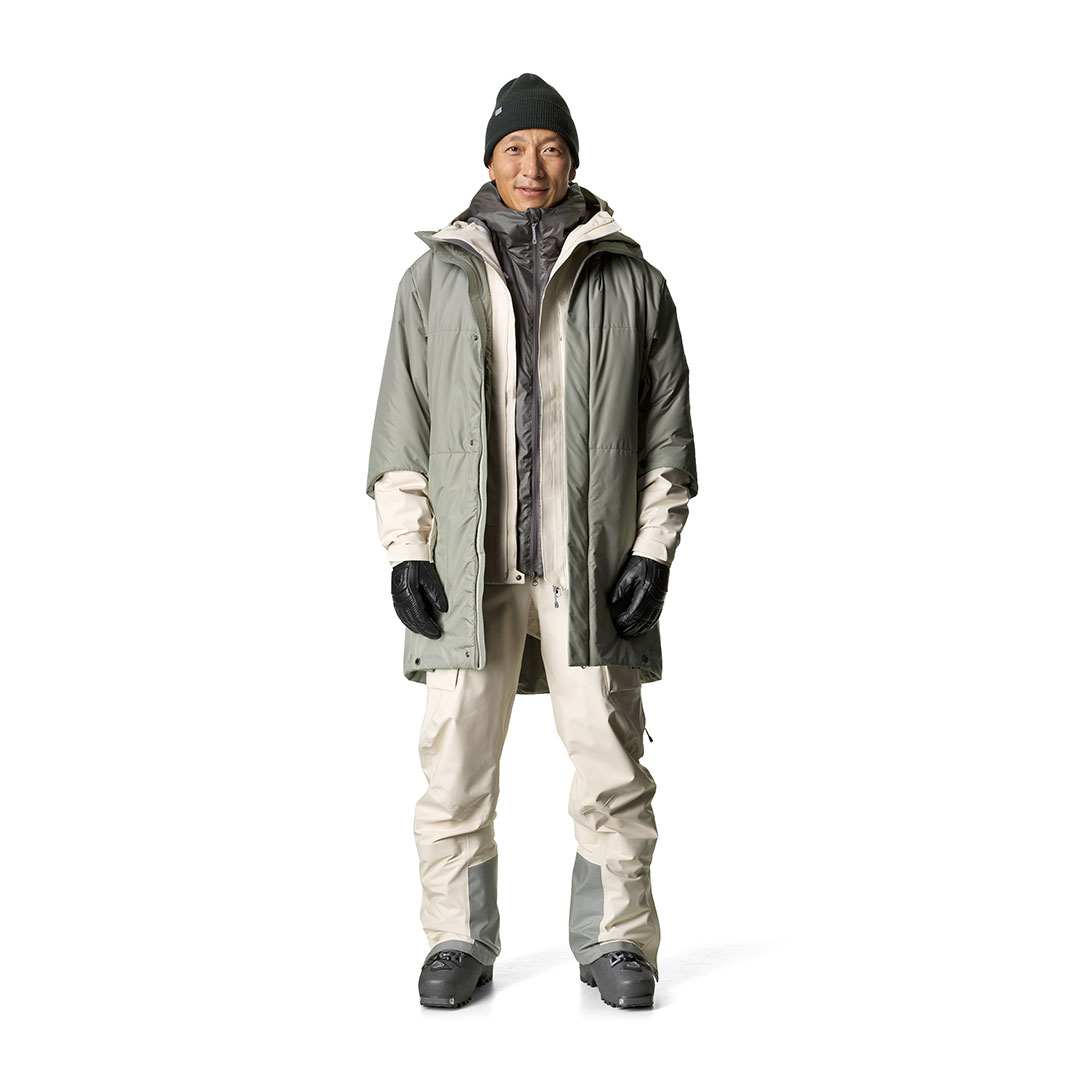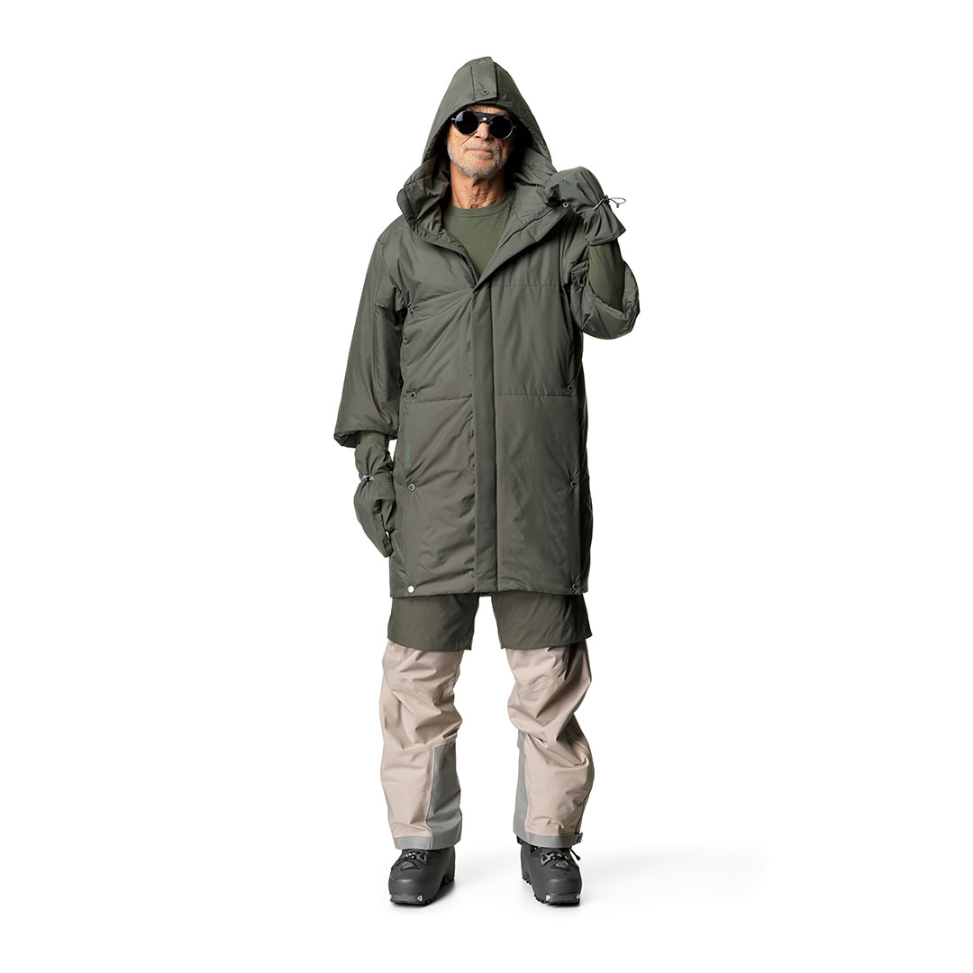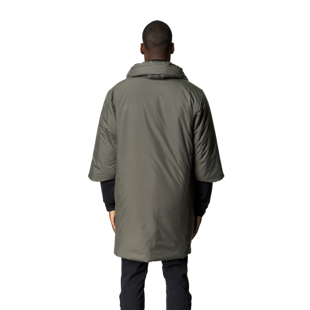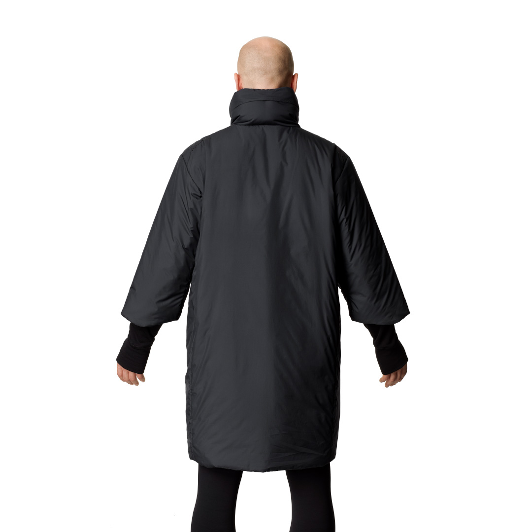 袖を通してジャケットに、フロントのボタンをオープンにしてブランケットに。くるくるとまとめればピローに。そのほか、シュラフの中のテントシューズ代わりや、子ども用のシュラフとして……使い手のアイデア次第でいく通りもの使い方ができる、PrimaLoft® Silver入りインサレーションジャケットです。着用したままでも水仕事や調理などの作業がしやすいよう、袖丈は短めに仕立ててあり、荷物を少なくしたいキャンプシーンに最適。肌寒いときはセンターのジッパーをあげ、インナーにPower Houdiを重ねてみて下さい。最高レベルの暖かさを発揮するはずです。スウェーデン流のちゃんちゃんことも呼べそうな、ゆったりとしたユニセックスのシルエットは、秋口から春先までの気軽な防寒着として活躍しそう。
