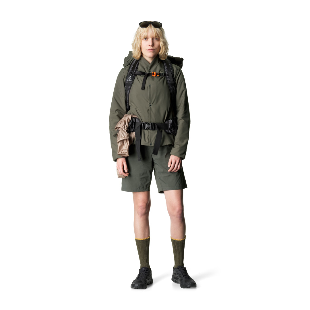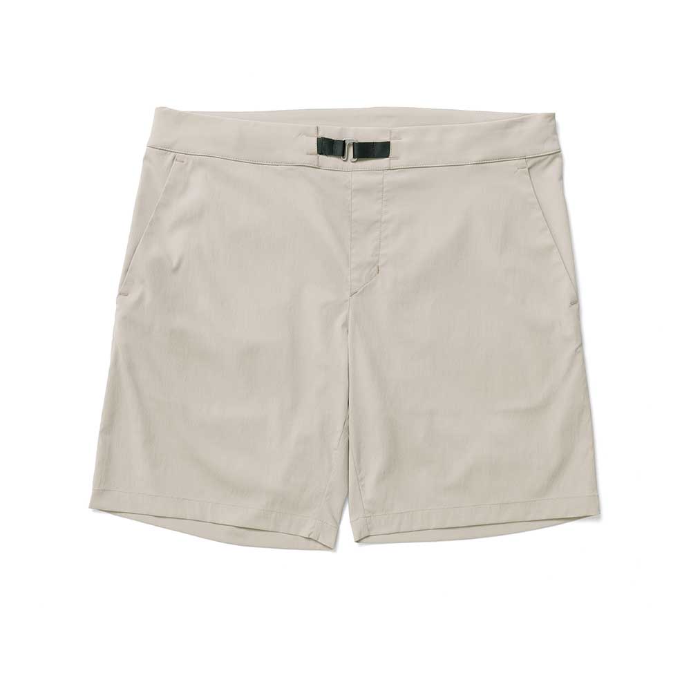 動きやすく快適な超軽量ショーツ。リサイクルナイロンとポリウレタンから作られた透湿性に優れるLiquid Rock™生地は抜群の速乾性をもち、高温多湿の天候下や水辺の遊びの際もドライで快適に保ちます。また伸縮性にも優れ、ソフトな肌触りながらも耐久性を備えています。ウエストには伸縮性のあるバンドと調整可能なバックル、両側のサイドポケットと右ヒップにはバックポケットを配し、さらに本体をコンパクトに収納できるパッカブル仕様のため、アクティビティの移動中や旅行の際の持ち運びに便利です。裾に向かって細くなるテーパードのシルエットを採用したレギュラーフィットで、登山やクライミングのアウトドアショーツとしても、日常生活でのライフスタイルウェアとしても幅広いシチュエーションにマッチします。