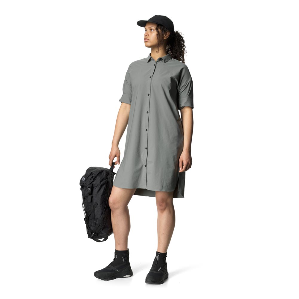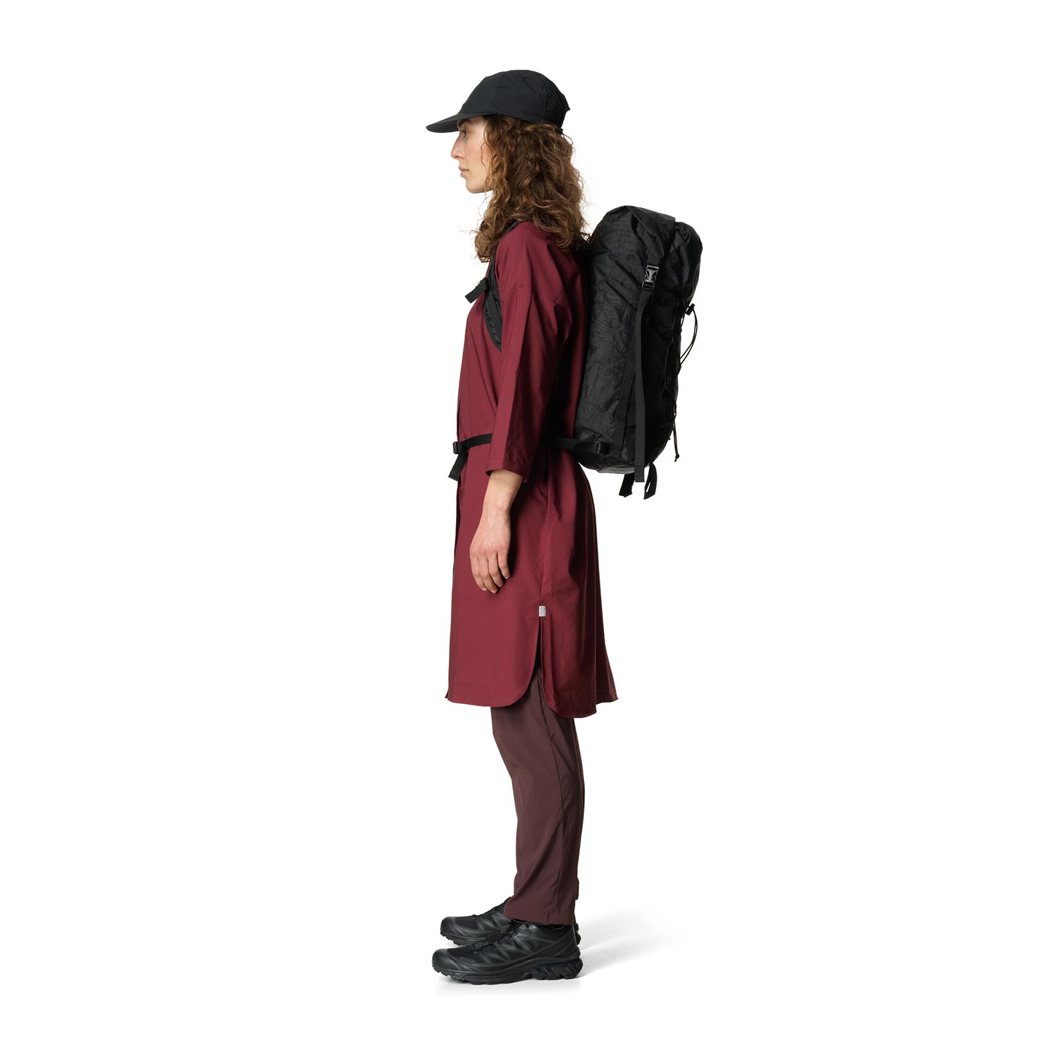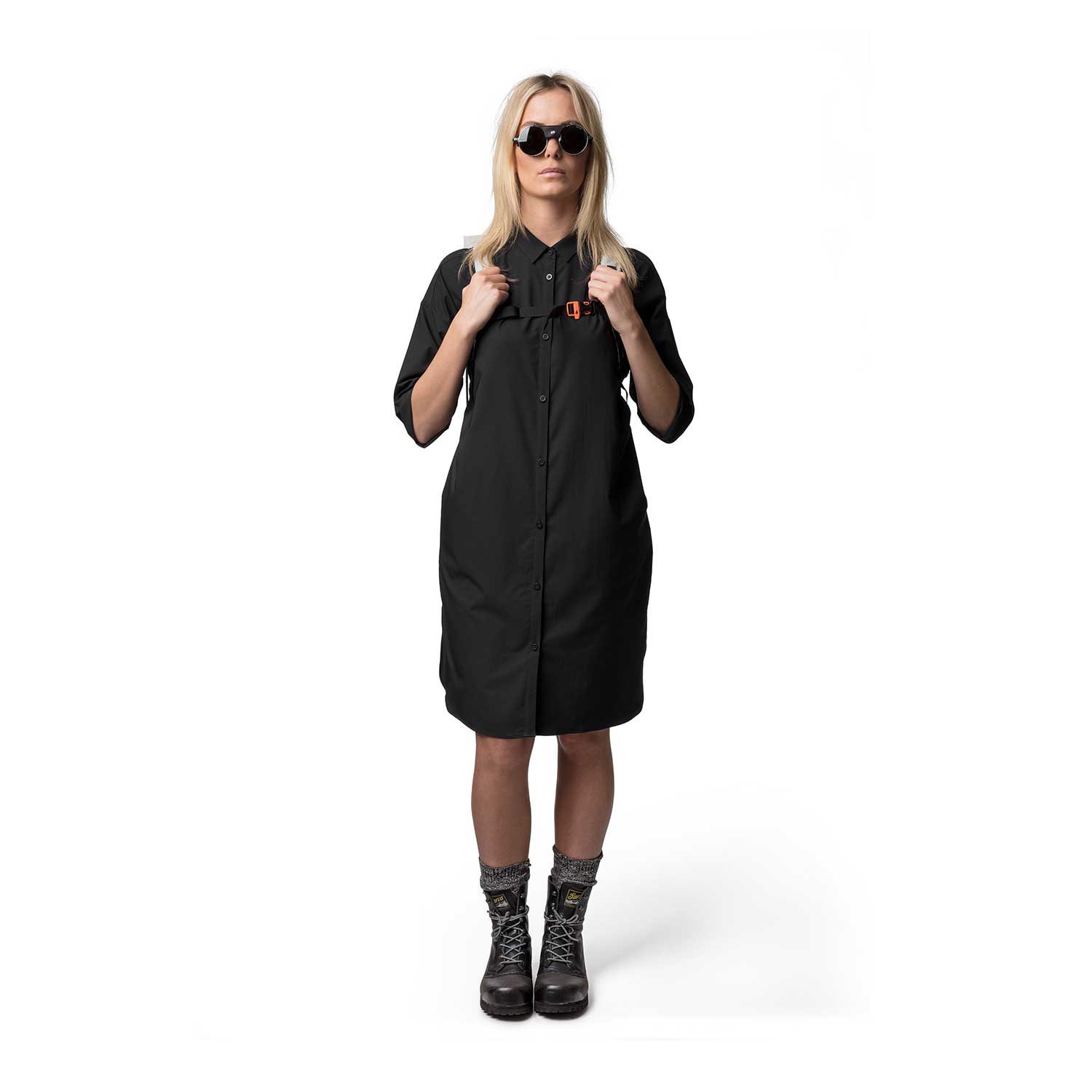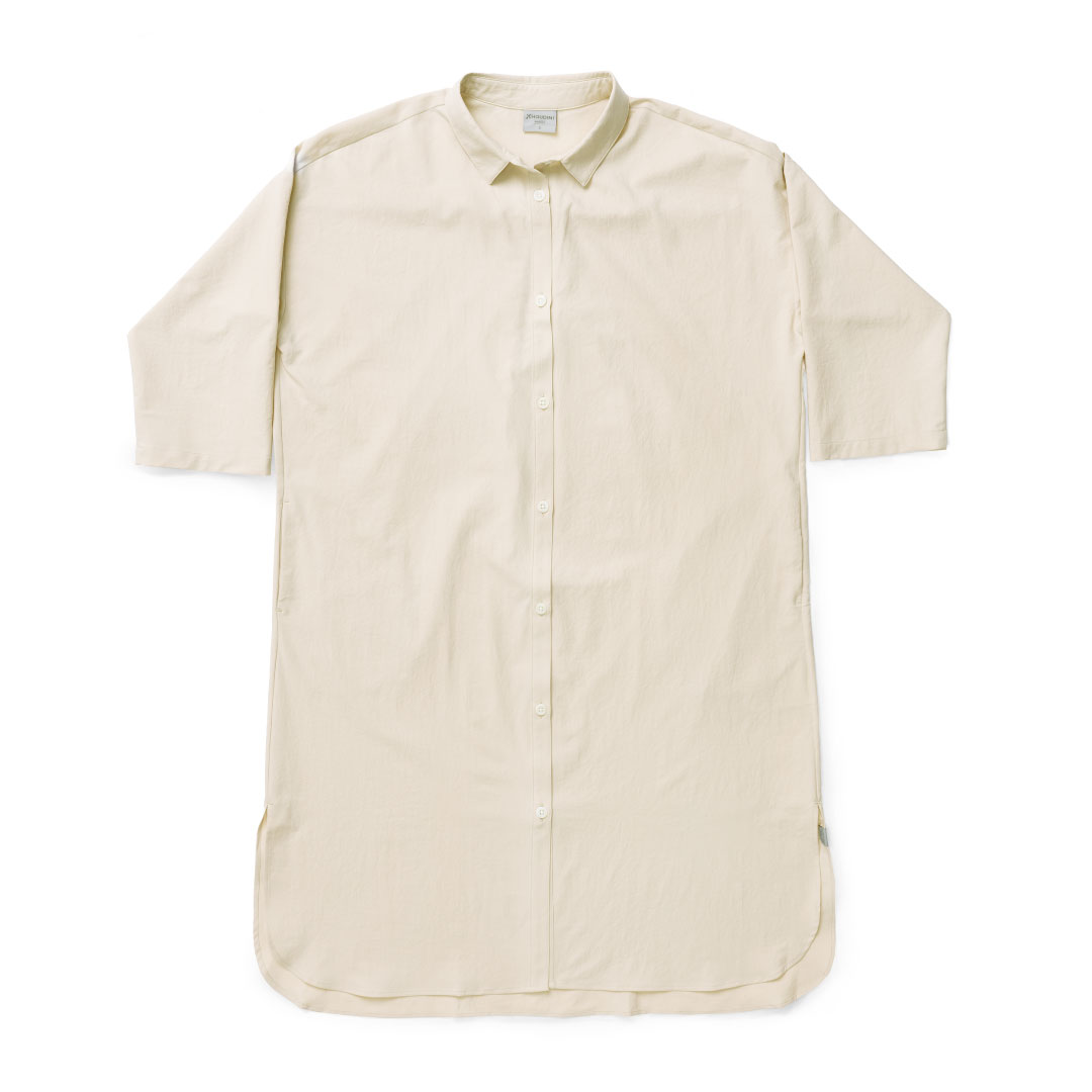 夏のあらゆるシチュエーションにマッチする機能的でシンプルなドレスです。ソフトなリサイクル繊維で作られた超軽量ポリエステル生地のWish Woven™はコットンのような肌触りと2ウェイストレッチの柔軟性をもち、トレッキングやキャンプでハードに使用できるほどの通気性と耐久性を兼ね備えます。速乾性にも優れ、さらに化学薬品を使用することなくUPF50+の紫外線保護指数を備えるため、ビーチで水着の上に着用するのにも適しています。またサイドポケットに収納できるパッカブル仕様のため、旅行の際も用意に持ち運びすることができます。リラックスフィットのデザインを採用しています。