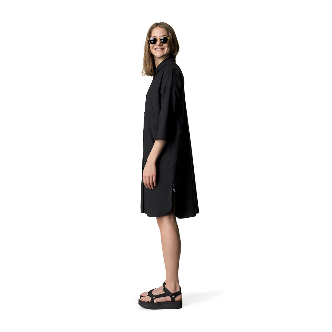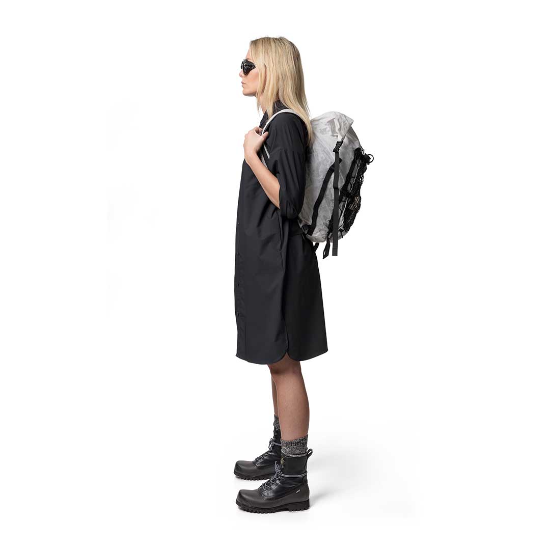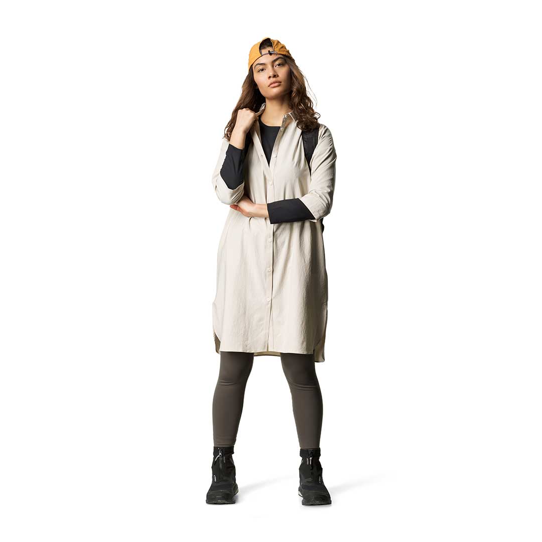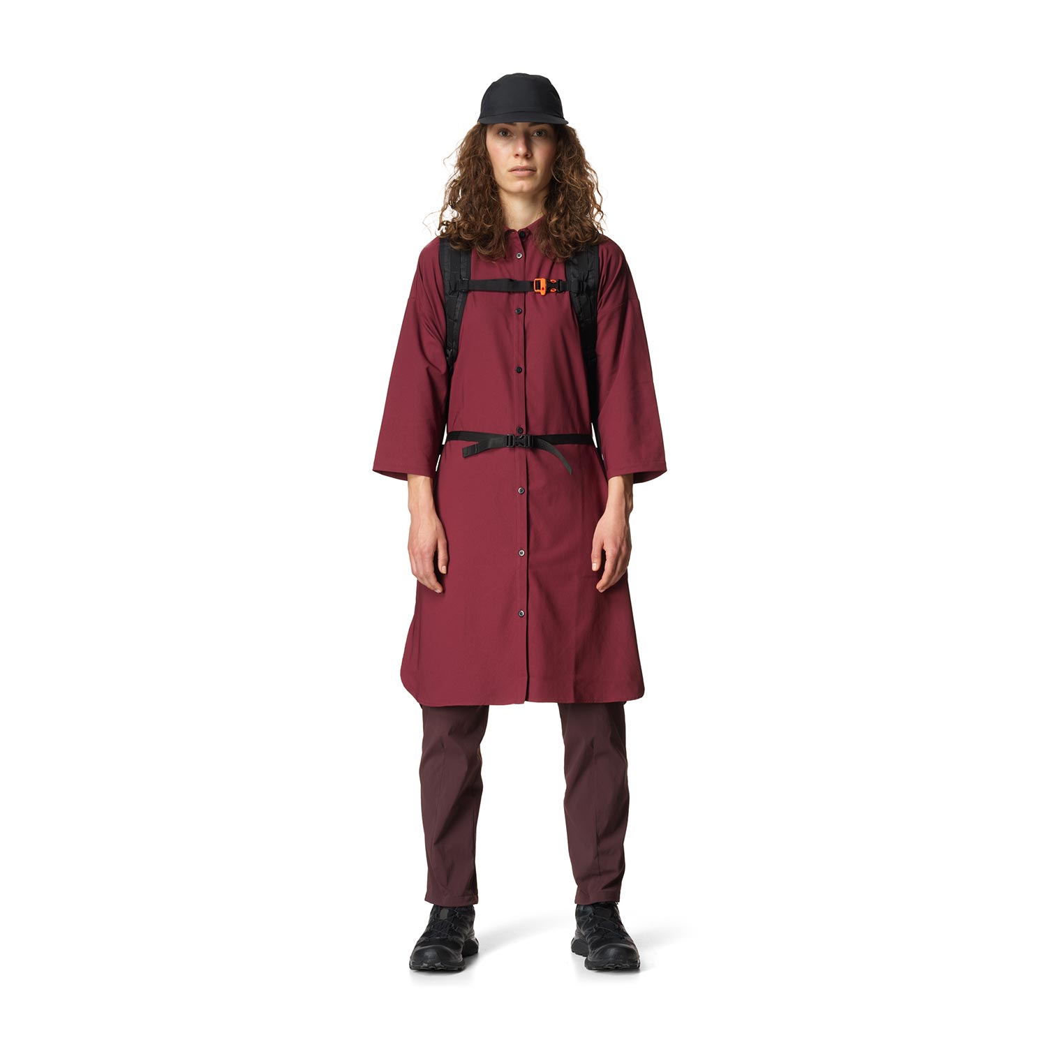 夏のあらゆるシチュエーションにマッチする機能的でシンプルなドレスです。ソフトなリサイクル繊維で作られた超軽量ポリエステル生地のWish Woven™はコットンのような肌触りと2ウェイストレッチの柔軟性をもち、トレッキングやキャンプでハードに使用できるほどの通気性と耐久性を兼ね備えます。速乾性にも優れ、さらに化学薬品を使用することなくUPF50+の紫外線保護指数を備えるため、ビーチで水着の上に着用するのにも適しています。またサイドポケットに収納できるパッカブル仕様のため、旅行の際も用意に持ち運びすることができます。リラックスフィットのデザインを採用しています。