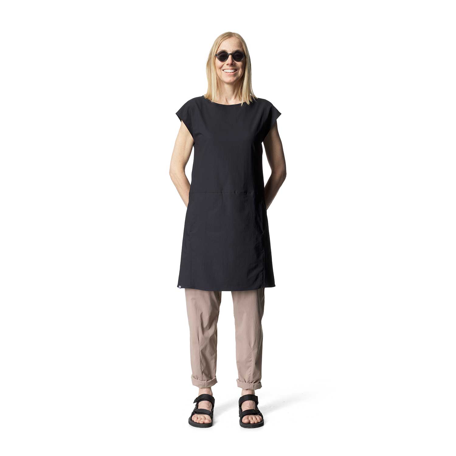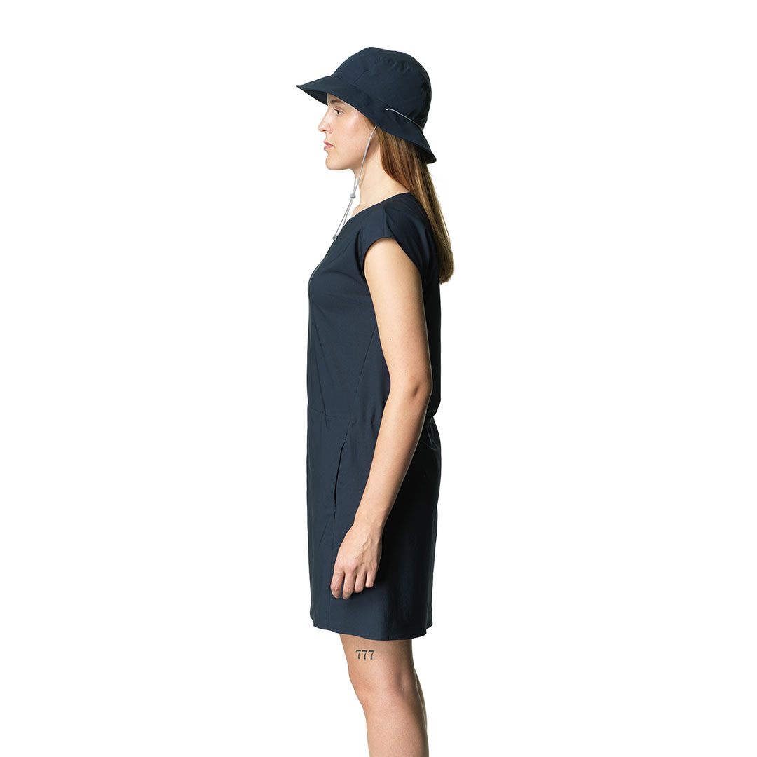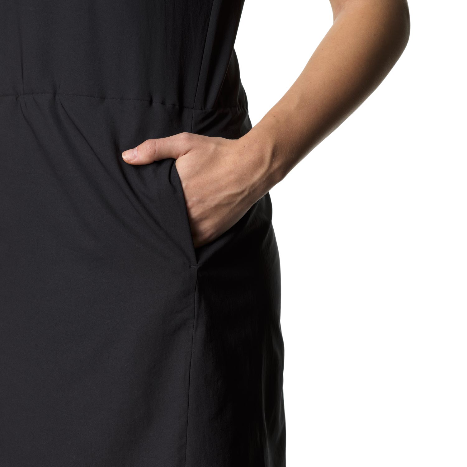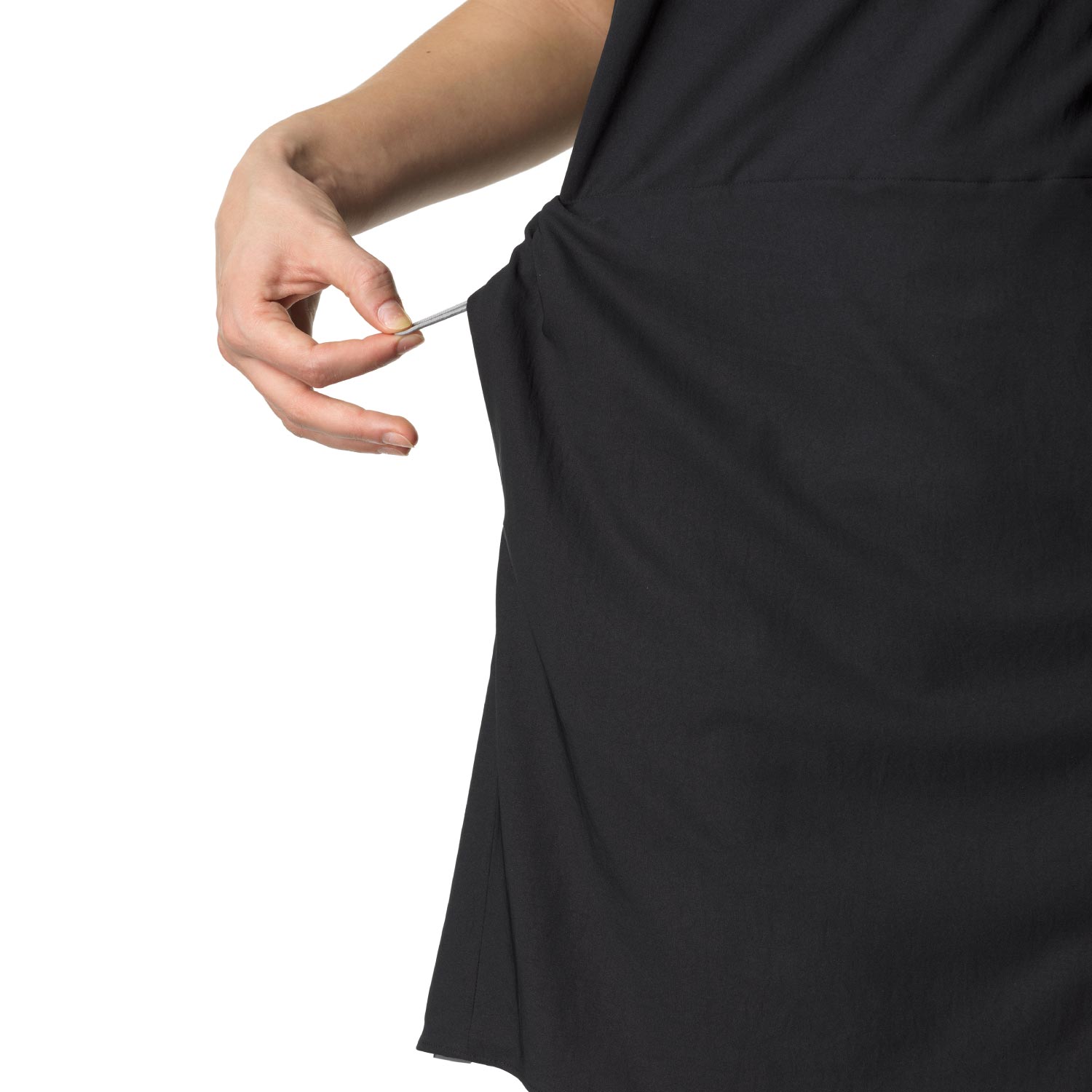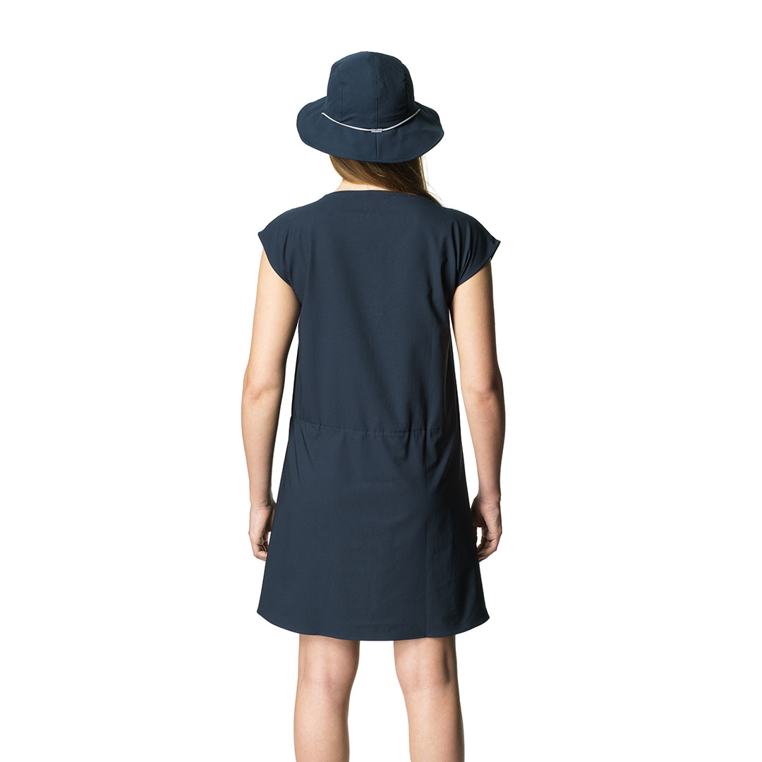 夏の暑いコンディションに対応する、首元が大きく開いたデザインの機能的なドレスです。ソフトなリサイクル繊維で作られた超軽量ポリエステル生地のWish Woven™はコットンのような肌触りと2ウェイストレッチの柔軟性をもち、トレッキングやキャンプで使用できるほどの通気性と耐久性を兼ね備えます。速乾性にも優れ、化学薬品を使用することなくUPF50+の紫外線保護指数を備えるため、山や海から街まであらゆるシチュエーションで着用することができます。ウエストにはフィッティング調整機能、サイドにはジッパー付きのポケットを配し、レギュラーフィットのデザインを採用しています。
