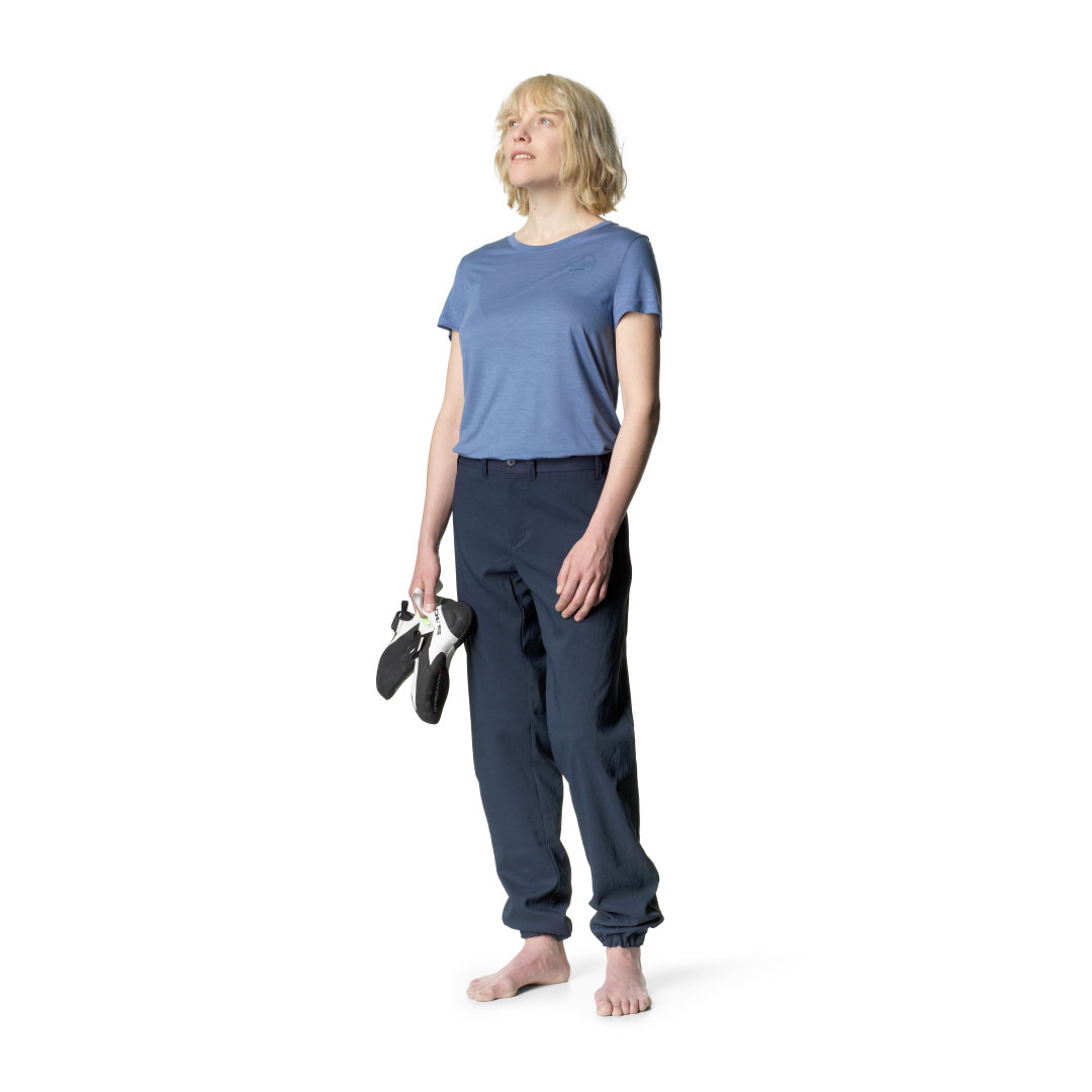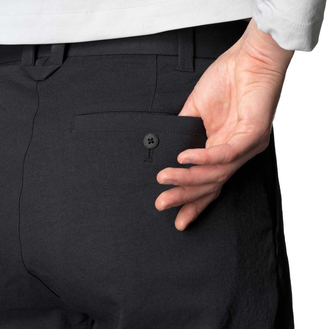クリーンでミニマルなフォルムの高機能パンツです。柔らかな風合いをもつ生地のFlux Weaveは85%のリサイクルポリエステルと15%のバージンポリエステルから作られた生地で、速乾性と伸縮性があり、さらに高い耐久性をもちながらも心地よい通気性を備えています。サイドポケットとバックポケットに加え、裾の絞りを調整するためのドローコードを配しています。裾に向かって少し細くなるテーパードのシルエットを採用したレギュラーフィットで、登山やクライミングのアウトドアパンツとしても、日常生活でのライフスタイルウェアとしても幅広いシーンで着用が可能です。