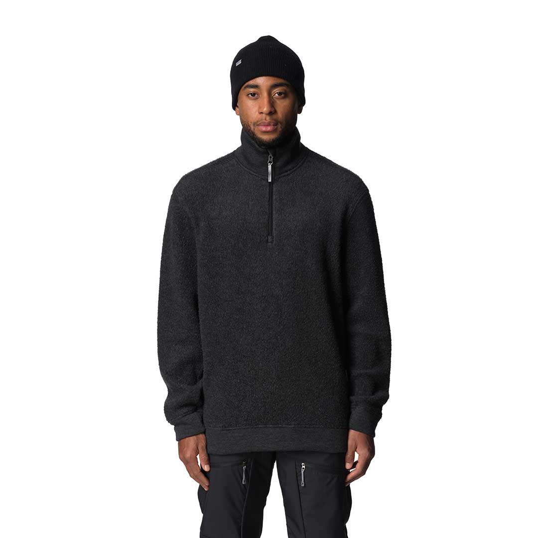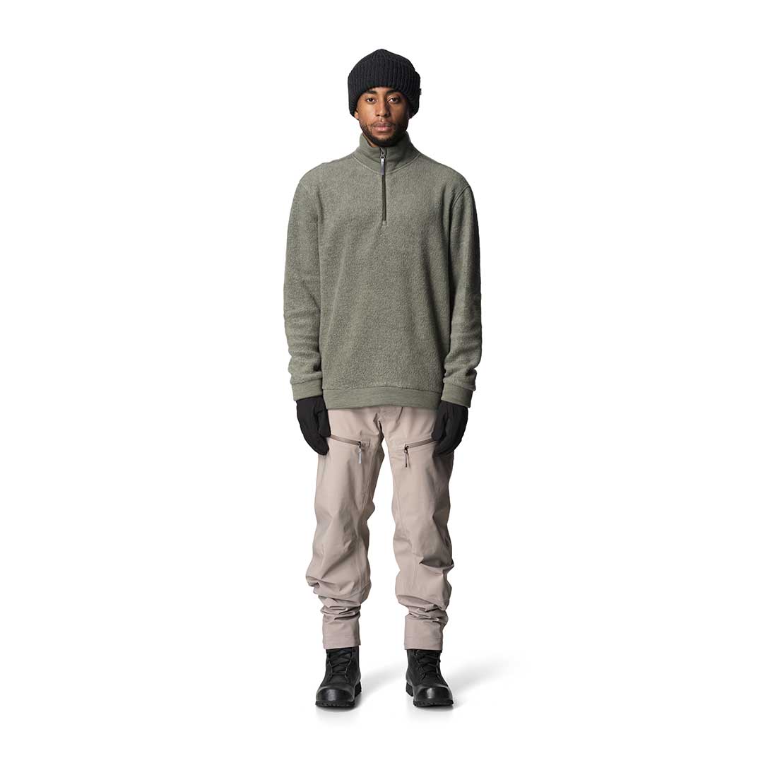 天然繊維と再生繊維から作られた暖かく肌触りの良いハーフジップセーターです。スウェーデン製のWoolly TreeMerino™はメリウールとテンセルの混紡生地で、柔軟な質感ながらも耐久性と透湿性に優れます。濡れても保温性を損なうことがなく、寒い時には暖かさを、暑いコンディションでは涼しさを感じられるというウールの特性に加え、さらに天然の抗菌防臭効果と帯電防止性能も備えています。冬のコートやシェルジャケットの下にミッドレイヤーとして着ても、優れた保温性を発揮しますが、ジップネック仕様で容易に余分な熱を逃がすことができます。シンプルなデザインで、アウトドアアクティビティから日常生活まで様々なシーンにフィットします。
