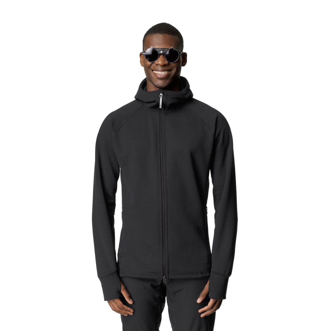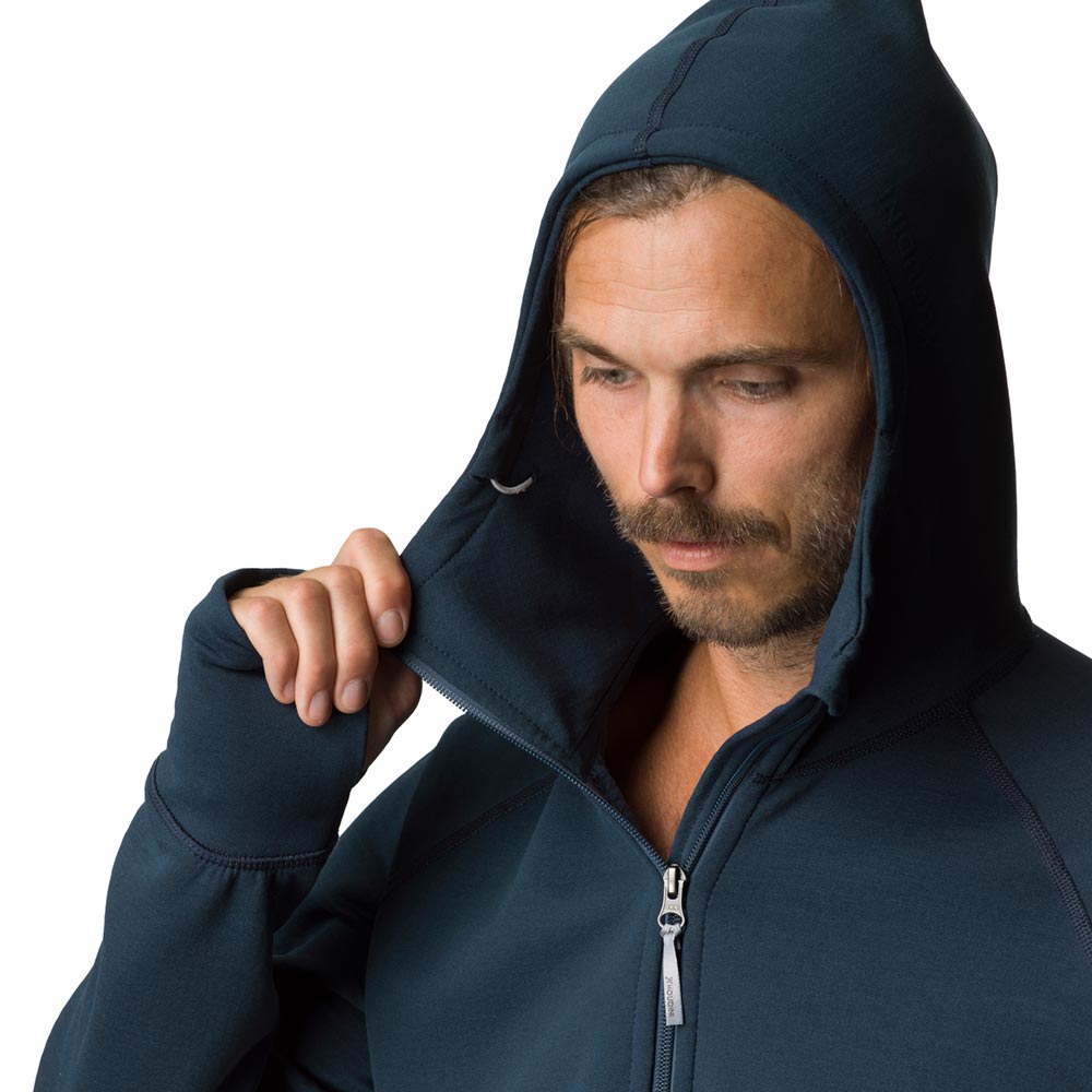 機能性と持続可能性を兼ね備えた、フリースに代わる新世代のミッドレイヤーです。マイクロファイバーの抜け落ちによる海洋汚染を防ぐため米国ポーラテック社が開発した、新しいファブリック構造の繊維を採用しています。その生地は柔らかく滑らかな肌触りのPolartec® Power Air Light。小さなエアポケットに中綿と空気の層を含む特殊なカプセル構造により断熱性を生み出し、マイクロファイバーの抜け落ちは従来のフリース製品と比較して最大80%削減することに成功しました。さらに軽く伸縮性があり、耐久性と透湿性にも優れるため、アウトドアアクティビティで何年も長く着用することができます。スノー用のシェルジャケットの下のミッドレイヤーとしても、登山やキャンプ、日常生活での軽量なアウターとしても一年を通して様々なシーンに最適です。Houdiniを象徴するPower Houdiと同じく、フィッティングの良いフードと高めの襟、フロントのダブルジッパー、手首にはサムホールを備えて快適性を高め、身体にフィットするカットでデザインされています。
