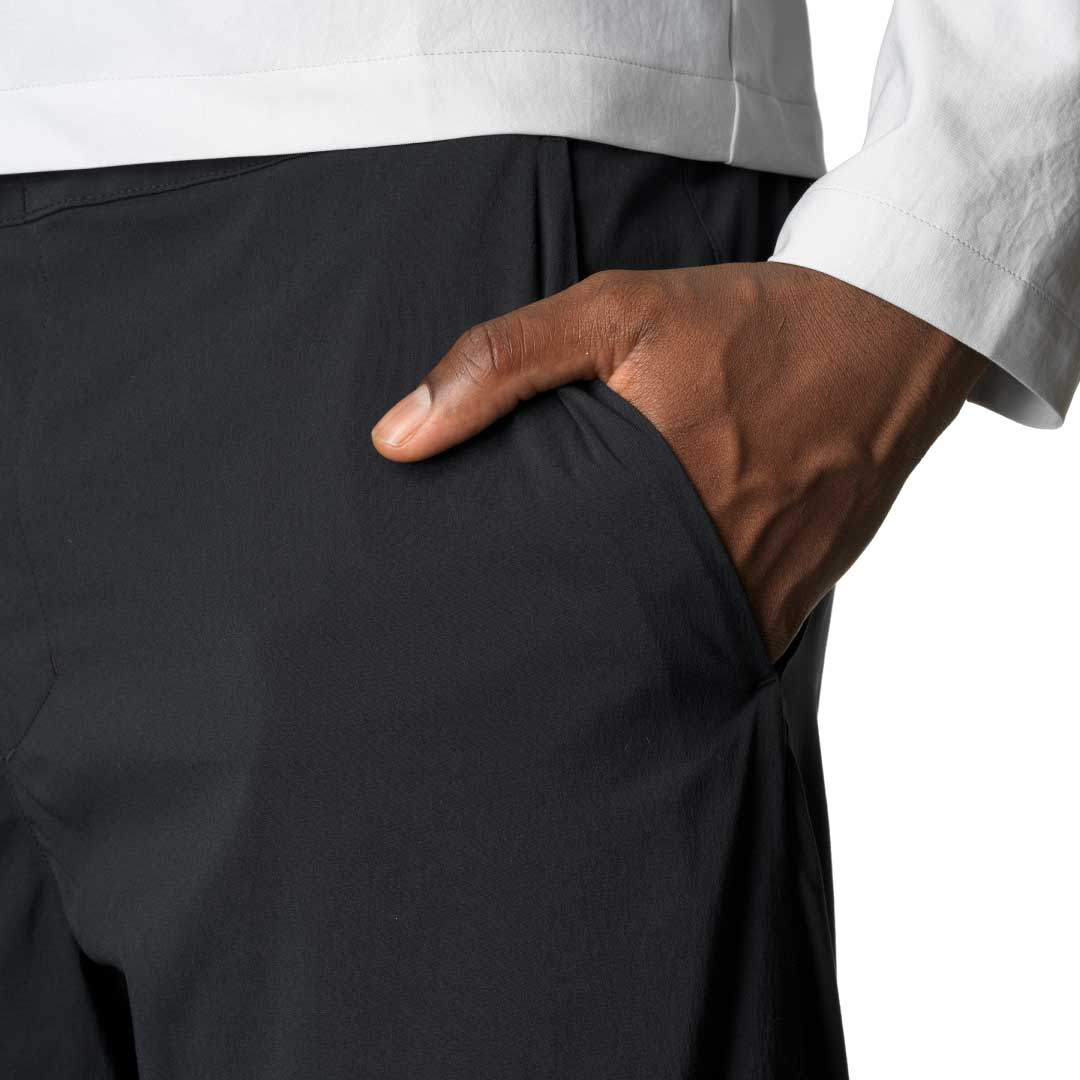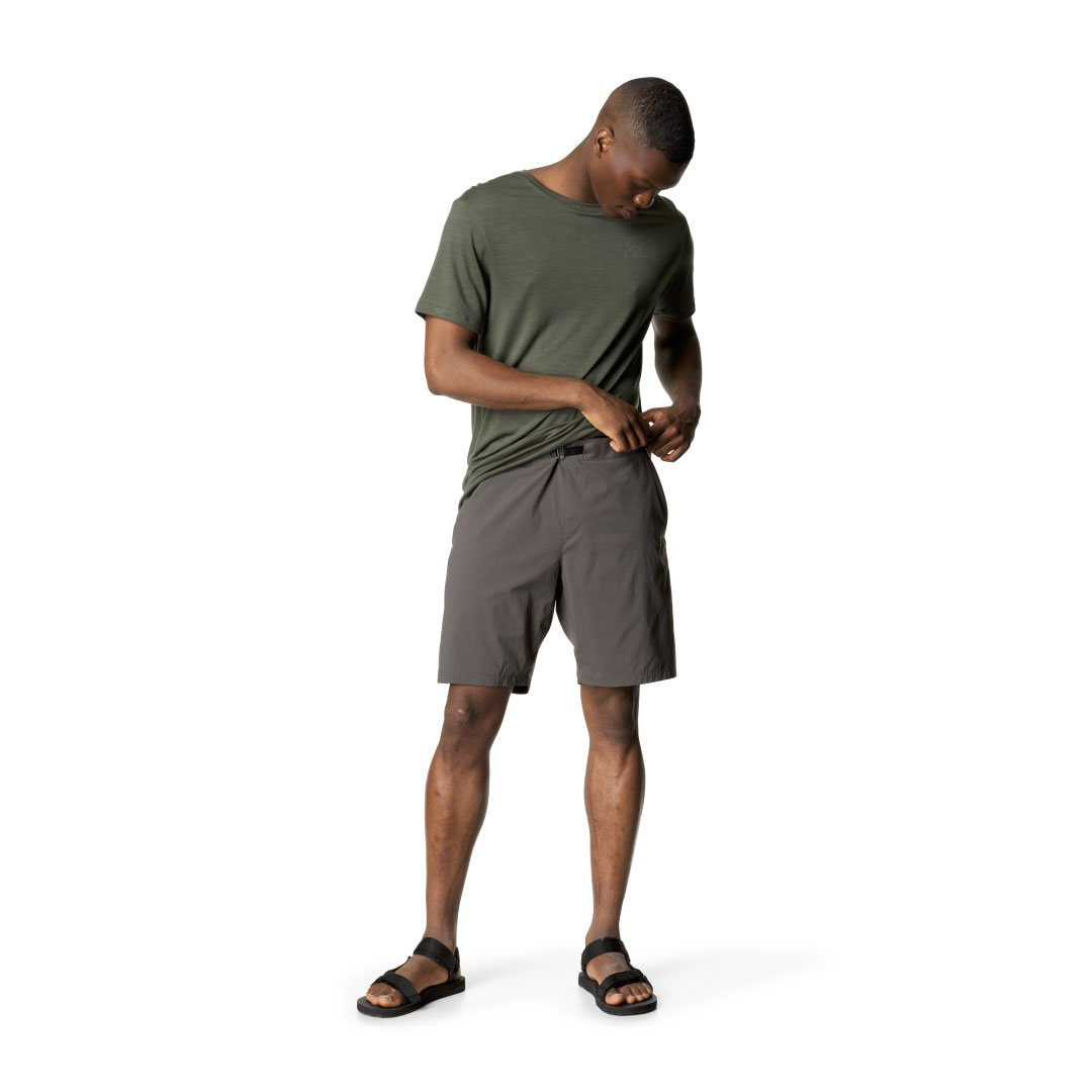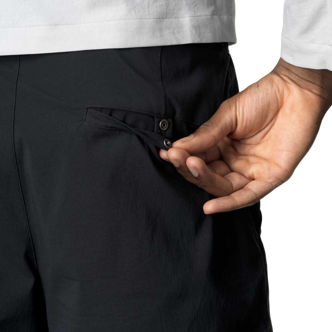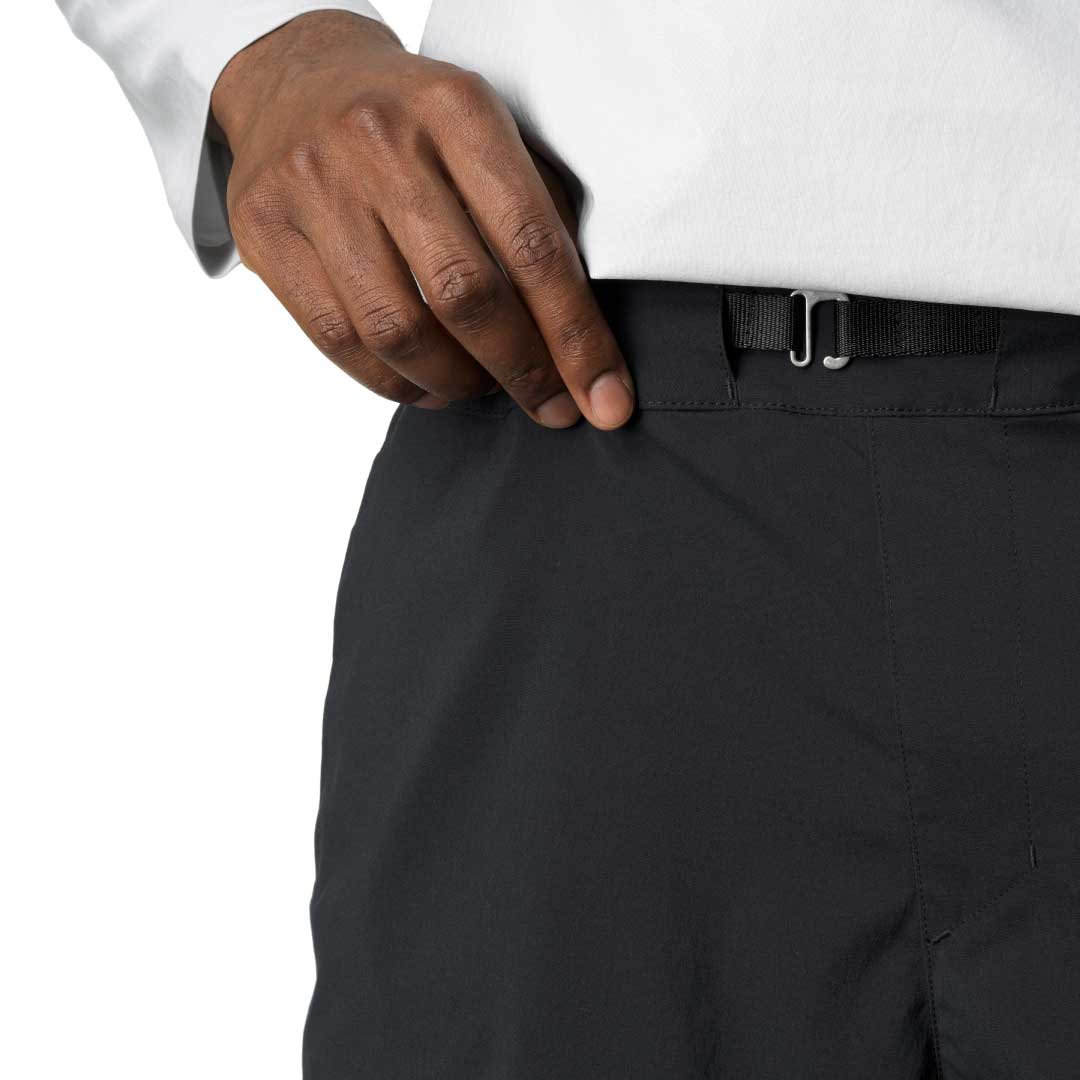 動きやすく快適な超軽量ショーツです。リサイクルナイロンとポリウレタンから作られた透湿性に優れるLiquid Rock™生地は抜群の速乾性をもち、高温多湿の天候下や水辺の遊びの際もドライで快適に保ちます。また伸縮性にも優れ、ソフトな肌触りながらも耐久性を備えています。ウエストには伸縮性のあるバンドと調整可能なバックル、両側のサイドポケットと右ヒップにはバックポケットを配し、さらに本体をコンパクトに収納できるパッカブル仕様のため、アクティビティの移動中や旅行の際の持ち運びに便利です。裾に向かって細くなるテーパードのシルエットを採用したレギュラーフィットで、登山やクライミングのアウトドアショーツとしても、日常生活でのライフスタイルウェアとしても幅広いシチュエーションにマッチします。