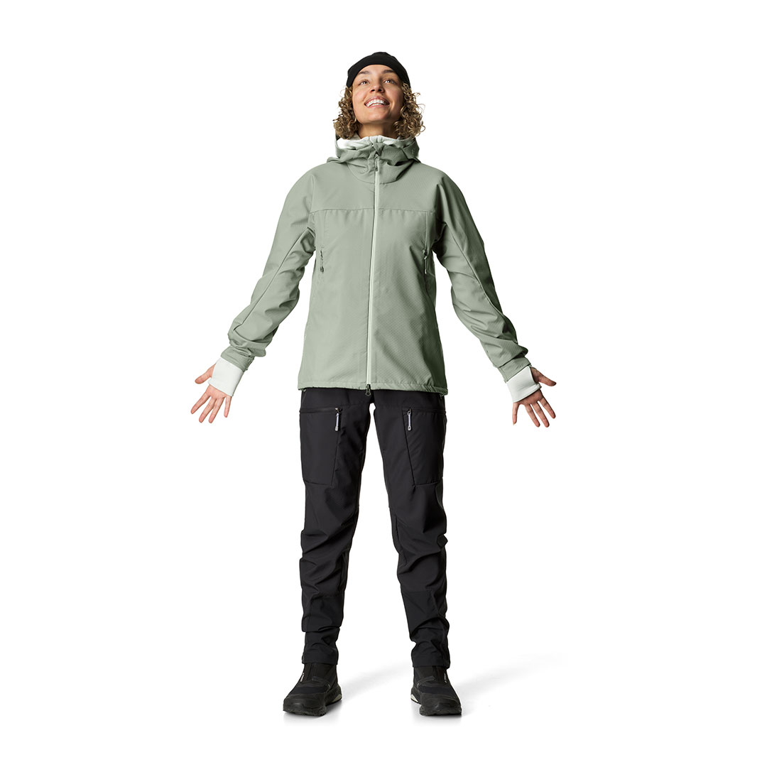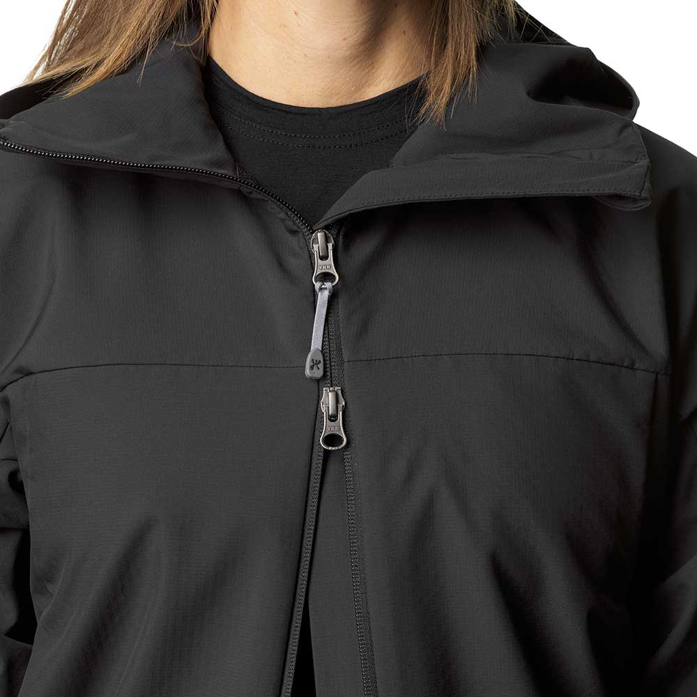 滑らかな着心地と保温性をもつソフトシェルジャケットです。生地のOcta C9 Softshellは耐久性のある表地と、穴の空いた中空糸に8本の突起を放射線状に配列したタコ足型断面のポリエステル繊維、Octa®を断熱材として裏地に使用しています。この組み合わせにより適度な保温力ながらも通気性に優れ、行動中も蒸れずにオーバーヒートすることはありません。また表地は耐風性があり、撥水加工も施されているため、強い風や小雪、短時間の雨などから身体を守ります。ジャケットにはフードとサイドポケット、裾を調整するためのドローコードを備え、メインの開口部はベンチレーションとしても機能するダブルジッパー仕様です。スキーツーリング、クロスカントリー、トレッキングなどのアクティビティから日常生活まで通年での着用が可能で、スリム/テクニカルフィットのデザインを採用しています。