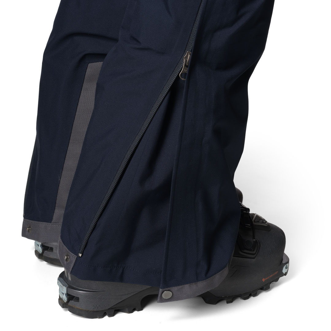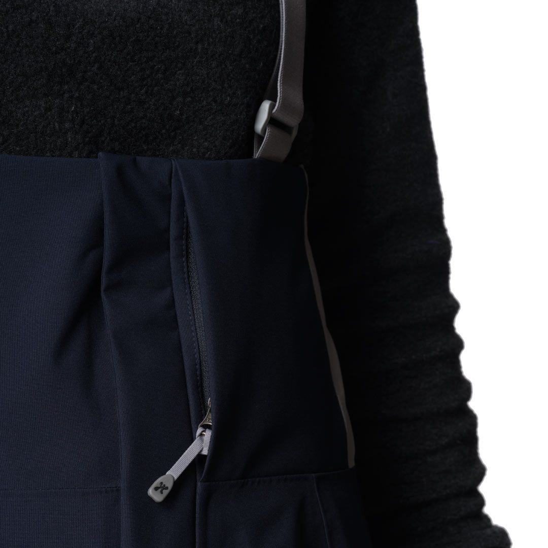 このすべてが持続可能な素材とクリーンテクノロジーで作られた生地により、機能性と環境への配慮を両立した循環型のプロダクトです。またRollercoaster Bib Pantsはアルペンスキーから雪山登山まで、すべてのスノーアクティビティ向けにデザインされていますが、深いパウダーの日にこそ真価を発揮します。しっかりとフィットするビブエリアは転んでも雪の侵入を防いで身体を暖かく保ち、パンツのフィット感をキープする調節可能なサスペンダー、ハーネスと互換性のあるサイドベンチレーションを備え、両太腿のポケットは内ポケット付きでトランシーバーや貴重品を所定の位置に保管できます。レッグエンドにはスノーゲイター、どんなブーツにもフィットする補強ガセット、ブーツに取り付けるための隠し金属フックを装備し、脚の内側はSchoeller™パネルで補強されており、スチールエッジによる生地の切断を防ぎます。