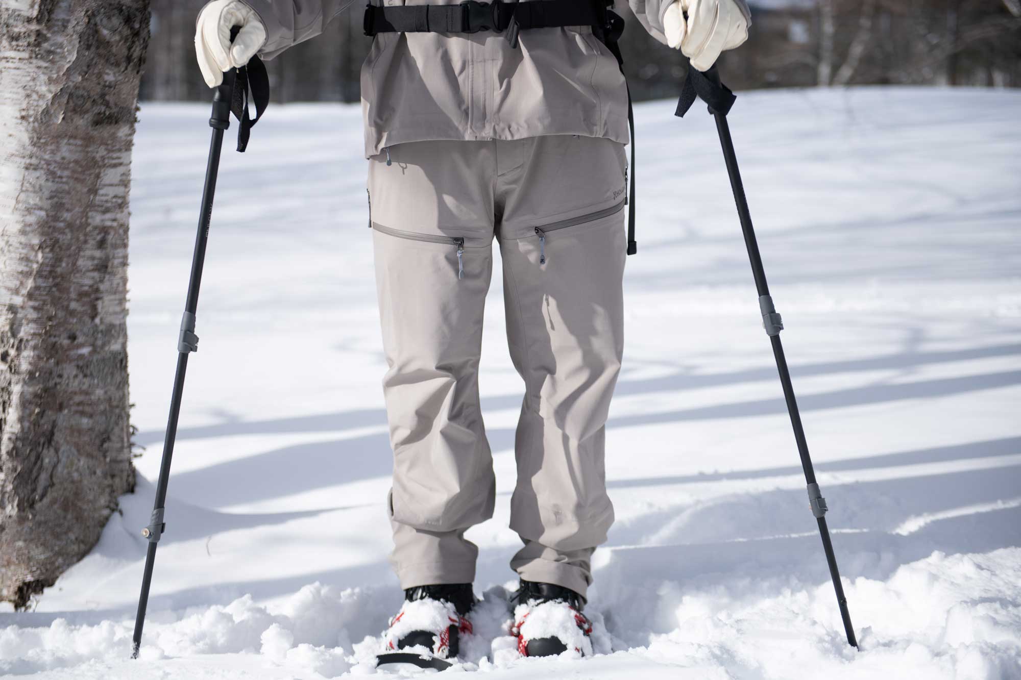 Five to Nine Pantstは、多目的に使える汎用性の高いデザインで、オールシーズン、すべての冒険に最適な、丈夫で防水性に優れる全天候型のマルチウェアです。ハイキング、登山、スキーツーリングでは、雨、風、降雪などの気象条件に関係なく着用でき、厳しい状況のときにこそ活躍します。山で暴風雨や吹雪などの悪天候に見舞われた際の強い味方となり、どんな環境下でも期待を裏切ることはありません。