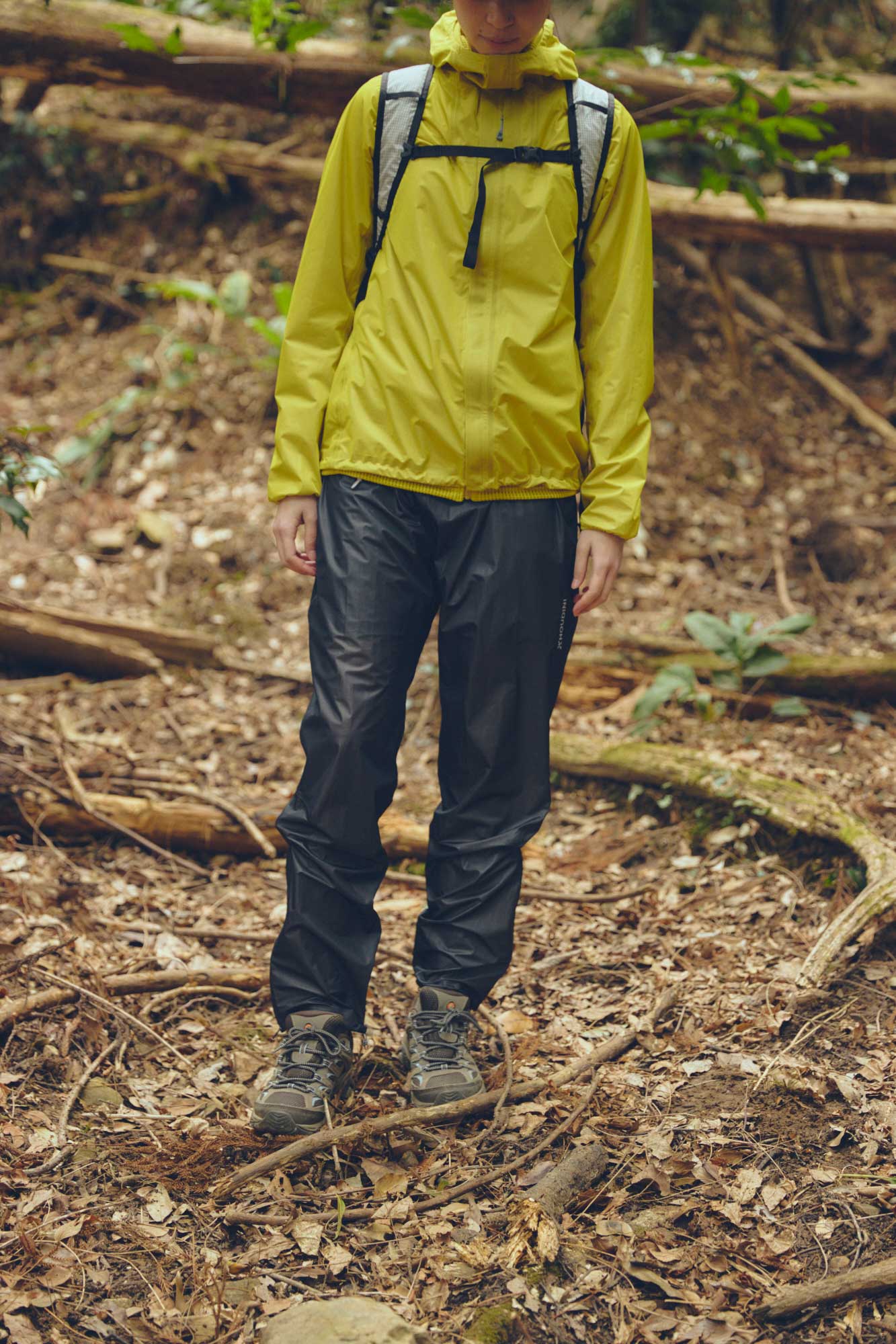 軽量性と収納性が重要な山岳アクティビティ(トレイルランニング、スキーツーリング、縦走登山、トラッドクライミング)向けにデザインされたThe Orange Pantsは、無理なく持ち出せて、バックパックに入れておけば荒天時には濡れずに快適に過ごせます。もちろん、山以外の日常やライフスタイルでも超軽量で快適なレインパンツとして活躍します。