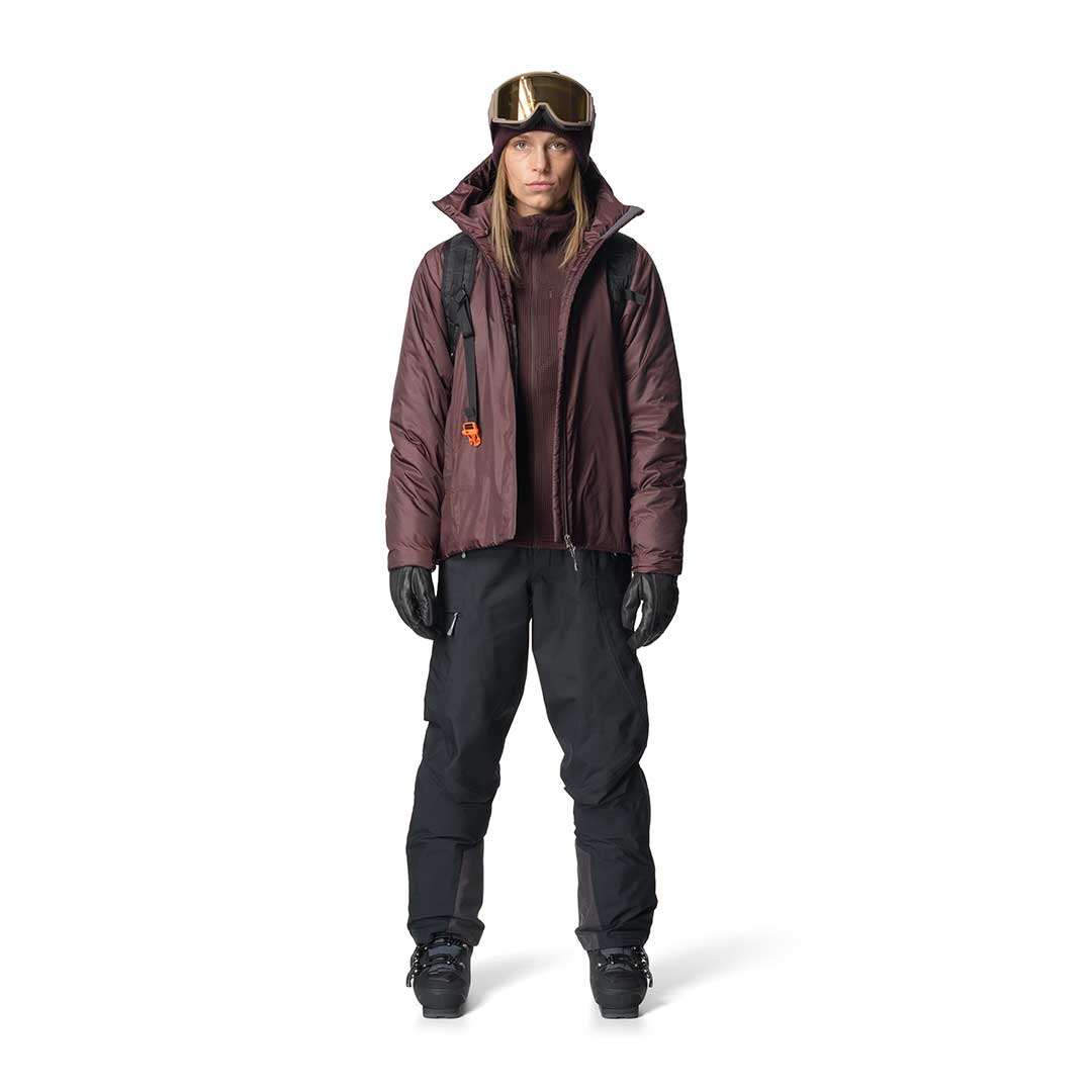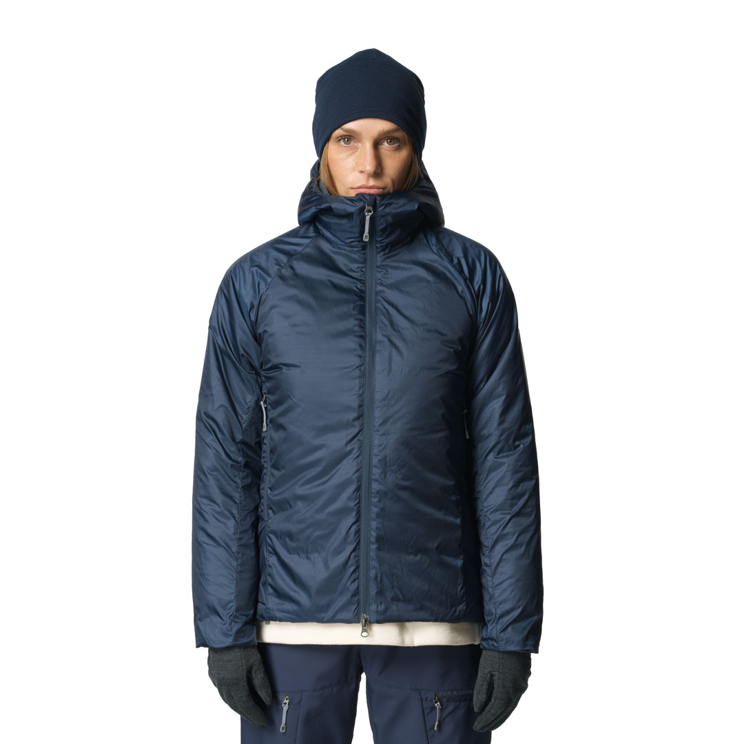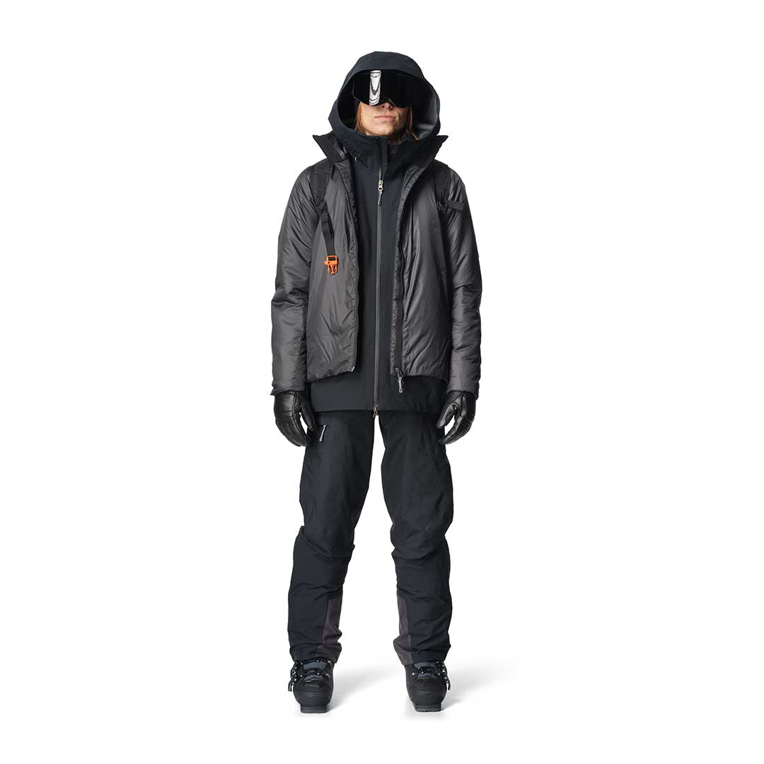 ダウンを一切使用しない最先端のインサレーションジャケットです。スウェーデン語で「ダウンフリー」を意味するDunfriは、その名の通りダウンやフェザーなど動物性の素材を排し、軽量で暖かく濡れても保温性を損なうことのない、100%リサイクルポリエステル製のPrimaLoft® Gold Insulationを中綿に採用しました。これは合成断熱材のもつ機能的なメリットに加え、Houdiniではアニマルウェルフェアの観点からダウンを使用しないためでもあります。軽くて丈夫な表地のSpinner Ripstop™も100%リサイクルポリエステル製で、PFASフリーの撥水処理が施されています。これらすべての持続可能な素材と、着古したら再度リサイクルも可能なことにより、快適性と環境への配慮を兼ね備えた循環型プロダクトです。またクリーンでミニマルなルックスと機能性の組み合わせは、スタイルとパフォーマンスを両立し、アクティビティから日常生活まで幅広いシーンに対応します。スキーツアー、登山遠征、キャンプ、寒い季節の通勤などに最適で、パッカブル機能も備えているため、山行や旅行でコンパクトに持ち運ぶことが可能です。アウターとしても、シェルの下のミッドレイヤーとしても着用できるよう、汎用性の高いレギュラーフィットを採用しています。