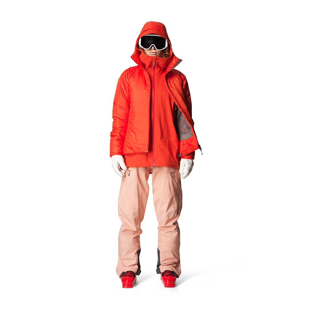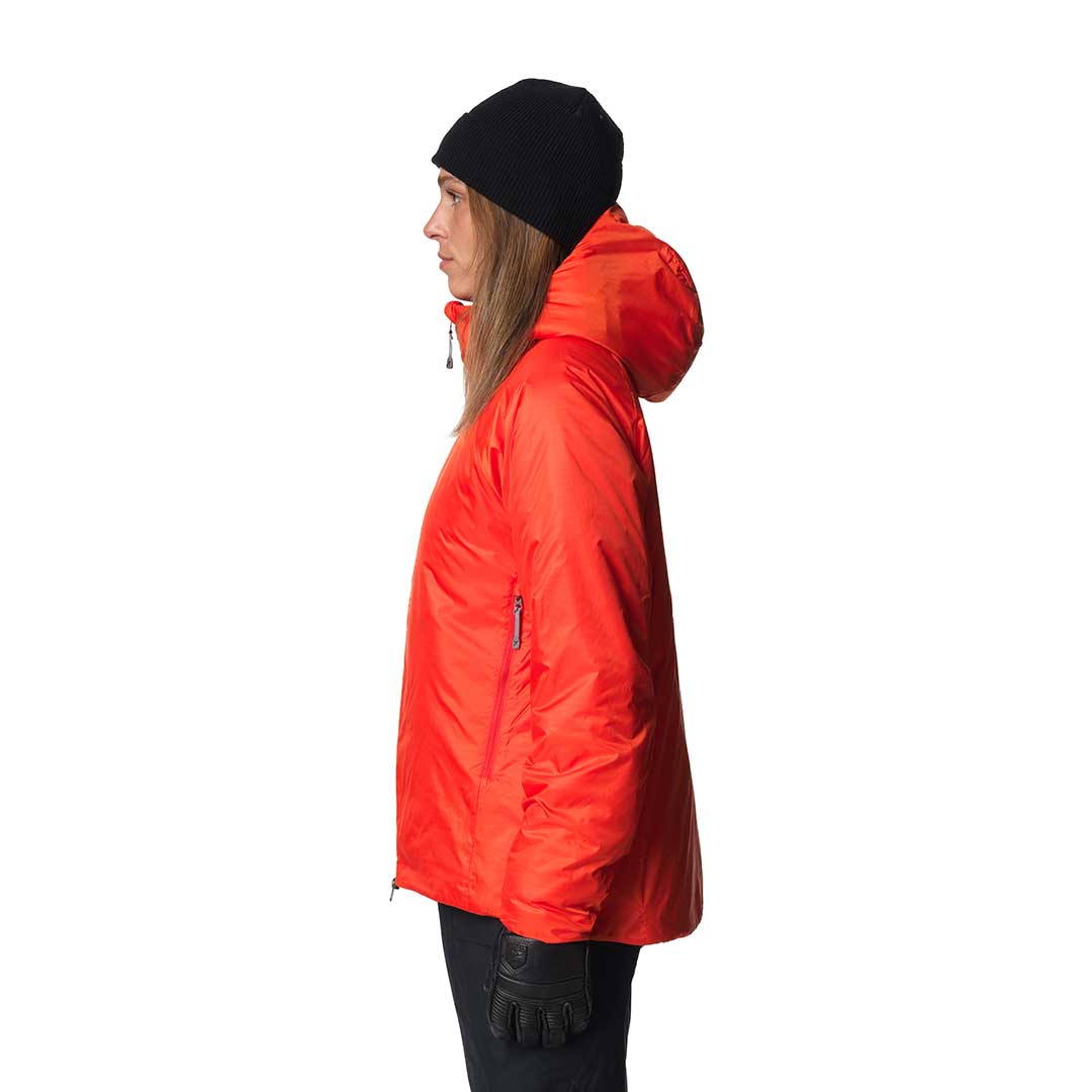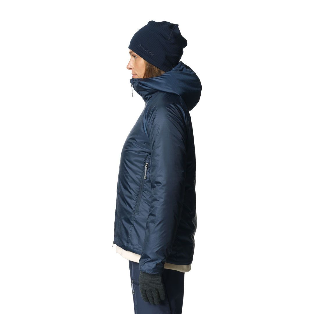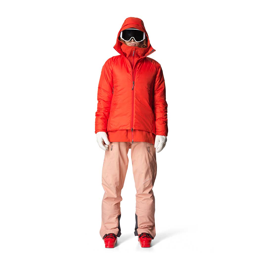ダウンを一切使用しない最先端のインサレーションジャケットです。スウェーデン語で「ダウンフリー」を意味するDunfriは、その名の通りダウンやフェザーなど動物性の素材を排し、軽量で暖かく濡れても保温性を損なうことのない、100%リサイクルポリエステル製のPrimaLoft® Gold Insulationを中綿に採用しました。これは合成断熱材のもつ機能的なメリットに加え、Houdiniではアニマルウェルフェアの観点からダウンを使用しないためでもあります。軽くて丈夫な表地のSpinner Ripstop™も100%リサイクルポリエステル製で、PFASフリーの撥水処理が施されています。これらすべての持続可能な素材と、着古したら再度リサイクルも可能なことにより、快適性と環境への配慮を兼ね備えた循環型プロダクトです。またクリーンでミニマルなルックスと機能性の組み合わせは、スタイルとパフォーマンスを両立し、アクティビティから日常生活まで幅広いシーンに対応します。スキーツアー、登山遠征、キャンプ、寒い季節の通勤などに最適で、パッカブル機能も備えているため、山行や旅行でコンパクトに持ち運ぶことが可能です。アウターとしても、シェルの下のミッドレイヤーとしても着用できるよう、汎用性の高いレギュラーフィットを採用しています。