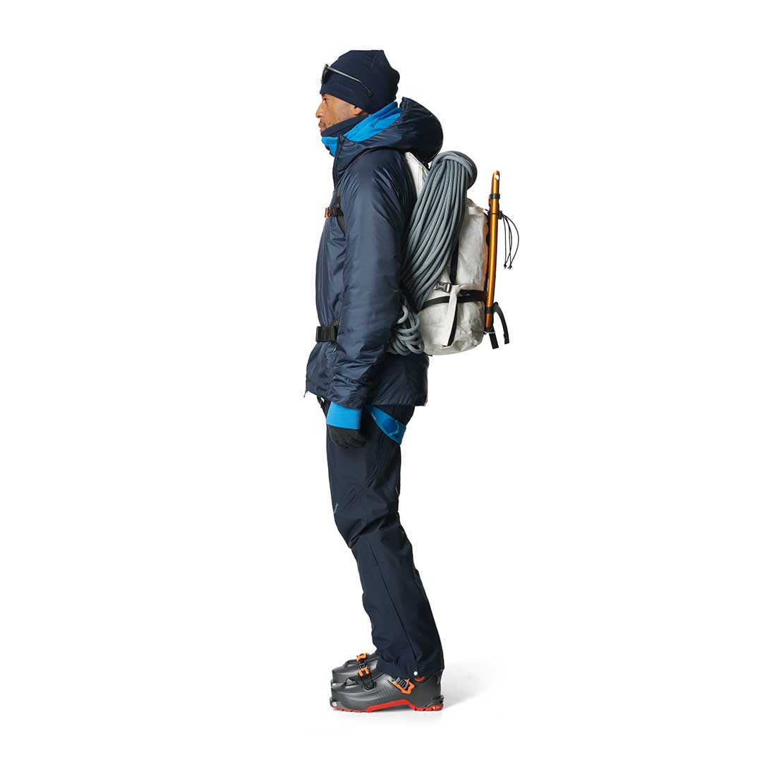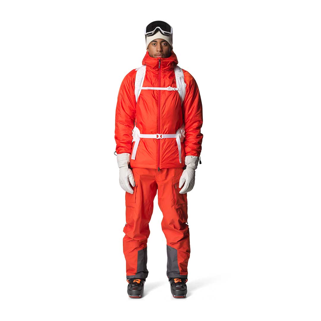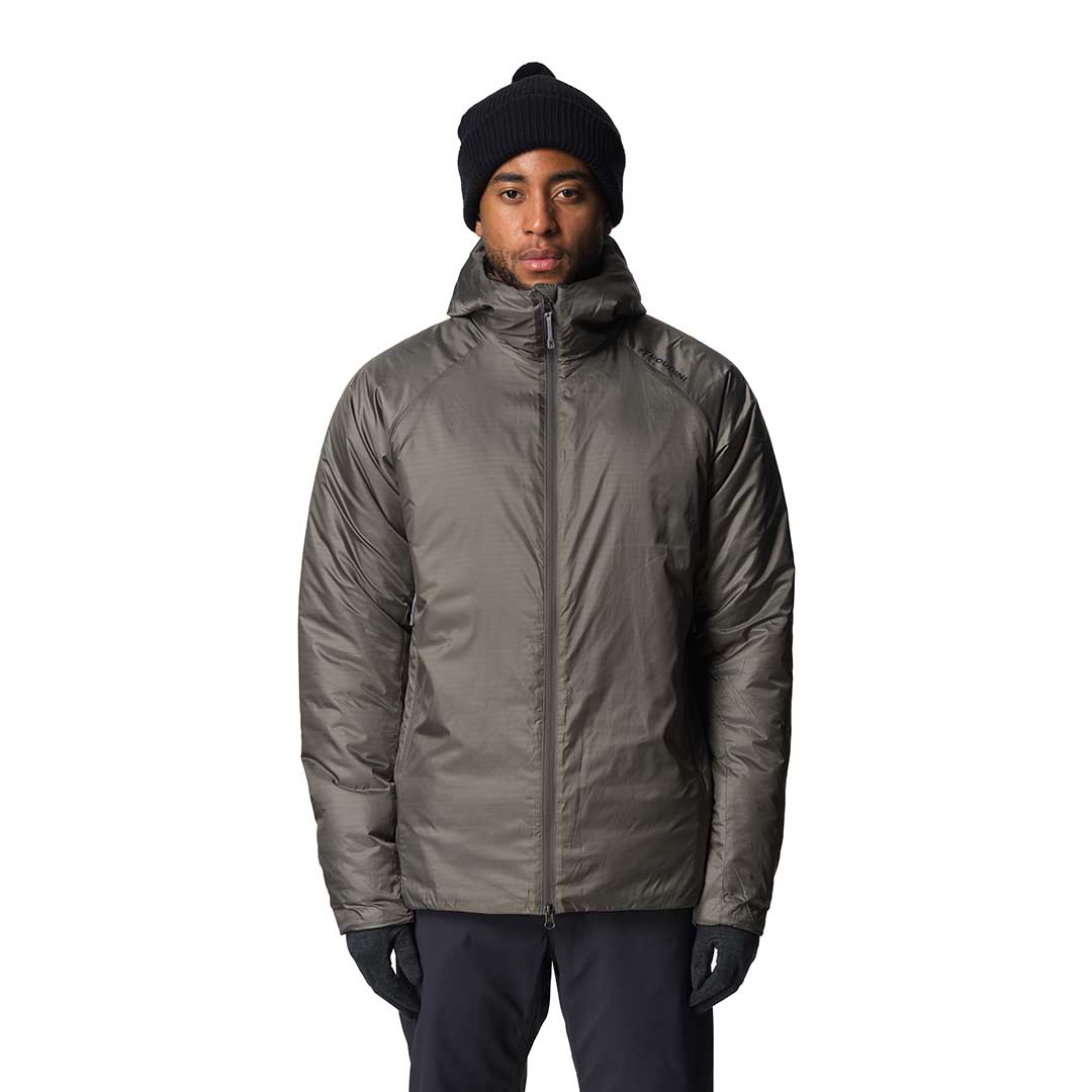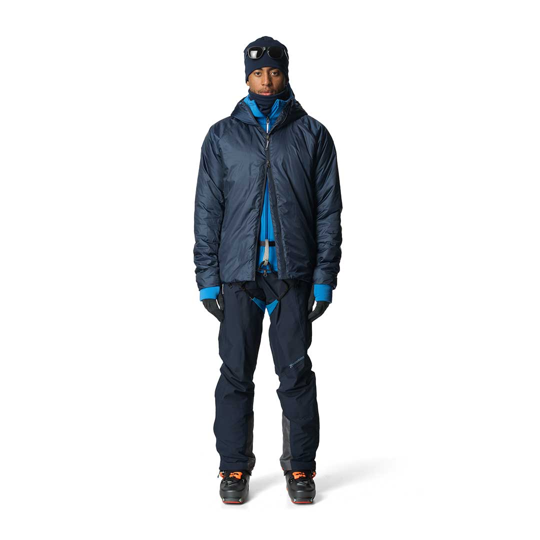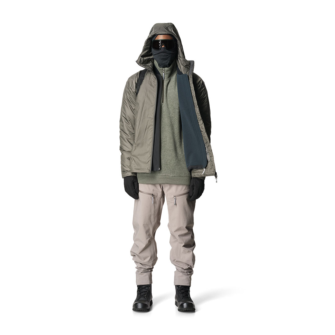 ダウンを一切使用しない最先端のインサレーションジャケットです。スウェーデン語で「ダウンフリー」を意味するDunfriは、その名の通りダウンやフェザーなど動物性の素材を排し、軽量で暖かく濡れても保温性を損なうことのない、100%リサイクルポリエステル製のPrimaLoft® Gold Insulationを中綿に採用しました。これは合成断熱材のもつ機能的なメリットに加え、Houdiniではアニマルウェルフェアの観点からダウンを使用しないためでもあります。軽くて丈夫な表地のSpinner Ripstop™も100%リサイクルポリエステル製で、PFASフリーの撥水処理が施されています。これらすべての持続可能な素材と、着古したら再度リサイクルも可能なことにより、快適性と環境への配慮を兼ね備えた循環型プロダクトです。またクリーンでミニマルなルックスと機能性の組み合わせは、スタイルとパフォーマンスを両立し、アクティビティから日常生活まで幅広いシーンに対応します。スキーツアー、登山遠征、キャンプ、寒い季節の通勤などに最適で、パッカブル機能も備えているため、山行や旅行でコンパクトに持ち運ぶことが可能です。アウターとしても、シェルの下のミッドレイヤーとしても着用できるよう、汎用性の高いレギュラーフィットを採用しています。