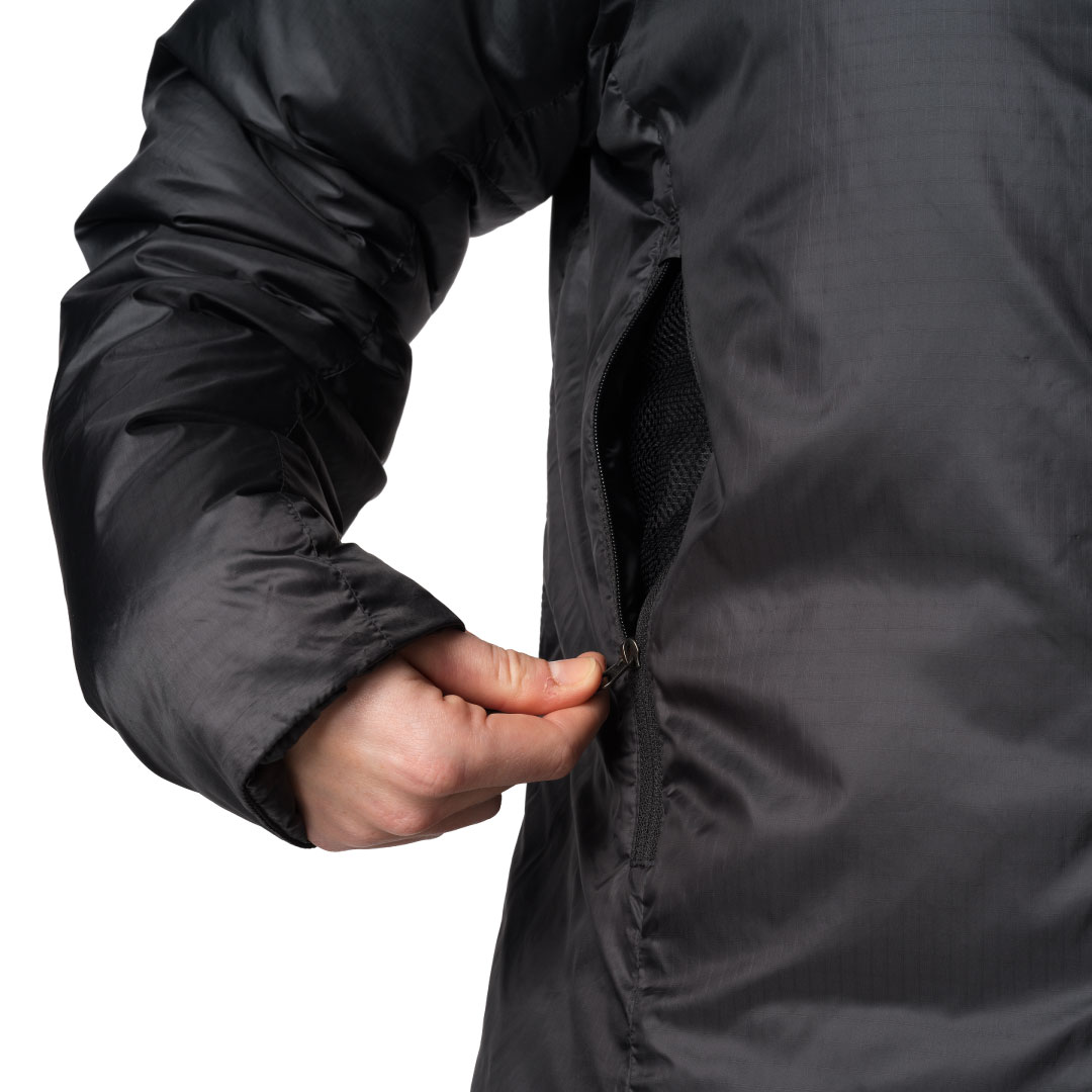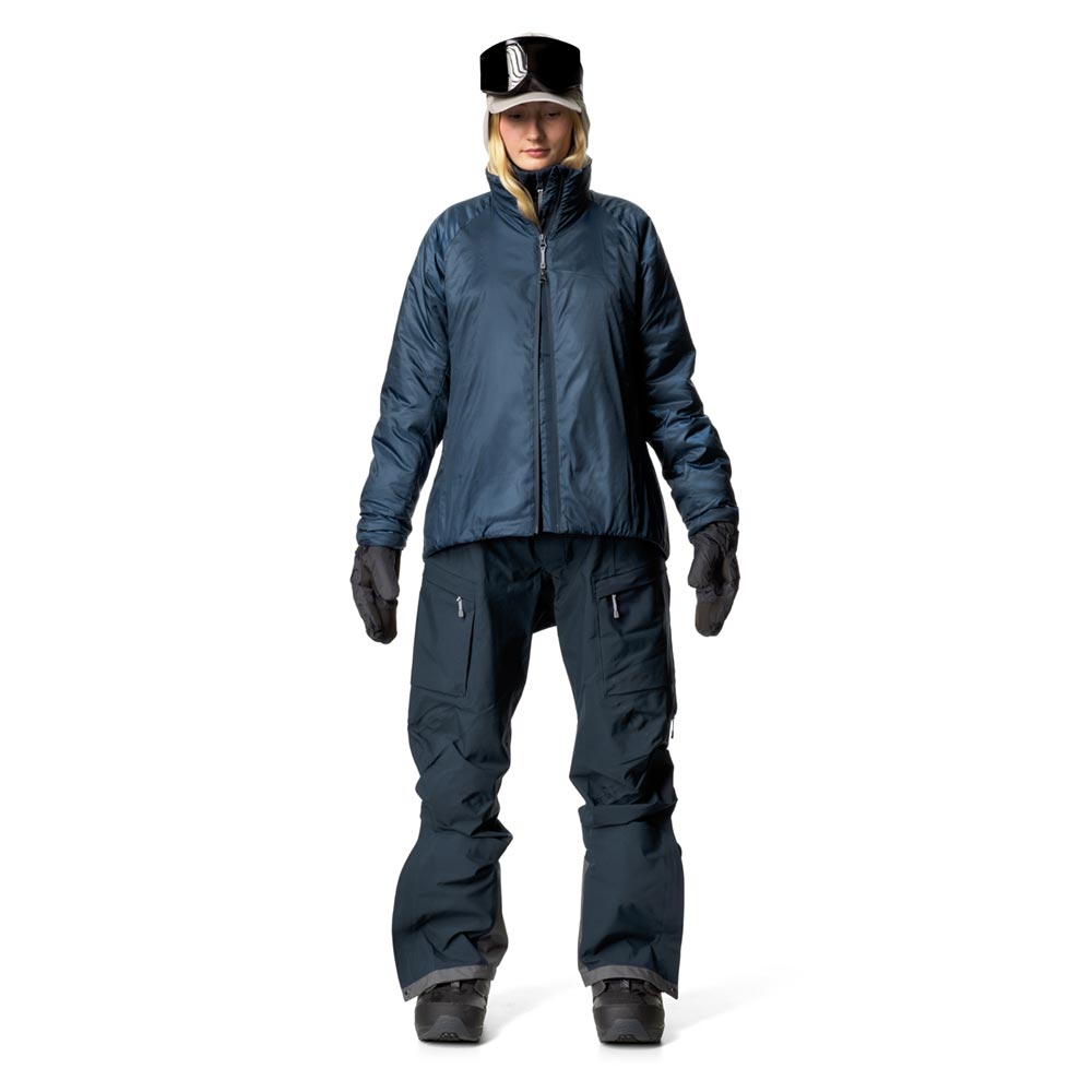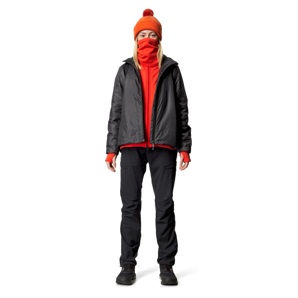 スウェーデン語で「ダウンフリー」を意味するDunfriには、ダウンが一切使用されていません。ダウンやフェザーなど動物性の素材を排し、代わりに合成断熱材を中綿に採用することは、その機能的なメリットに加え、アニマルウェルフェアの観点からも、人間の快適さのために鳥が苦しむべきではないというHoudiniの信念によるものです。