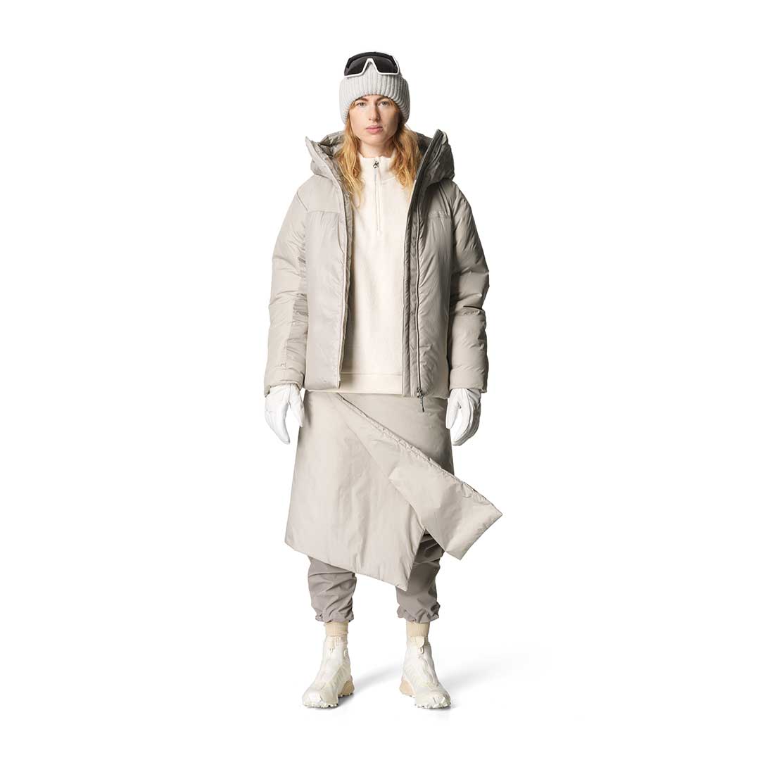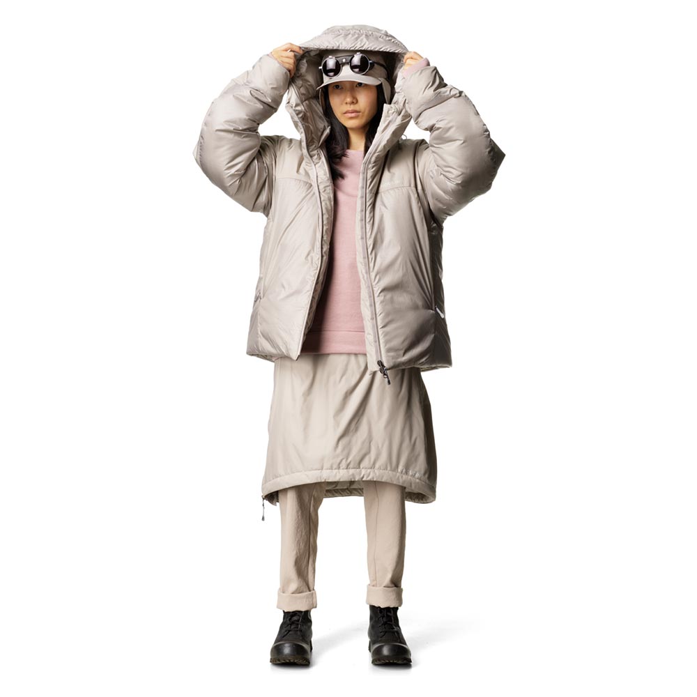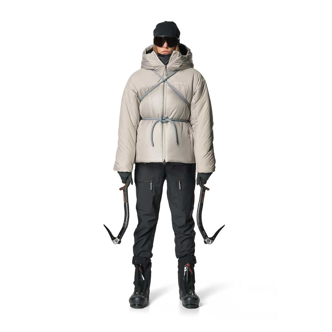 Houdiniクラシックの定番インサレーションであり、スウェーデン語で「ダウンフリー」を意味する、Dunfriのコンセプトを受け継いでDouble Dunfriは開発されました。ダウンなど動物性の素材を一切使用することなく、合成断熱材を中綿として採用することは、その機能的なメリットに加え、アニマルウェルフェアの観点からも、人間の快適さのために鳥が苦しむべきではないというHoudiniの信念によるものであります。