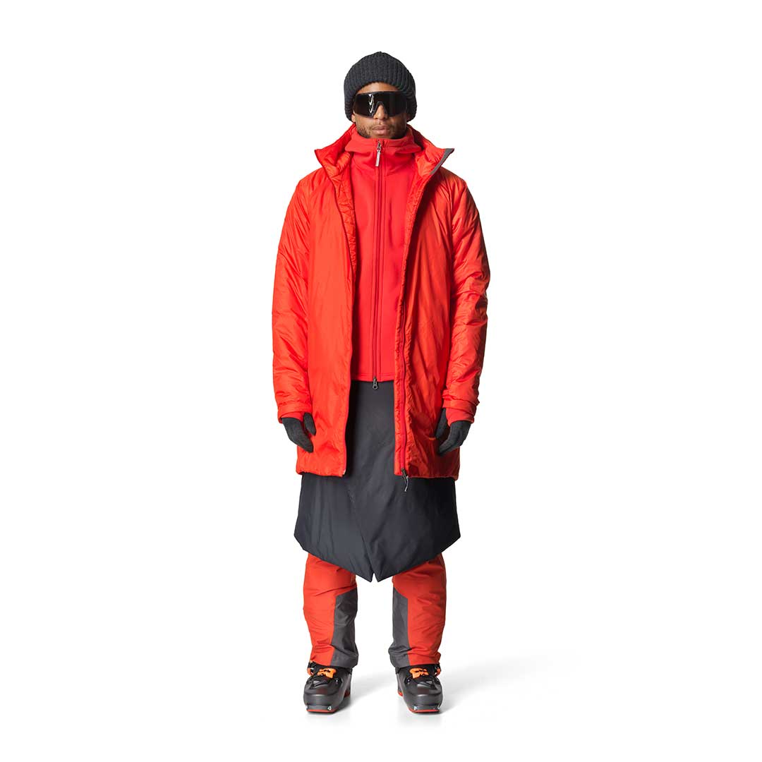 Dunfri Parkaは、スキーツーリングや登山遠征など、外で長時間を過ごすアクティビティで活躍しますが、キャンプ旅行、通勤といったライフスタイルシーンでの寒さ対策にも最適です。クリーンでミニマルなルックスと最先端のパフォーマンスの組み合わせは、機能性とスタイルの両面において、まさにカメレオンのような特性を生み出します。単体での着用はもちろん、アウターの内側または外側に重ねるインサレーションとして使用することができます。
