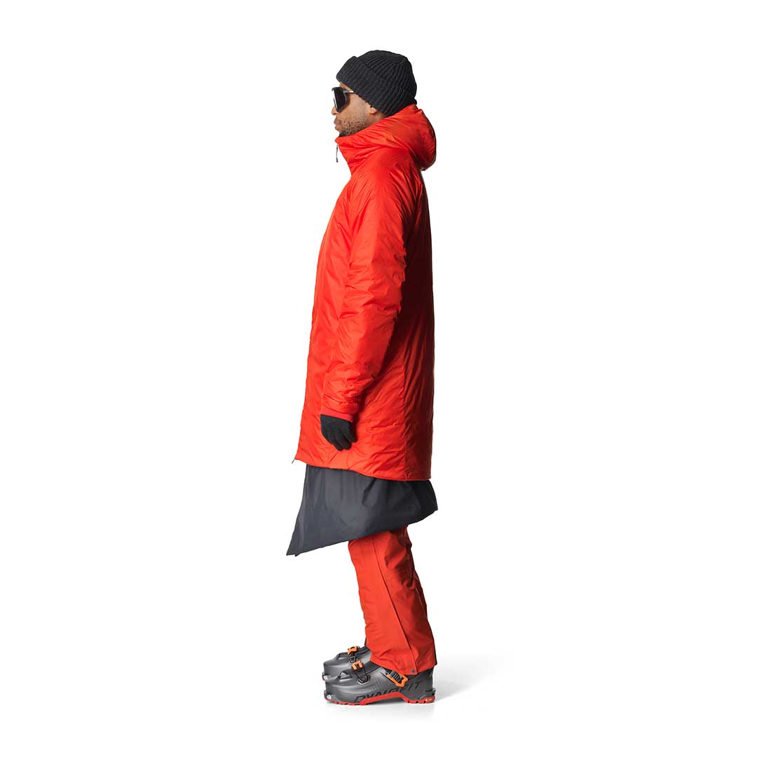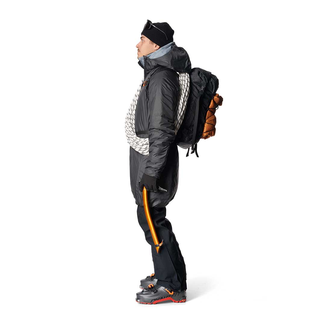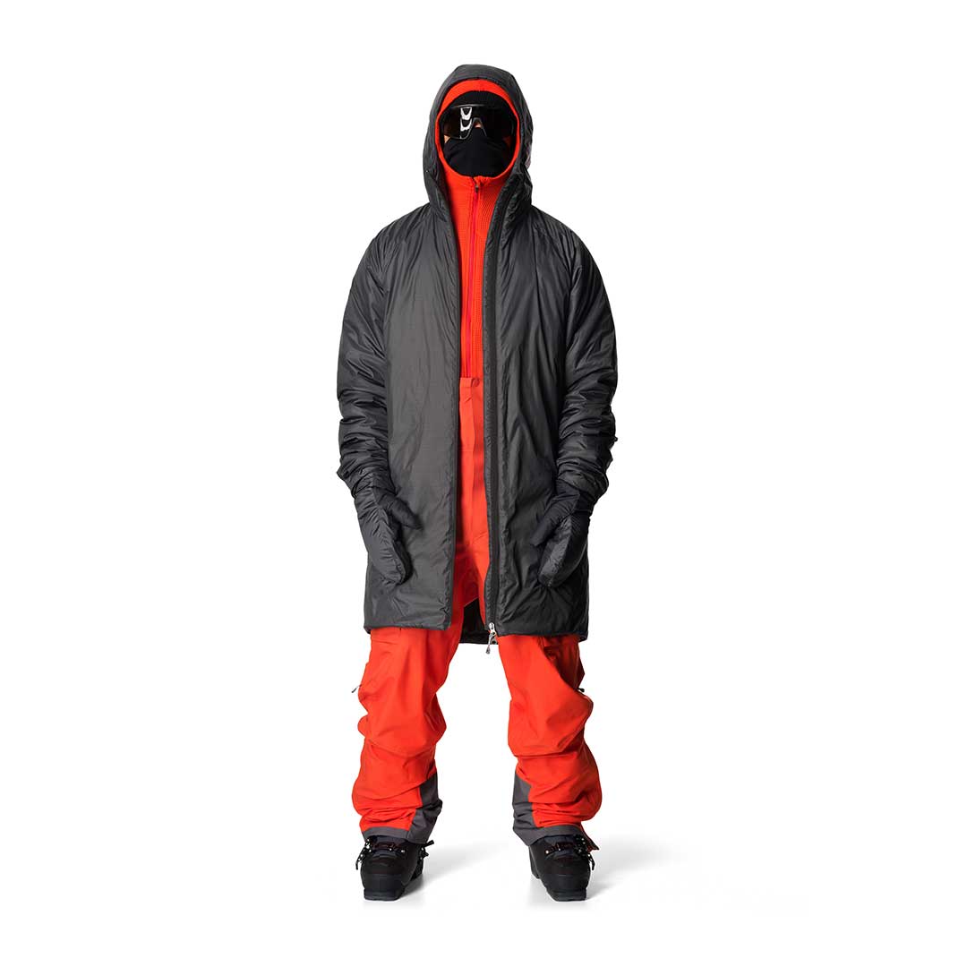 Dunfri Parkaのアイデアは、もともとバックパックに入れて持ち運べる、長めのインサレーションを求めていた山岳ガイドから生まれました。それは、一般的な状況で快適さを保つためだけでなく、外で一夜を過ごさなければならない場合の防護服が必要であったためです。胴体に加え、臀部までカバーするインサレーションジャケットは、極寒のサバイバルにおいて大きな違いをもたらします。通常、山中で夜を過ごすようなケースは限られていますが、Dunfri Parkaの軽量で素晴らしい保温性能は、どんな冬の過ごし方を選んでも満足させてくれるでしょう。