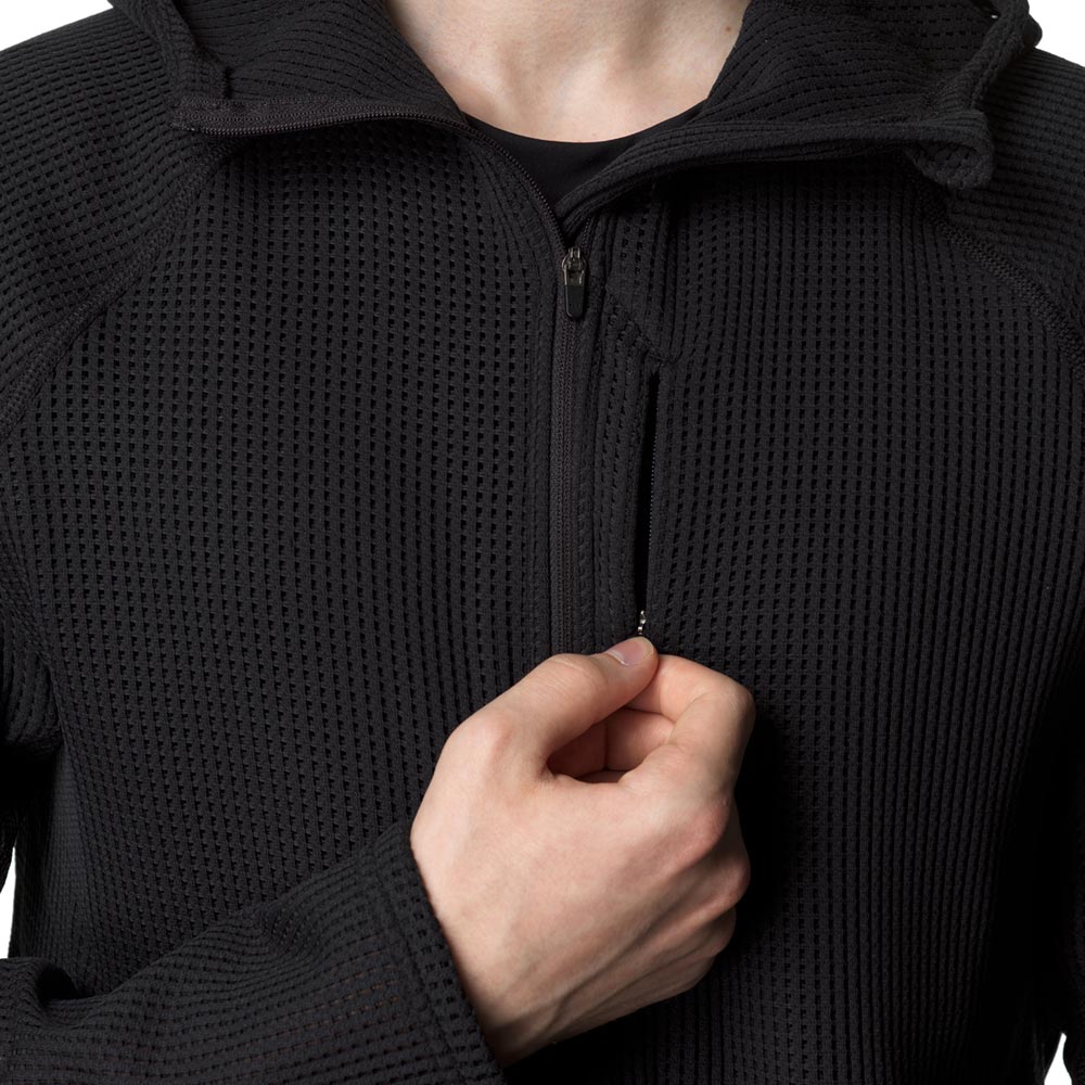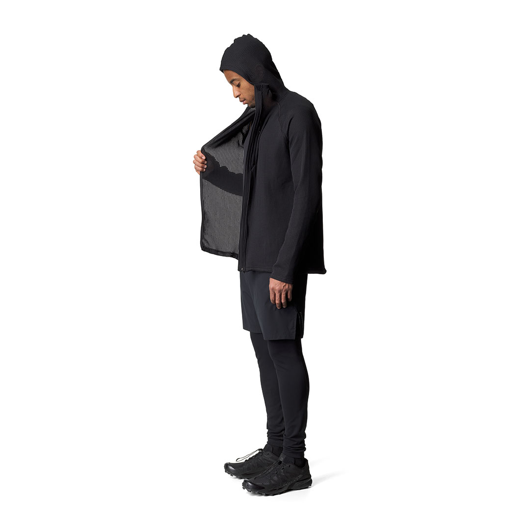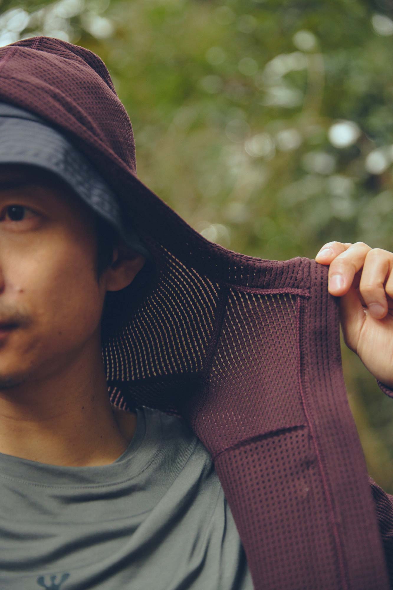 ハイパルスアクティビティに対応した風通しの良い高性能フーディ。軽量性と保温性、そして並外れた通気性を備えた革新的なメッシュ生地が、ハイペースな活動で魔法のような快適性をもたらします。