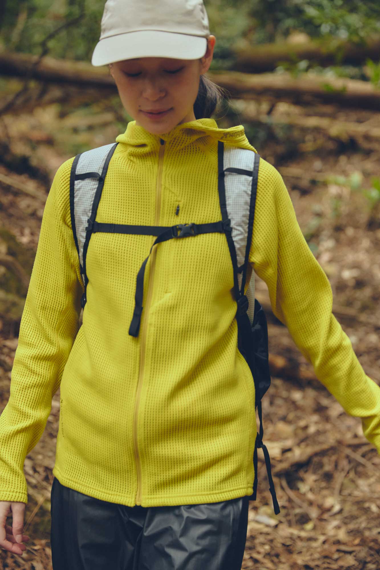 ハイパルスアクティビティに対応した風通しの良い高性能フーディ。軽量性と保温性、そして並外れた通気性を備えた革新的なメッシュ生地が、ハイペースな活動で魔法のような快適性をもたらします。