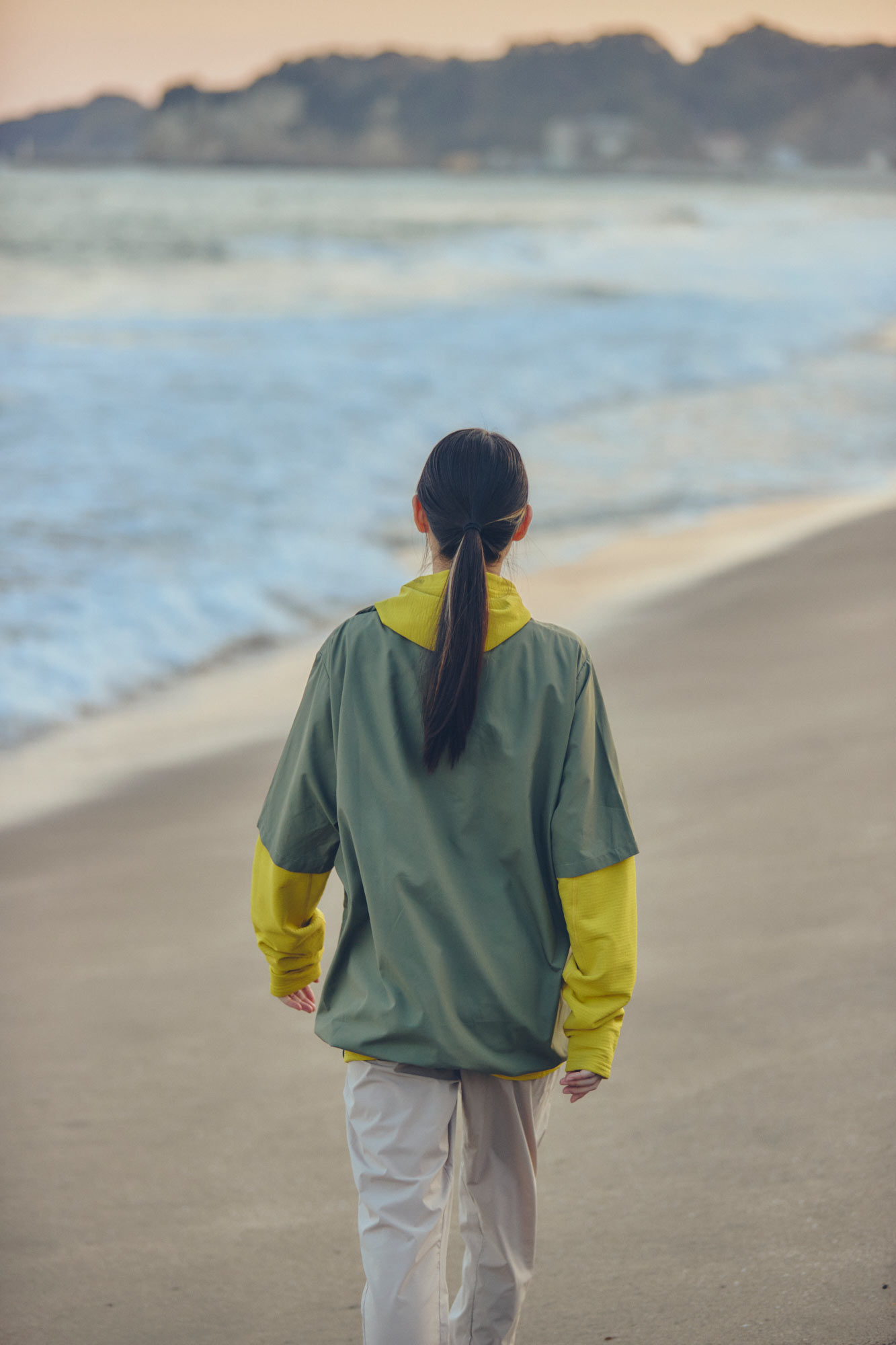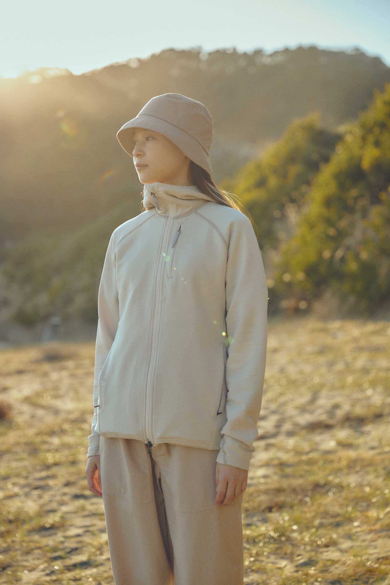 生地のPower Air Activeは、風通しの良いフィラメント繊維を生地の小さなポケットに閉じ込めることで、マイクロファイバーの抜け落ちを防ぐよう構造レベルで設計されています。従来のフリースに比べてマイクロファイバーの抜け落ちが80%少なく、リサイクルおよびリサイクル可能な素材を採用しています。Aero Houdiは、完全に再構築された最新のPower Airファブリックで作られています。以前のバージョンと比べて、より軽く、より伸縮性があり、より柔軟で、より速乾性に優れ、より暖かくなりました。生地は完全にリサイクル可能なため、この衣服が廃棄物になり使用された原材料が無駄になることはありません。