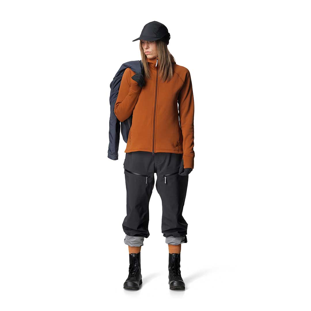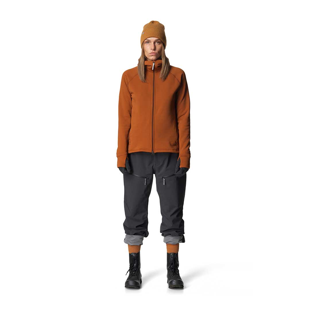 澄み切ったブルーの空が嬉しくて、思わず出かけたくなる秋冬のアウトドア。寒空の下、煌々と輝く月を眺める秋のキャンプシーンで病みつきになる着心地を発揮するのが、Houdiniブランドを代表するPower Houdi。本国スウェーデンでは山岳ガイドから庭師まで、幅広い層を虜にしている定番アイテムです。伸縮性の高いPolartec® Power Stretch Pro®素材のフリースは、あくまでも軽く暖か。柔らかな肌触りで、まるでお気に入りの毛布に包まれているかのような着心地を楽しめます。身体の動きに追従するPolartec® Power Stretch Pro®素材はどんな動きも妨げず、アクティビティ時や就寝時、長時間のフライトで着用しても一切のストレスを感じません。これ一枚で薄手のダウン並みに暖かいので、テントの中や山小屋でのんびり過ごしたいとき、驚くほどの快適さを発揮します。フリースと思えないほど繊細なカラーバリエーションも、Power Houdiの魅力です。