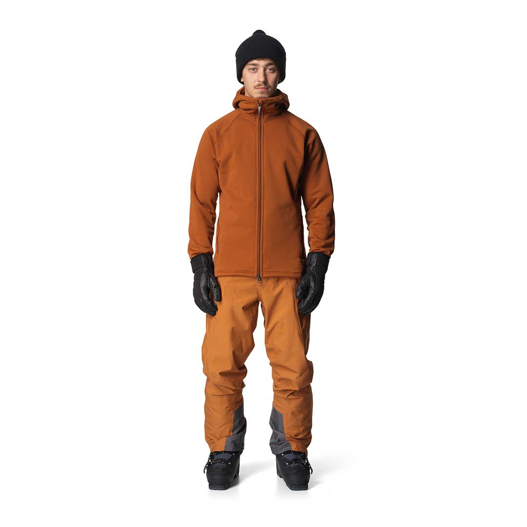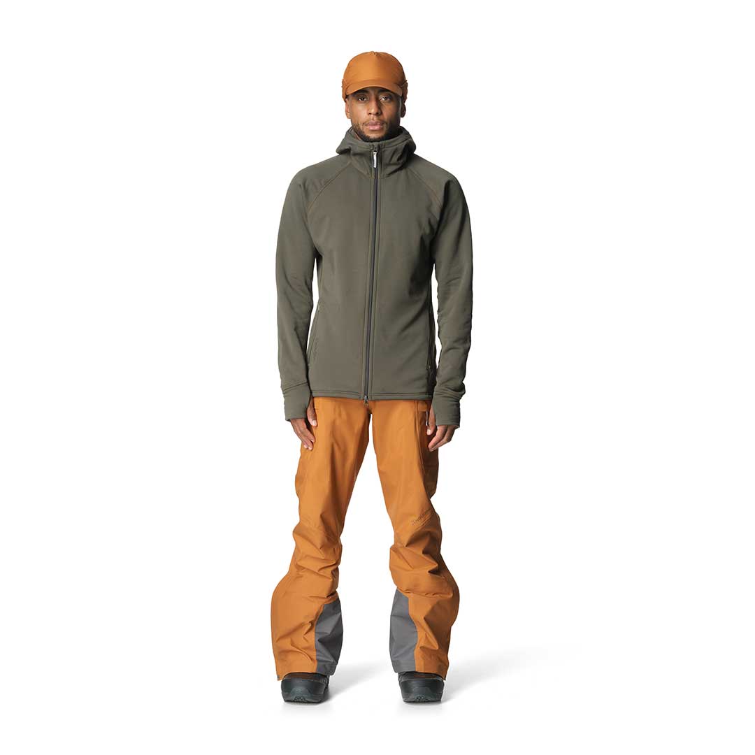 澄み切ったブルーの空が嬉しくて、思わず出かけたくなる秋冬のアウトドア。寒空の下、煌々と輝く月を眺める秋のキャンプシーンで病みつきになる着心地を発揮するのが、Houdiniを代表するPower Houdi。本国スウェーデンでは山岳ガイドから庭師まで、幅広い層を虜にしている定番アイテムです。伸縮性の高い Polartec® Power Stretch Pro®素材のフリースは、あくまでも軽く暖か。柔らかな肌触りで、まるでお気に入りの毛布に包まれているかのような着心地を楽しめます。身体の動きに追従するPolartec® Power Stretch Pro®素材はどんな動きも妨げず、アクティビティ時や就寝時、長時間のフライトで着用しても一切のストレスを感じません。これ一枚で薄手のダウン並みに暖かいので、テントの中や山小屋でのんびり過ごしたいとき、驚くほどの快適さを発揮します。フリースと思えないほど繊細なカラーバリエーションも、Power Houdiの魅力です。