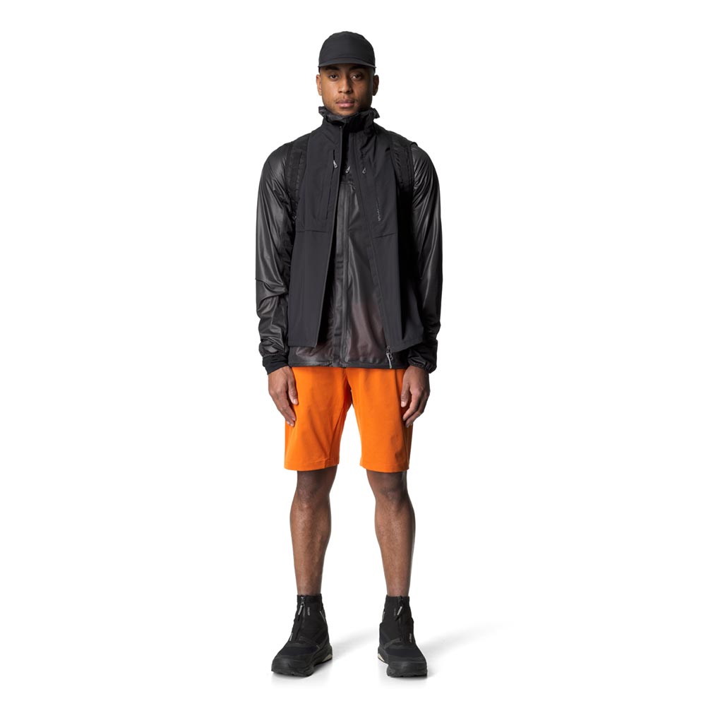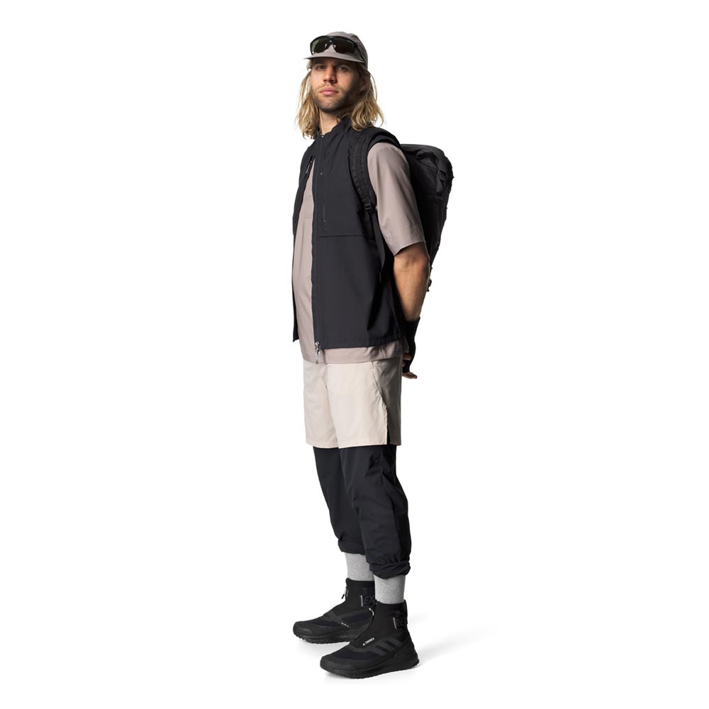 ハイパルスアクティビティに対応する通気性の高いソフトシェルベストです。ウェアの快適性によりパフォーマンスも向上するため、生地の感触、フィット感、衣服の動き方や音の響きなど、機能性だけでなく着心地を重視してデザインされました。胸と肩にはOcta C9 Softshell、背中にはC9 Ripstop™といったように2つの生地を組み合わせて作られています。Octa C9 Softshellは穴の空いた中空糸に8本の突起を放射線状に配列したタコ足型断面のポリエステル繊維、Octa®を断熱材として裏地に使用しており、適度な保温力ながらも通気性に優れ、行動中も蒸れずにオーバーヒートすることはありません。またC9 Ripstop™は高い通気性がありながらも耐風性と耐水性を備えるため、強い風や小雪、短時間の雨などから身体を守ります。両胸にはチェストポケットを配し、メインの開口部はベンチレーションとしても機能するダブルジッパー仕様です。ランニング、スキーツーリング、クロスカントリー、トレッキングなど運動強度の高いアクティビティから日常生活まで、通年での着用が可能です。レギュラーフィットのデザインを採用しています。