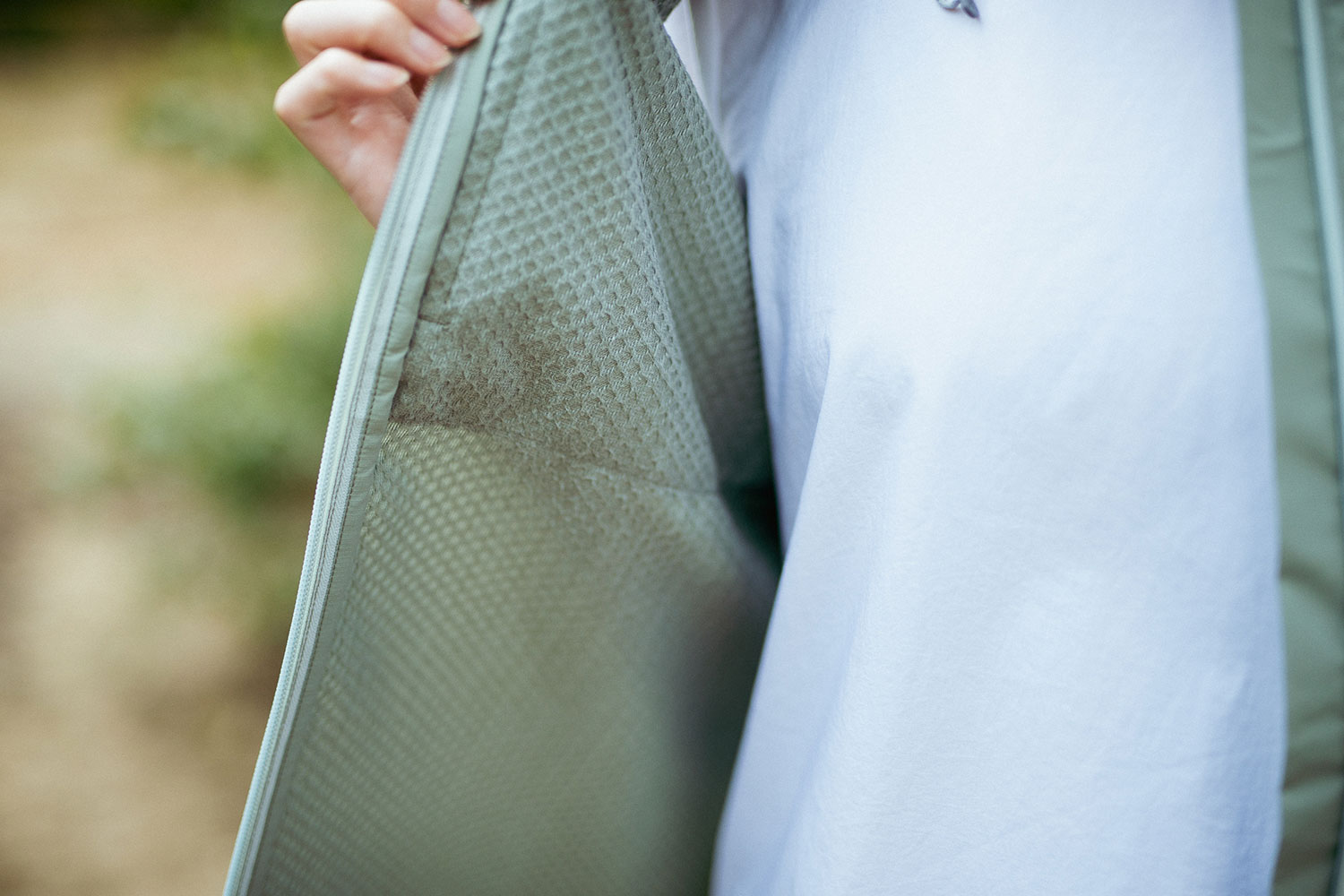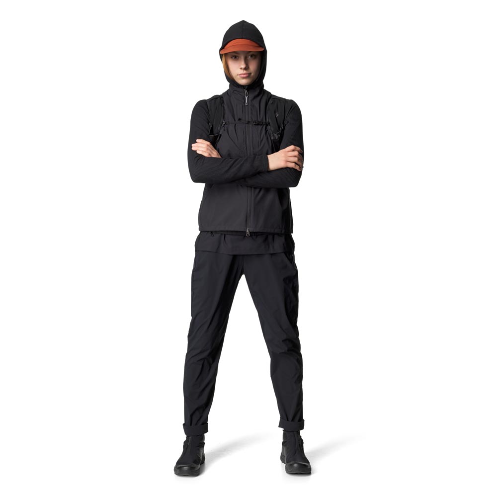 ハイパルスアクティビティに対応する通気性の高いソフトシェルベストです。ウェアの快適性によりパフォーマンスも向上するため、生地の感触、フィット感、衣服の動き方や音の響きなど、機能性だけでなく着心地を重視してデザインされました。胸と肩にはOcta C9 Softshell、背中にはC9 Ripstop™といったように2つの生地を組み合わせて作られています。Octa C9 Softshellは穴の空いた中空糸に8本の突起を放射線状に配列したタコ足型断面のポリエステル繊維、Octa®を断熱材として裏地に使用しており、適度な保温力ながらも通気性に優れ、行動中も蒸れずにオーバーヒートすることはありません。またC9 Ripstop™は高い通気性がありながらも耐風性と耐水性を備えるため、強い風や小雪、短時間の雨などから身体を守ります。両胸にはチェストポケットを配し、メインの開口部はベンチレーションとしても機能するダブルジッパー仕様です。ランニング、スキーツーリング、クロスカントリー、トレッキングなど運動強度の高いアクティビティから日常生活まで、通年での着用が可能です。レギュラーフィットのデザインを採用しています。