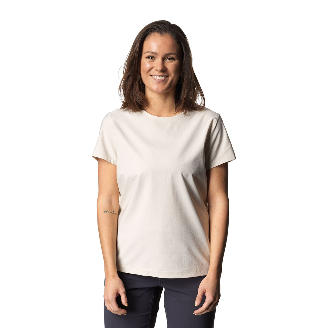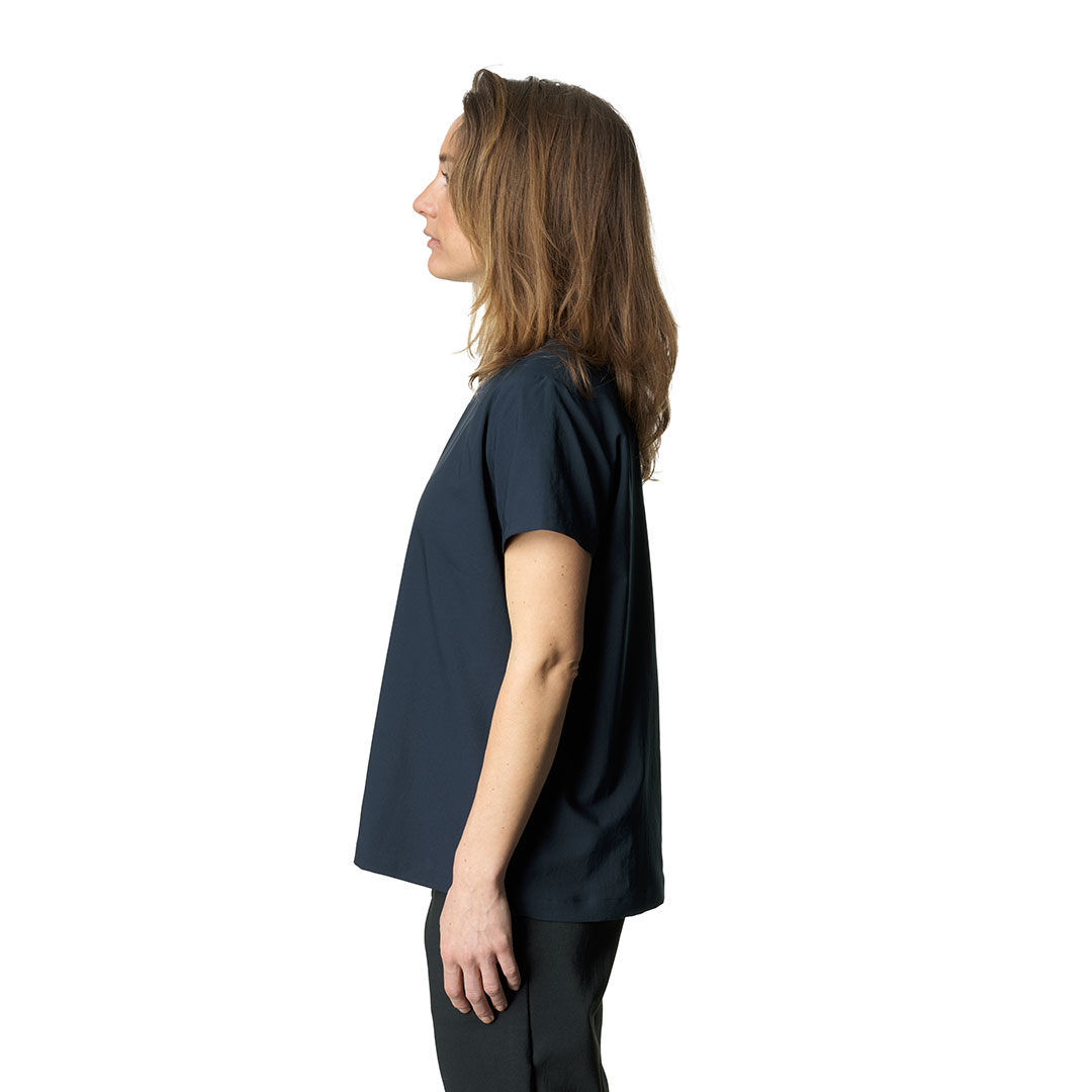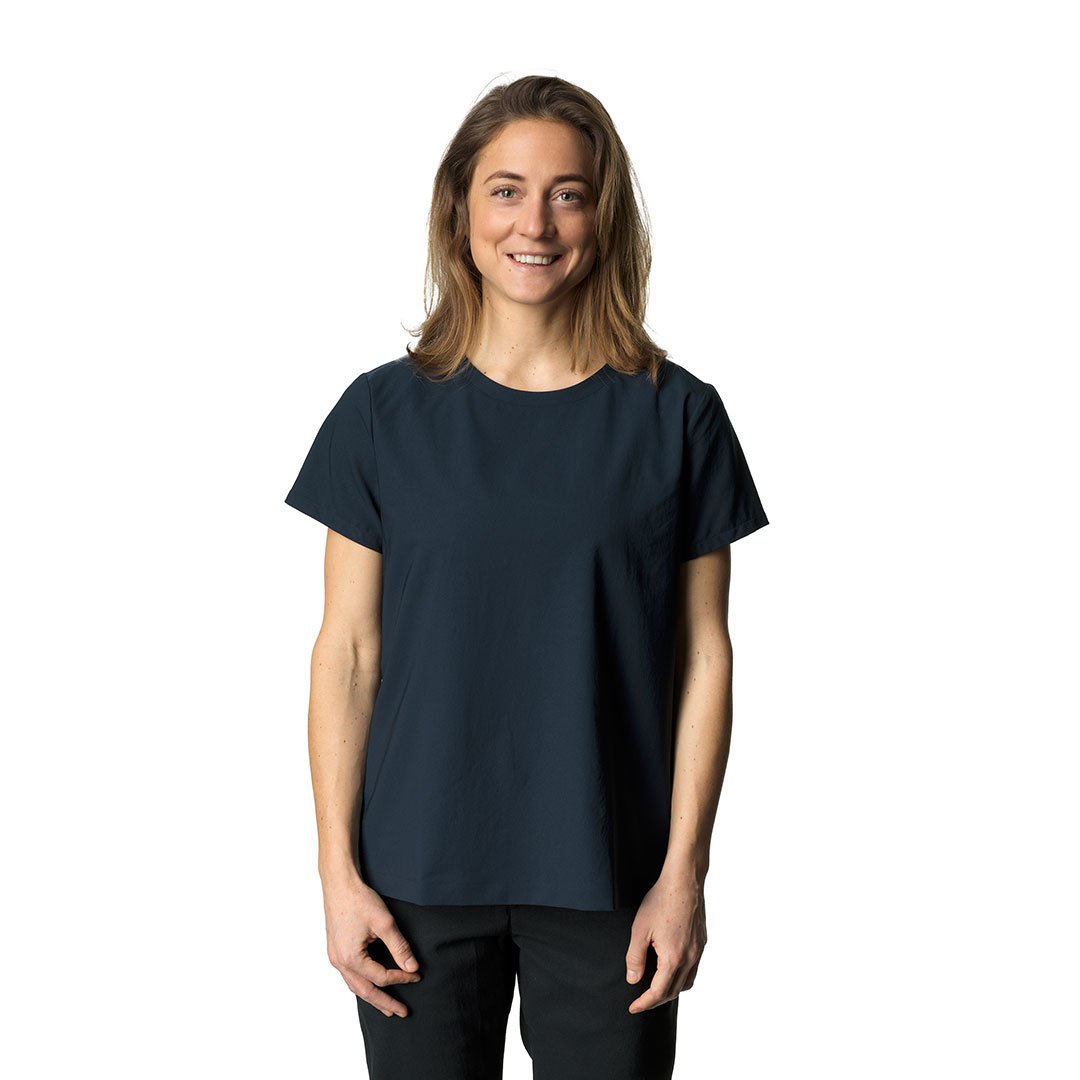 機能的で着心地の良いシンプルなTシャツです。リサイクルポリエステルを非常に緻密に織って作られたWish Woven™生地はソフトで、コットンのような肌触りと2ウェイストレッチの柔軟性を備えています。またアクティビティでハードに使用できるほどの通気性と耐久性をもち、速乾性にも優れているためトレッキング、ランニング、そしてカヤックやビーチなど水辺での遊びからキャンプや日常生活まで、夏のあらゆるシチュエーションに適しています。レギュラーフィットのデザインを採用しています。