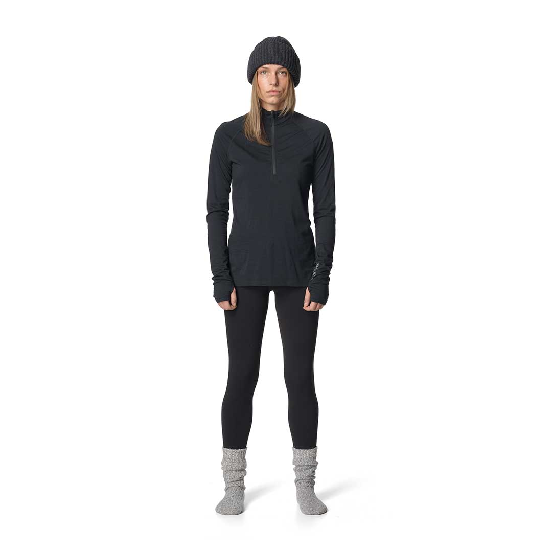 軽量で柔軟なハーフジップのベースレイヤーです。生地のSolid Merino™は17.5μmのオーストラリア産スーパーファインメリノウールを100%使用し、羽毛のような柔らかな肌触りで、伸縮性と透湿性に優れます。混紡されていない純粋なウールは自然な性質を高め、濡れても保温性を損なうことがなく、ウールの特性である体温調節機能と天然の抗菌防臭効果を備えています。また再生可能で生分解性をもつメリノウール100%であり、合成ブレンドや処理をしないことで完全に循環する生地となり、着古したらリサイクルや堆肥にすることが可能です。長めのジップネックは換気性に優れ、冷気の侵入を防ぐ高めの襟とわずかに長い背面、手首にはサムホールを配して袖のずり上がりを防止します。夏のランニングやハイキング、冬のスキーツアーやアイスクライミングなど、あらゆるアクティビティから日常生活まで一年を通して着用が可能です。スリムフィットのデザインを採用しています。