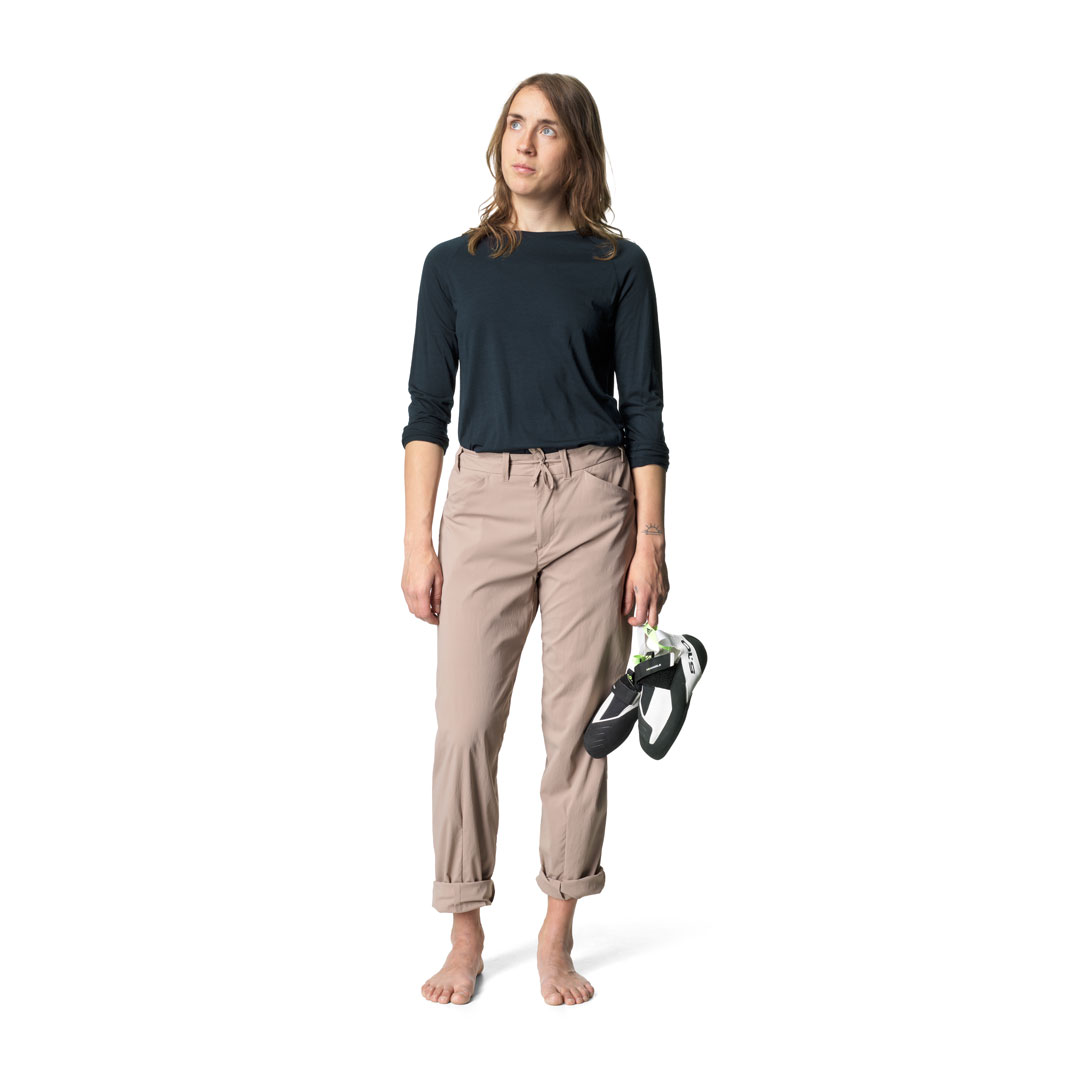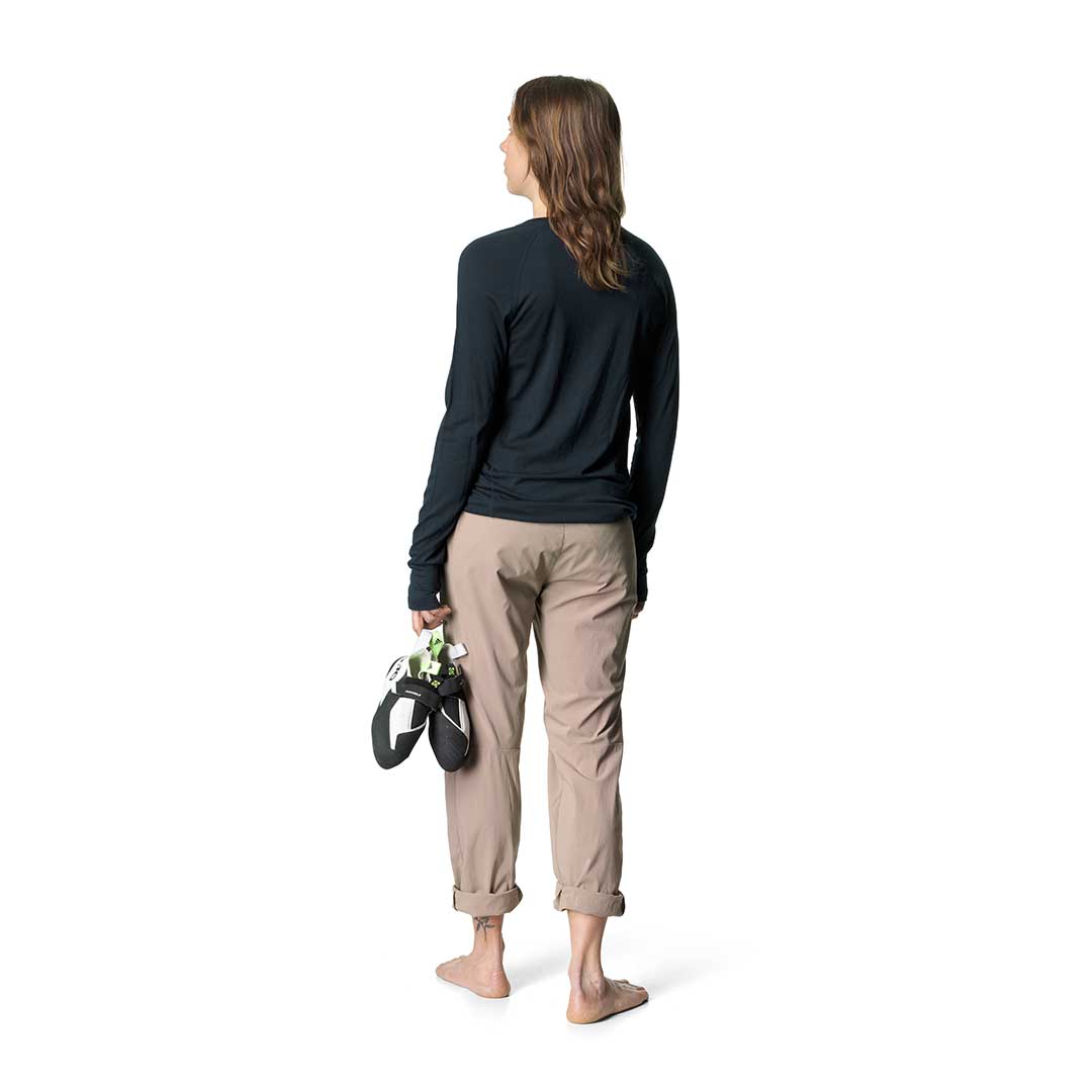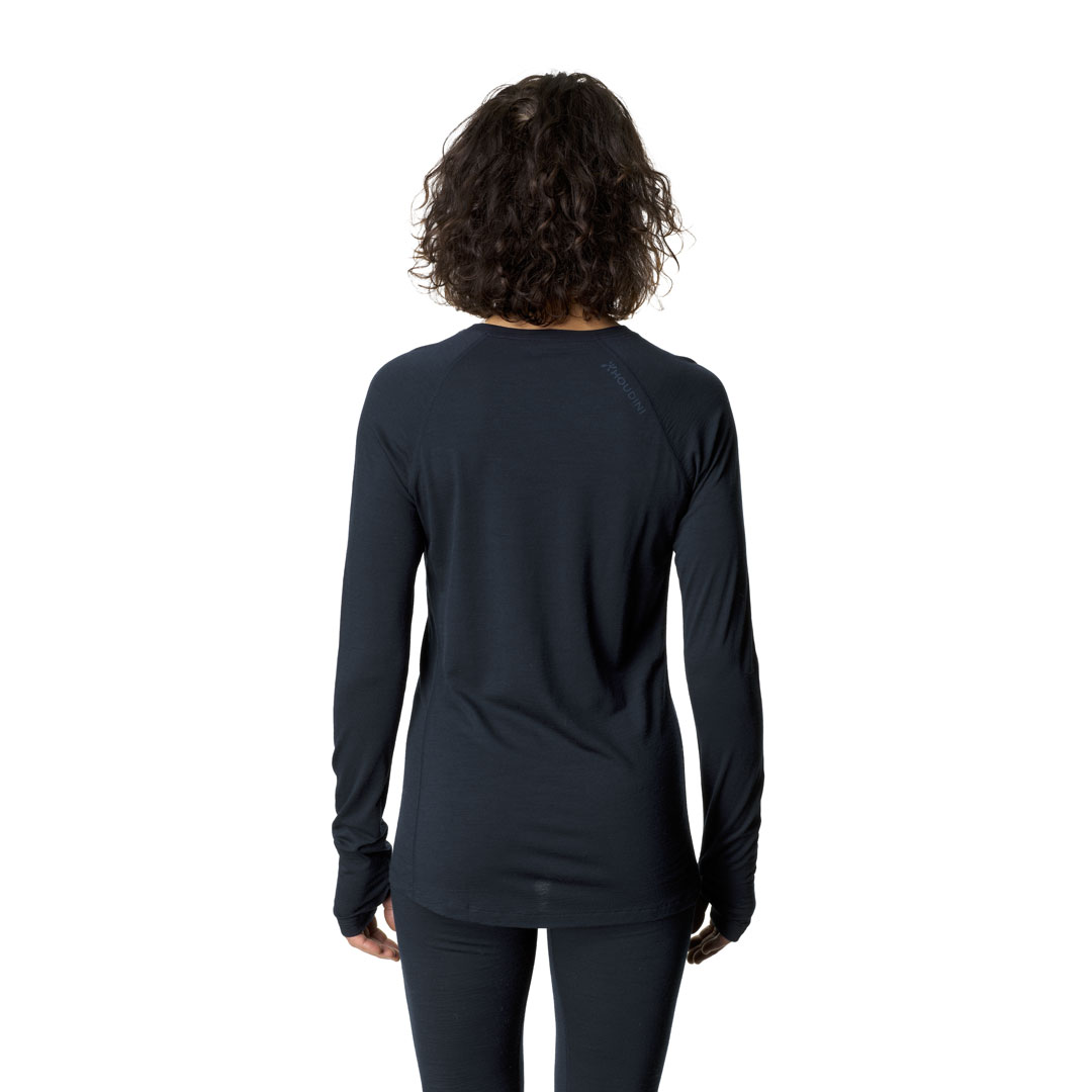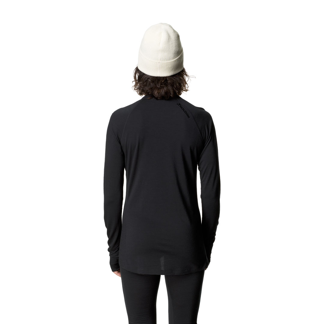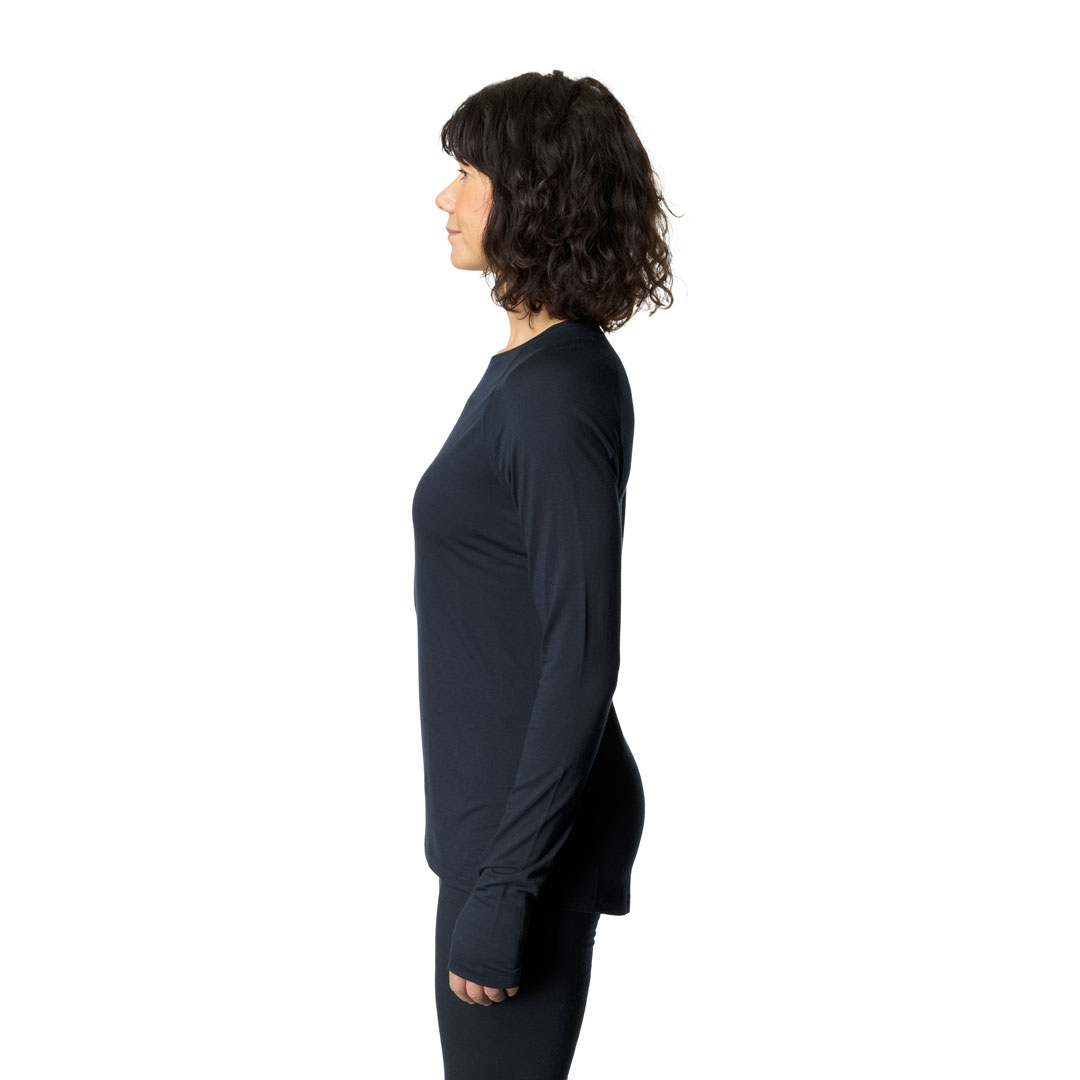 軽量で柔軟なクルーネックのベースレイヤーです。生地のSolid Merino™は17.5μmのオーストラリア産スーパーファインメリノウールを100%使用し、羽毛のような柔らかな肌触りで、伸縮性と透湿性に優れます。混紡されていない純粋なウールは自然な性質を高め、濡れても保温性を損なうことがなく、ウールの特性である体温調節機能と天然の抗菌防臭効果を備えています。また再生可能で生分解性をもつメリノウール100%であり、合成ブレンドや処理をしないことで完全に循環する生地となり、着古したらリサイクルや堆肥にすることが可能です。手首にはサムホールを配して袖のずり上がりを防止し、わずかに長い背面は裾からの冷気の侵入を防ぎます。夏のランニングやハイキング、冬のスキーツアーやアイスクライミングなど、あらゆるアクティビティから日常生活まで一年を通して着用が可能です。スリムフィットのデザインを採用しています。