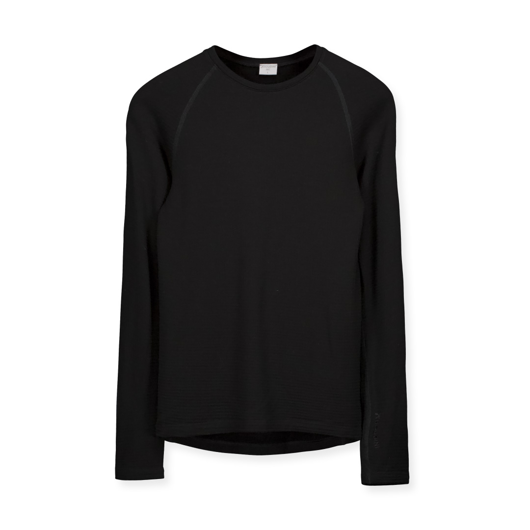 柔軟で非常に暖かなクルーネックのベースレイヤーです。生地のSolid GridMerino™は17.6μmのニュージーランド産スーパーファインメリノウールを100%使用し、格子状の構造にすることにより中に空気の層を作り、保温性と通気性を両立、そして透湿性と速乾性にも優れます。混紡されていない純粋なウールは自然な性質を高め、濡れても保温性を損なうことがなく、ウールの特性である体温調節機能と天然の抗菌防臭効果を備えています。また再生可能で生分解性をもつメリノウール100%であり、合成ブレンドや処理をしないことで完全に循環する生地となり、着古したらリサイクルや堆肥化が可能です。秋冬のトレッキングやキャンプ、スキーツアーなど、寒いコンディションでのアクティビティから日常生活に最適で、ベースレイヤーまたはミッドレイヤーとしても着用することができます。スリムフィットのデザインを採用しています。