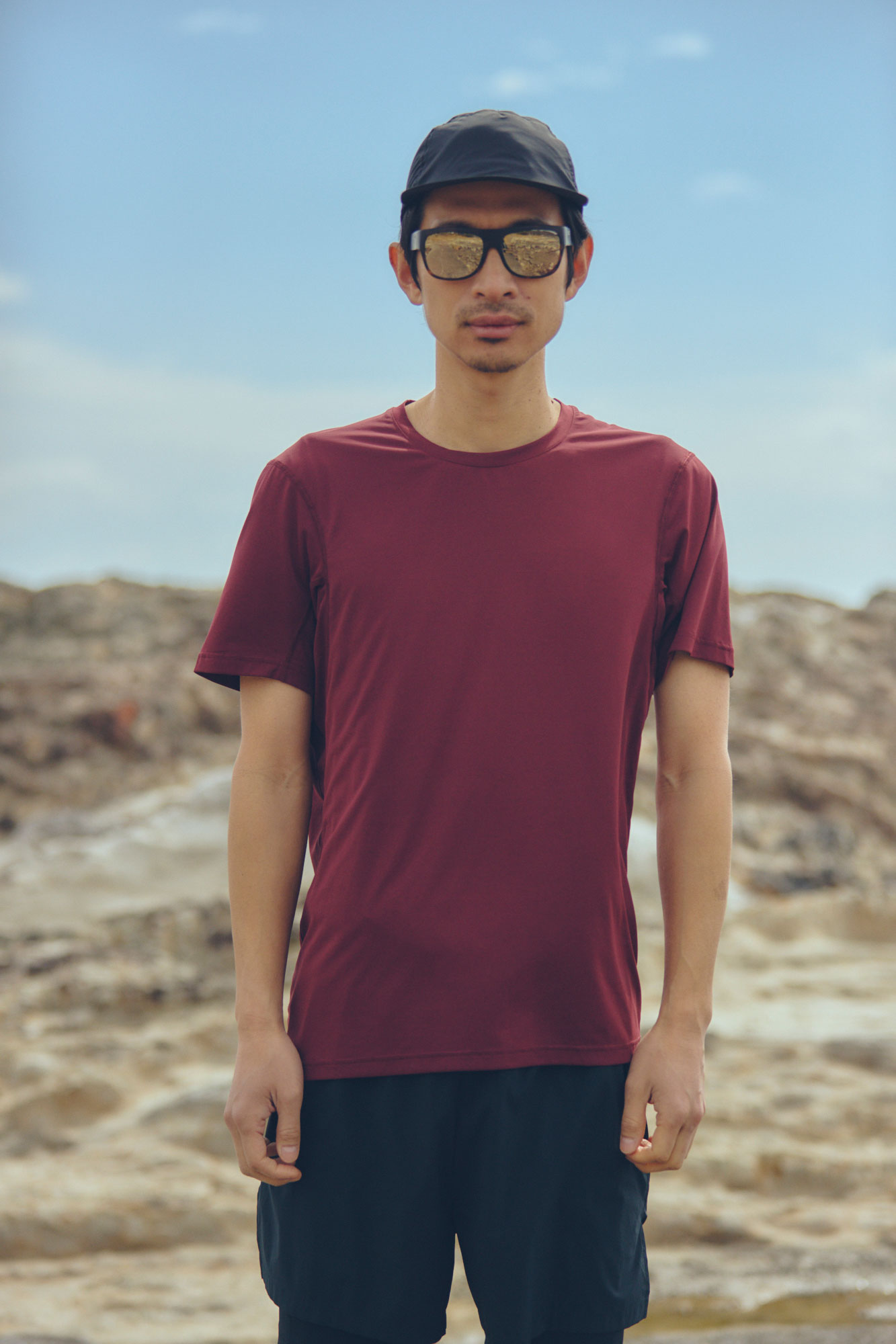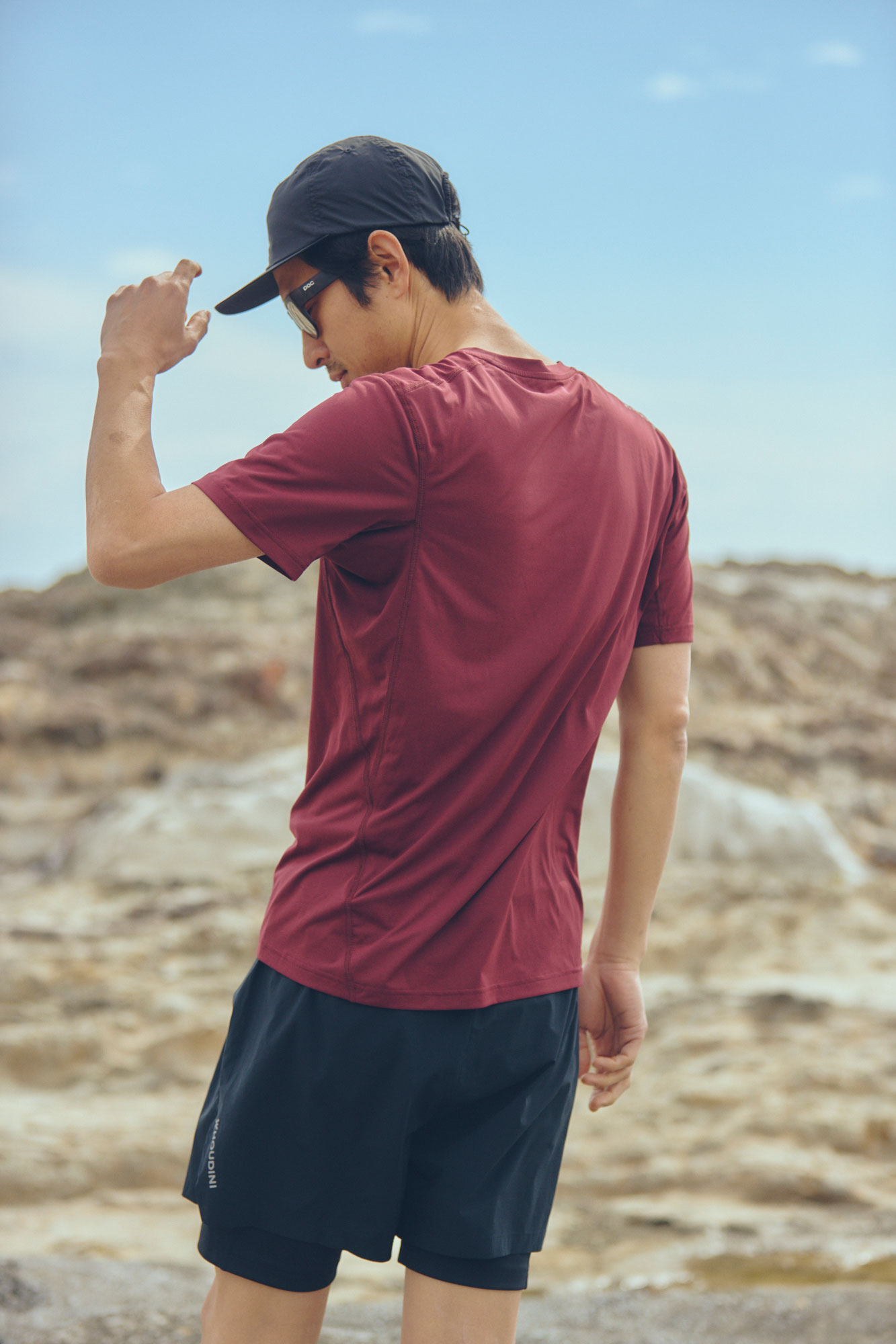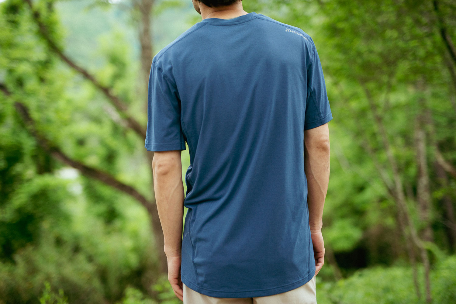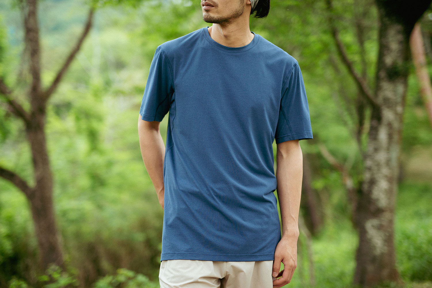身体を涼しく保つ生地は、気温または湿度が高い環境でのランニングやトレッキング、マウンテンバイクなどに最適で、長時間着用していても快適に過ごすことが可能です。アクテビティの最中に余分な生地が邪魔にならないよう、スリムなアスレチックフィットのデザインを採用しています。