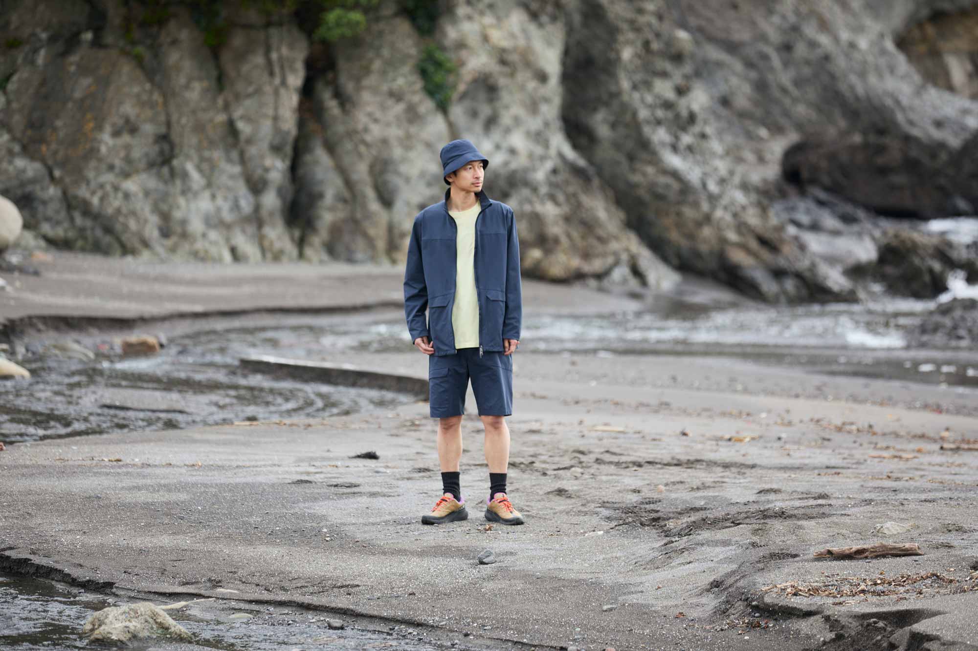 Go Jacketは、さまざまな冒険からインスピレーションを得た機能性と、日々のライフスタイルに向けてデザインされたソフトシェルのウインドブレーカージャケットです。軽くて伸縮性があり、快適な着用感を生み出す生地のPrime Ripstop&trade:で作られ、高い耐久性をもつリップストップ構造はストレッチ性がありながらも、優れた通気性と防風性を備えています。また、リサイクル繊維およびリサイクル可能な繊維で作られた循環型の生地には、PFASフリーの撥水加工が施されており、機能性と持続可能性の両方を実現しました。