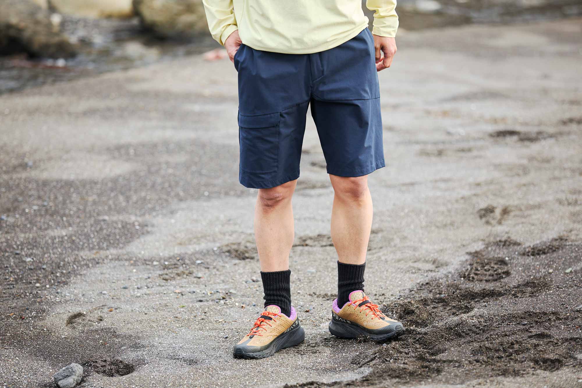 ショーツには大きな腿ポケットと2つのオープンハンドポケットを配し、そのうちの1つは内側に貴重品を収納できるジッパー付きポケットが付属しています。さらに、生地の速乾性と撥水性により、水辺でのアクティビティはもちろん、ハイキングや旅行中のちょっとした雨の際もドライな状態を保つことが可能です。