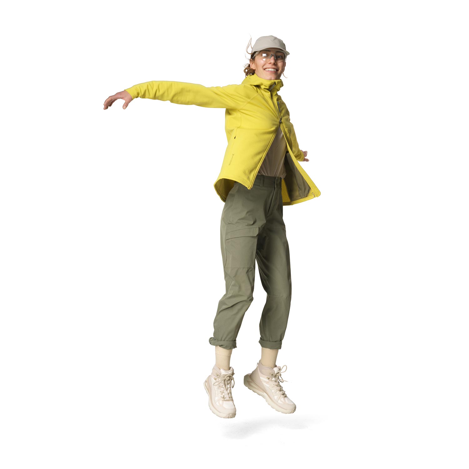Go Pantsは、さまざまな冒険からインスピレーションを得た機能性と、日々のライフスタイルに向けてデザインされたソフトシェルのウインドブレーカーパンツです。軽くて伸縮性があり、快適な着用感を生み出す生地のPrime Ripstop&trade:で作られ、高い耐久性をもつリップストップ構造はストレッチ性がありながらも、優れた通気性と防風性を備えています。また、リサイクル繊維およびリサイクル可能な繊維で作られた循環型の生地には、PFASフリーの撥水加工が施されており、機能性と持続可能性の両方を実現しました。