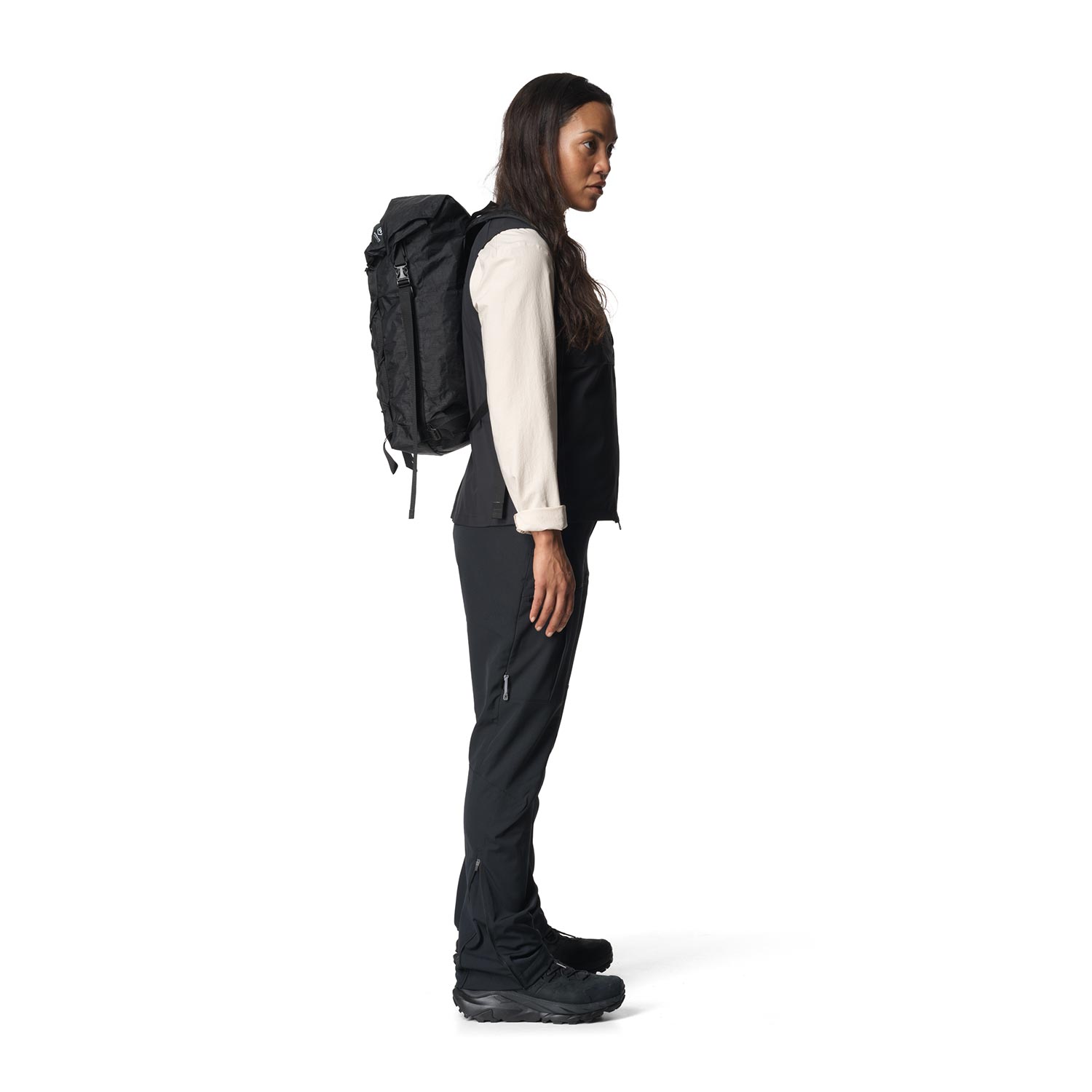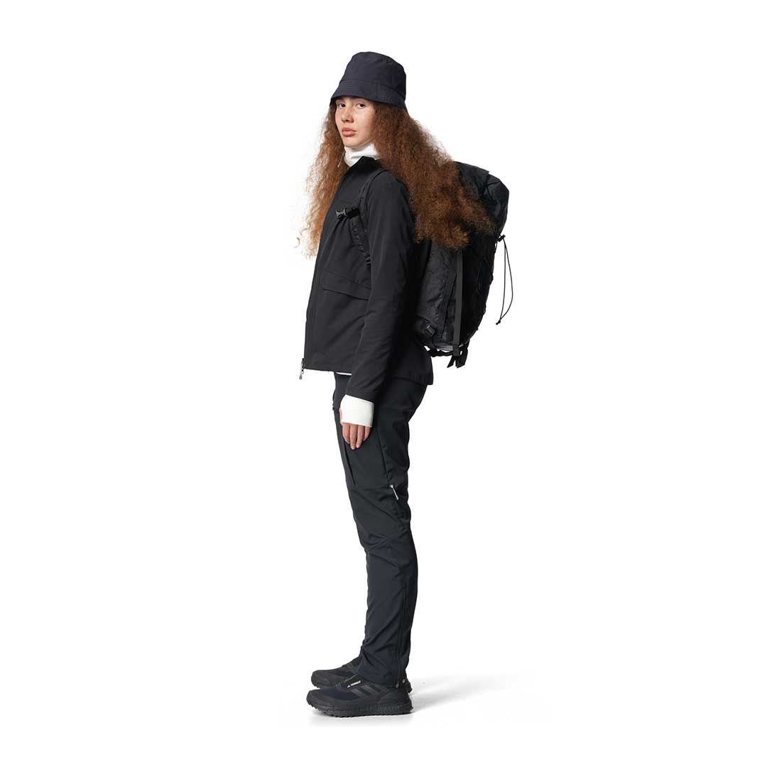 More Pantsは、Houdiniの歴代のトレッキングパンツに使用されてきたMotion Comfortshell™で作られています。これは、何年もの使用に耐えられることが証明されている最も丈夫なファブリックのひとつです。非常に高い耐久性をもち、通気性と伸縮性に優れながらも防風性と撥水性を備えたソフトシェルで、内側の柔らかなツイル構造により、素肌にぴったりとフィットします。また、75%リサイクルポリエステルで作られた生地には、PFASフリーの撥水処理が施され、着古した後もリサイクル可能な繊維のため、完全に循環型の製品であることが保証されています。