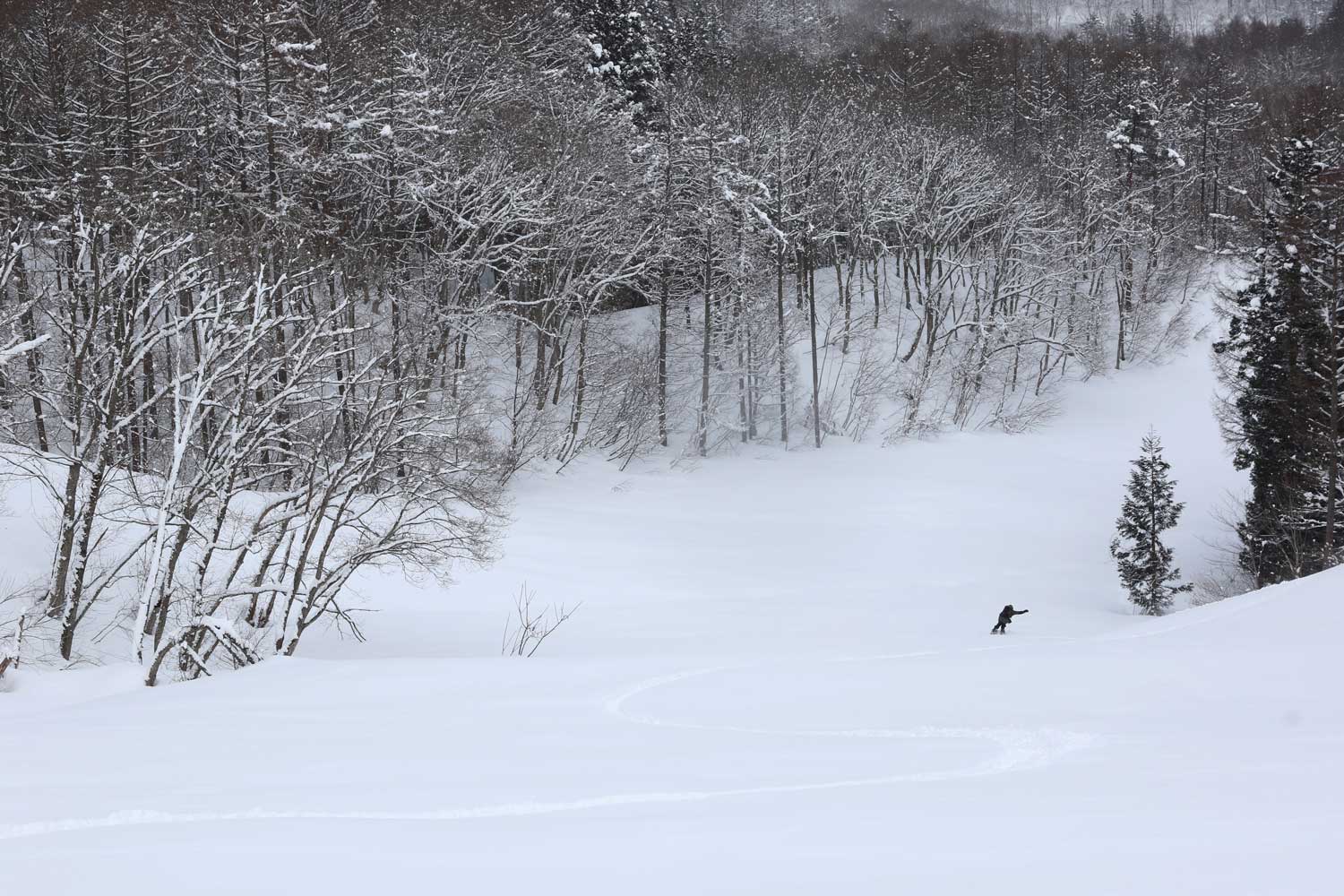 日本屈指の豪雪地帯である妙高も身近で、基本的にはそのエリアの「妙高 杉の原スキー場」と「赤倉観光」をホームゲレンデとして毎日を過ごしている。朝イチに杉の原のグルーミングを滑り込み、午後から赤倉の山を登ることもあれば、反対に1日で1本だけを滑るなんて贅沢な日もある。