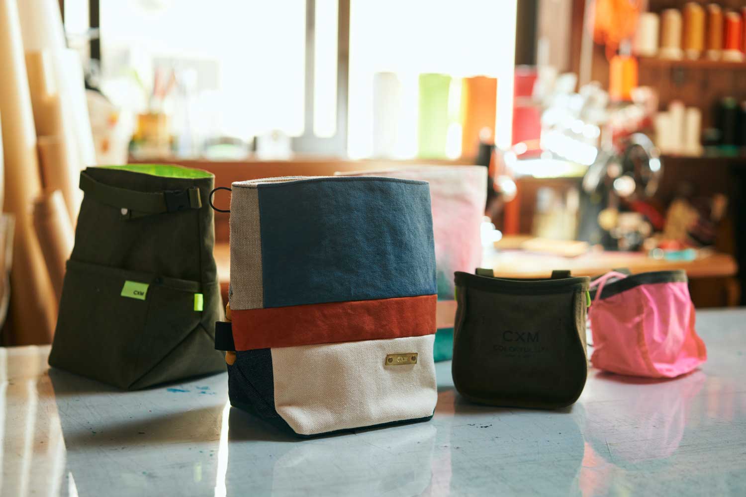 現在「CXM」ではチョークバッグのほかにトートバッグやサコッシュを製造販売している。将来的にはバックパックも手がけたいと澁谷さんは言う。いずれもチョークバッグと同じく、今ある材料を最大限に有効活用し、できるかぎり製造上の廃棄ロスを減らし、長く使い続けられるモノを作っていきたい。そして、一点一点ハンドメイドで製作する小さなブランドだからこそ、それは可能なのだと澁谷さんは考えている。