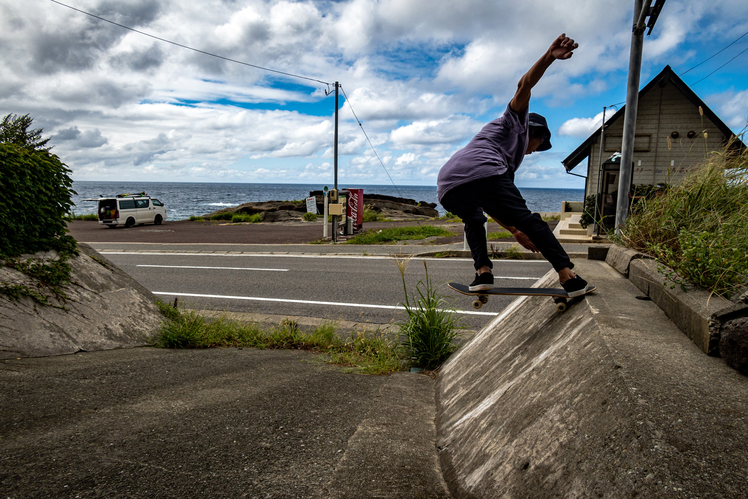 スケートボードでは、Expression 『RIDE PRIDE』に収録されている、2014年9月に撮影した新潟県名立のバンクインオーリー。波乗りへ行く時に見える、ずっと気になっていたスポットを2年越し2回目のトライでメイク。