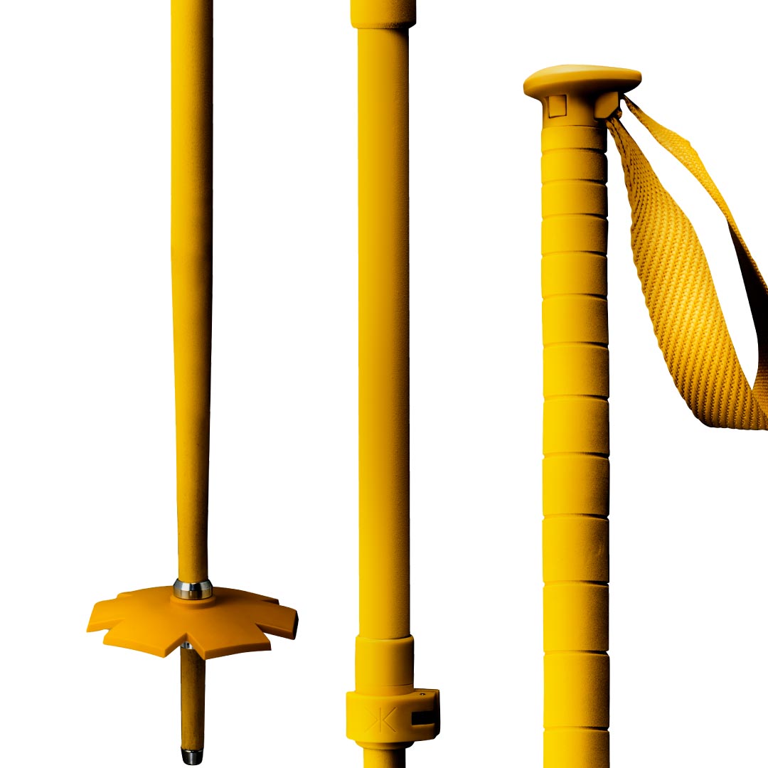 亜麻はアルミニウムよりも12%強く、カーボンファイバーより19%弱いものの250%曲げることが可能で、さらにカーボンファイバー製ポールと比べるとCO2排出量が約5分の1、というポールに最適な性質を備えた素材です。これは自然に対しての責任と、雪上でのパフォーマンスの完璧な組み合わせで、100%亜麻製のシャフトは上部22mm、下部18,5mm の2分割で設計され、毒素のないパウダーコーティングを施して耐久性を向上させています。