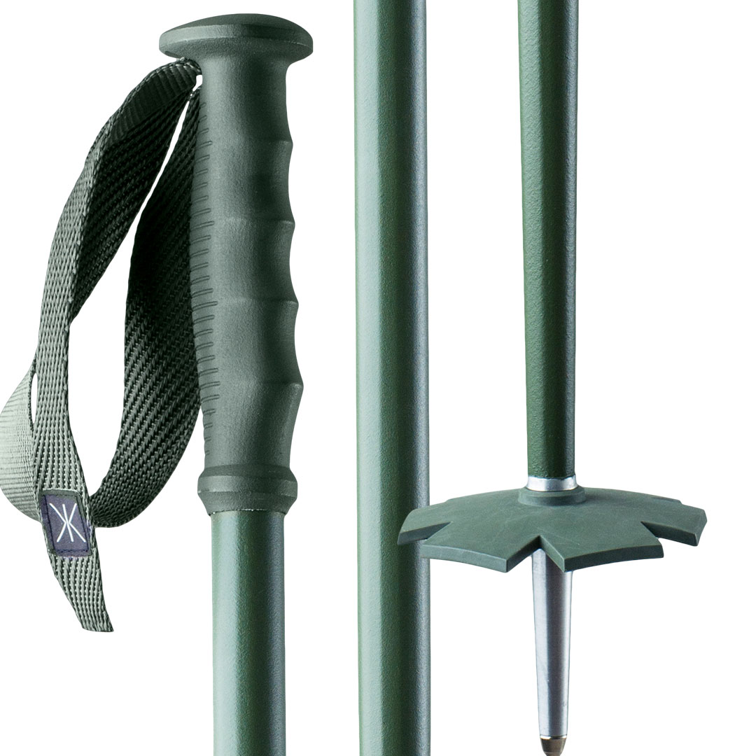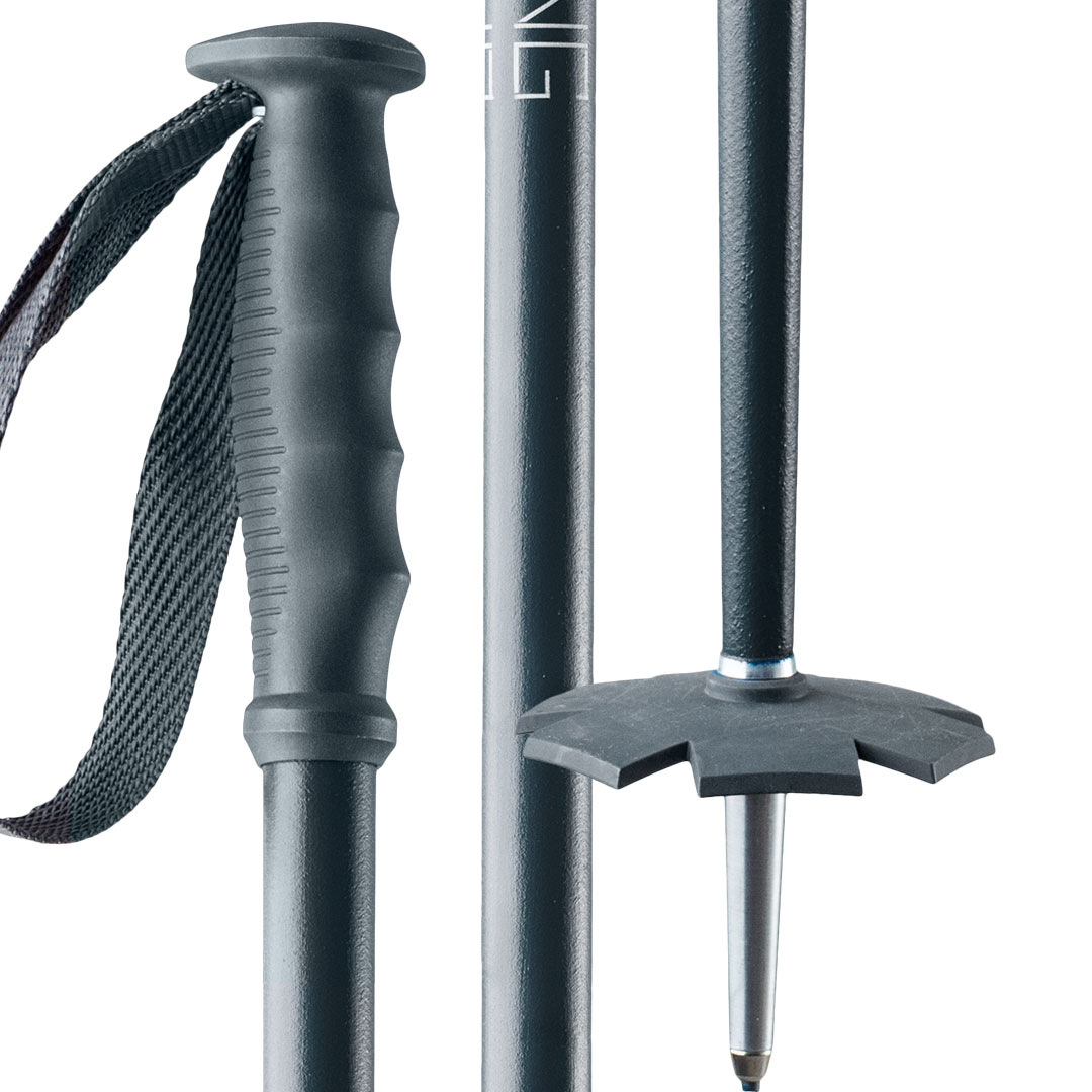 亜麻素材とカーボンファイバーを採用した太めの超軽量ポールです。各パーツには持続可能なリサイクル可能素材を使用し、限りなくスカンジナビアンデザインに基づいて設計されました。丈夫な21mmのシャフト部分は、美しい花を咲かせ、健康に良いアマニ油でも知られる亜麻を主原料とし、70%の有機亜麻繊維と30%のカーボンファイバーの組み合わせにより耐久性を向上させています。100%カーボンファイバー製のポールよりも柔軟性に優れ、CO2排出量が少ないことも特徴です。グリップは滑りにくい表面と人間工学に基づいた独自のデザインにより、フリーライディングにもハイキングにも最適で、ストラップは片手で締めることができるため、強烈な寒さのなかで手袋を外す必要はありません。バスケットは深い雪でも硬い表面でも機能するように設計されており、一般的なバスケットよりもわずかに柔らかく、さまざまな状況にスムーズに対応し、簡単に交換することができます。先端はリサイクル可能なアルミニウム製で、岩の上でのハイキングで使用することも可能です。