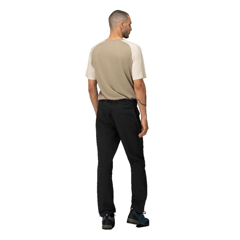 マウンテニアリングに必要な立体裁断が施されたソフトシェルパンツです。オリジナルのストレッチソフトシェル、flex1は高い伸縮性と通気性、撥水生を併せ持ち激しい動きにも対応します。サイドに虫の浸入を防ぐメッシュ付きベンチレーションダブルジッパー、スネ部のジッパーは開閉することで裾幅を調節可能で、あらゆるブーツにフィットさせることが可能です。Custom fit waist system™、3つのジッパーポケットを配し、裾には内蔵型のゲイターフックと絞りを調節するドローコードが施されています。