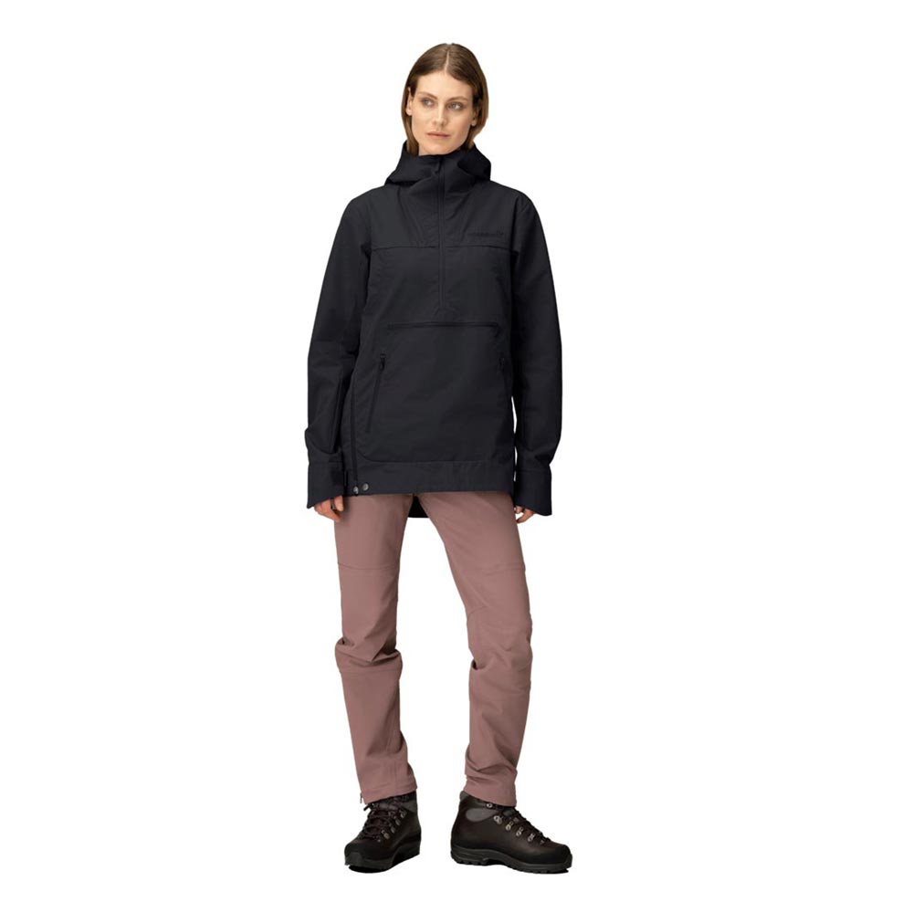 前部に大きなカンガルー ポケット、ハンドウォーマーポケット、ベンチレーション機能と着脱をスムーズにする長めのサイドジッパーが配されています。さらにPFCフリーのDWR(耐久撥水)加工を施し、撥水性を向上させています。