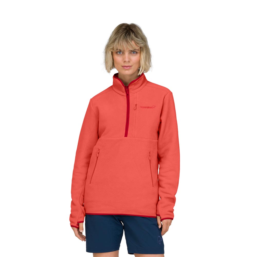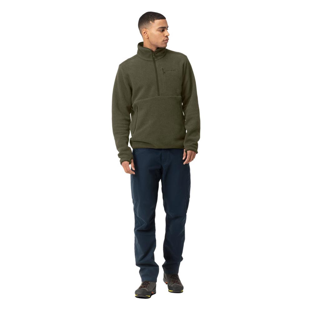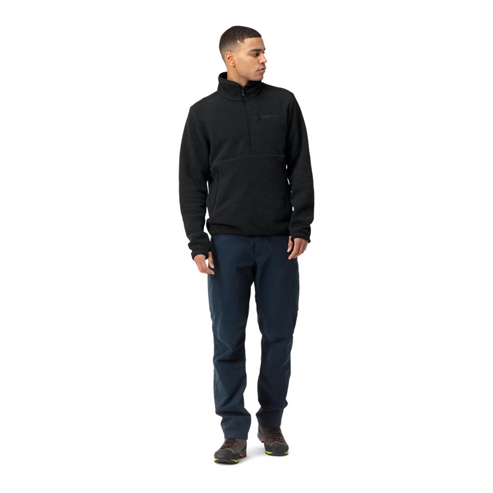 クラシカルなデザインのハーフジップジャケットです。生地には速乾性・断熱性・通気性に優れた中厚フリース素材を使用し、アウトドアから日常の普段使いにも最適です。大きなカンガルーハンドウォーミングポケット、チェストポケット、冷気の侵入を防ぐ高めの襟を備え、袖口は伸縮性があり、サムホールが施されています。