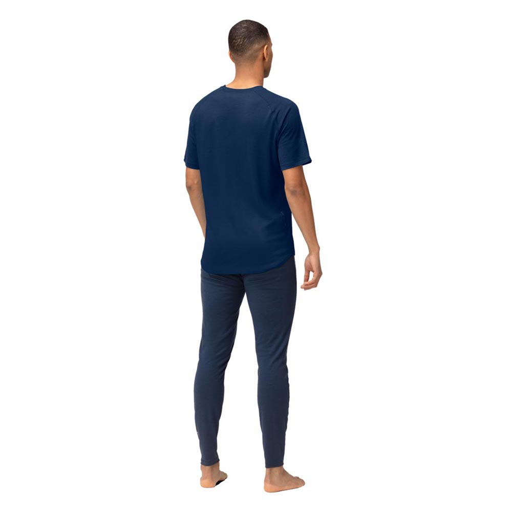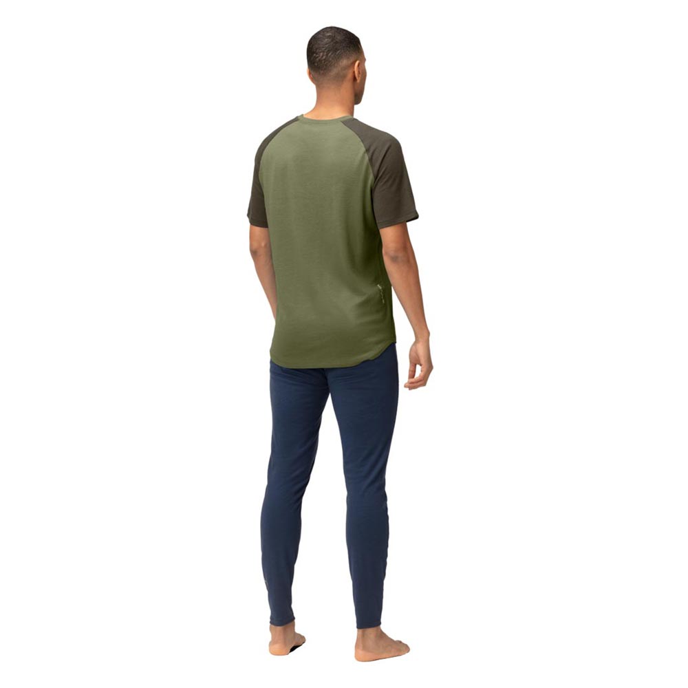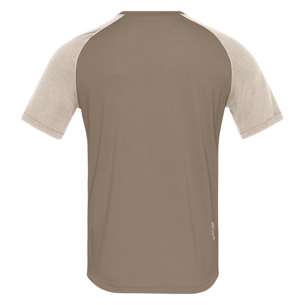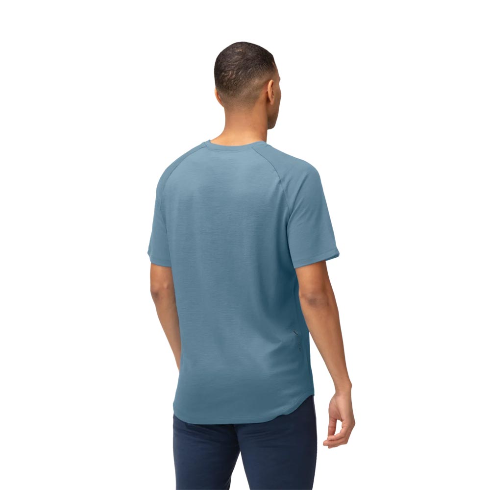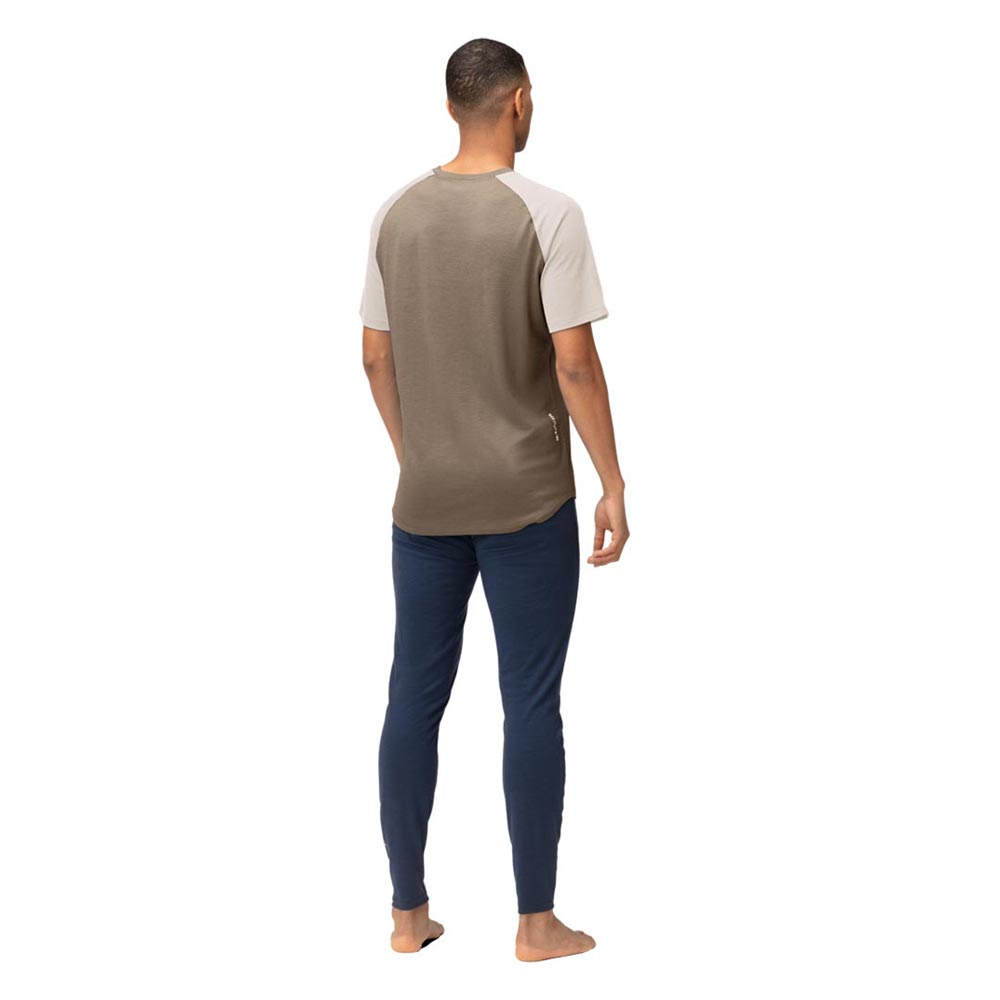 濡れても体温を保持して暖かく、高い防臭性を持つ100%メリノウールで作られたTシャツ。その特性から長期遠征やあらゆるアウトドアアクティビティに最適です。軽量な180g/m²の生地は、超極細の18.5マイクロン繊維で作られ、柔らかさと耐久性を兼ね備え、毛羽立ちを最小限に抑えて痒くなりにくく、ピリング(引っ掛かり)が少ないという特徴があります。素材のウールはRWS認証を取得済みで、精製と縫製はヨーロッパで行われており、品質表示のラベルは肌に干渉するために採用せず、代わりに首と側面の裏地に情報がプリントされています。