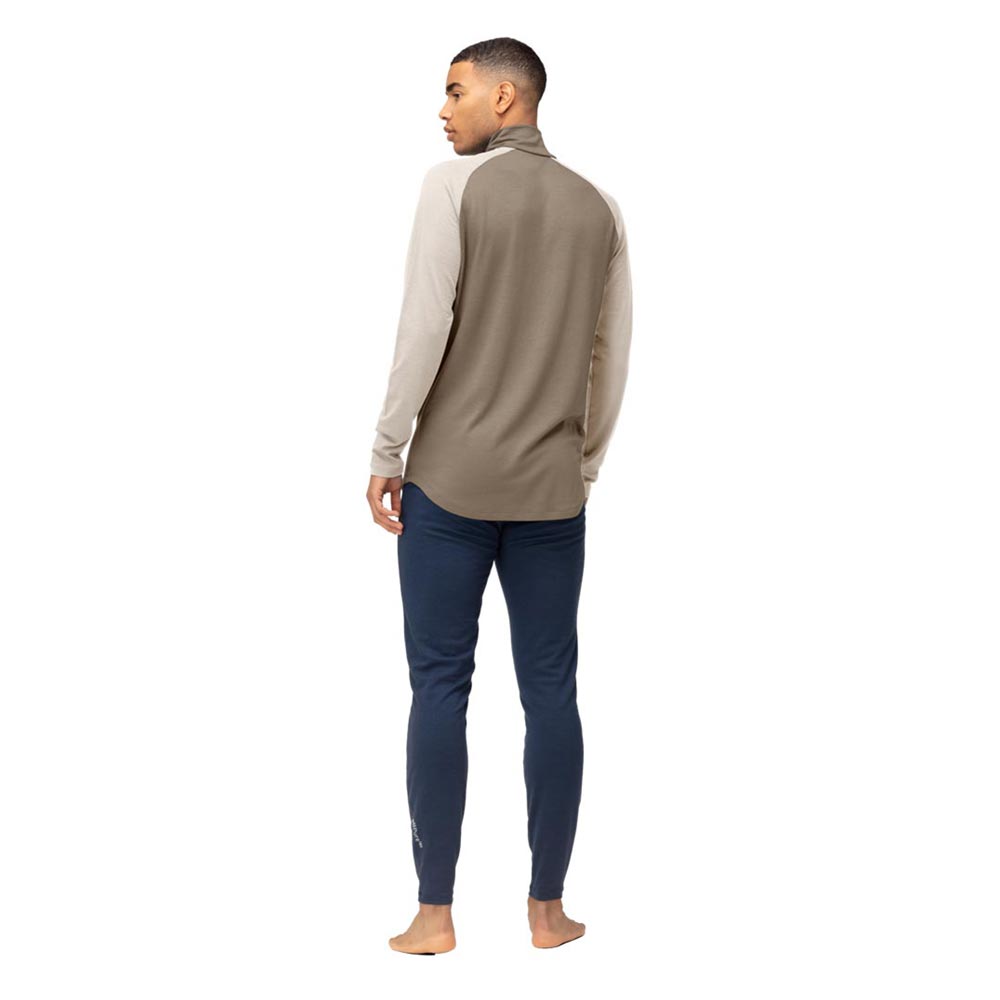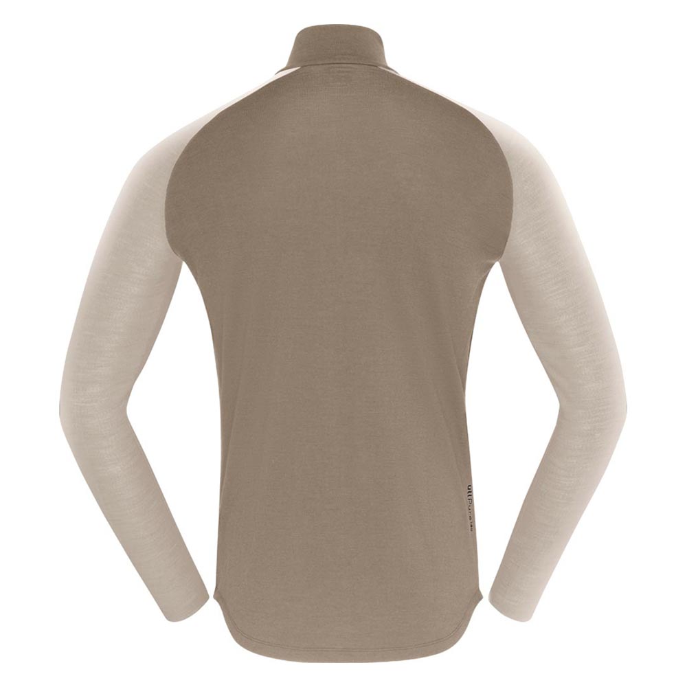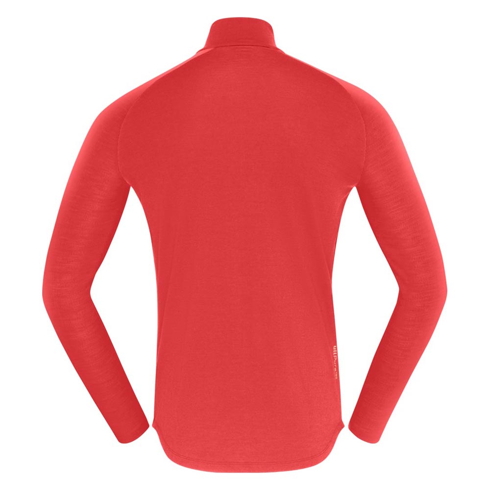 濡れても体温を保持して暖かく、高い防臭性を持つ100%メリノウールで作られたジップネックシャツです。その特性から長期遠征から一般的なあらゆるアウトドアアクティビティに適しています。軽量な180g/m²の生地は超極細の18.5マイクロン繊維で作られ、柔らかさと耐久性を併せ持ちながら、毛羽立ちを最小限に抑え痒くなり難く、ピリング(引っ掛かり)し難い特徴があります。このウールはRWS認証を取得しており、精製と縫製はヨーロッパで行われています。品質表示のラベルは肌に干渉する為なくし、首と側面の裏地に情報がプリントされています。また、製品を吊り下げて干すためのハングループは、サイドシームに取り付けられています。