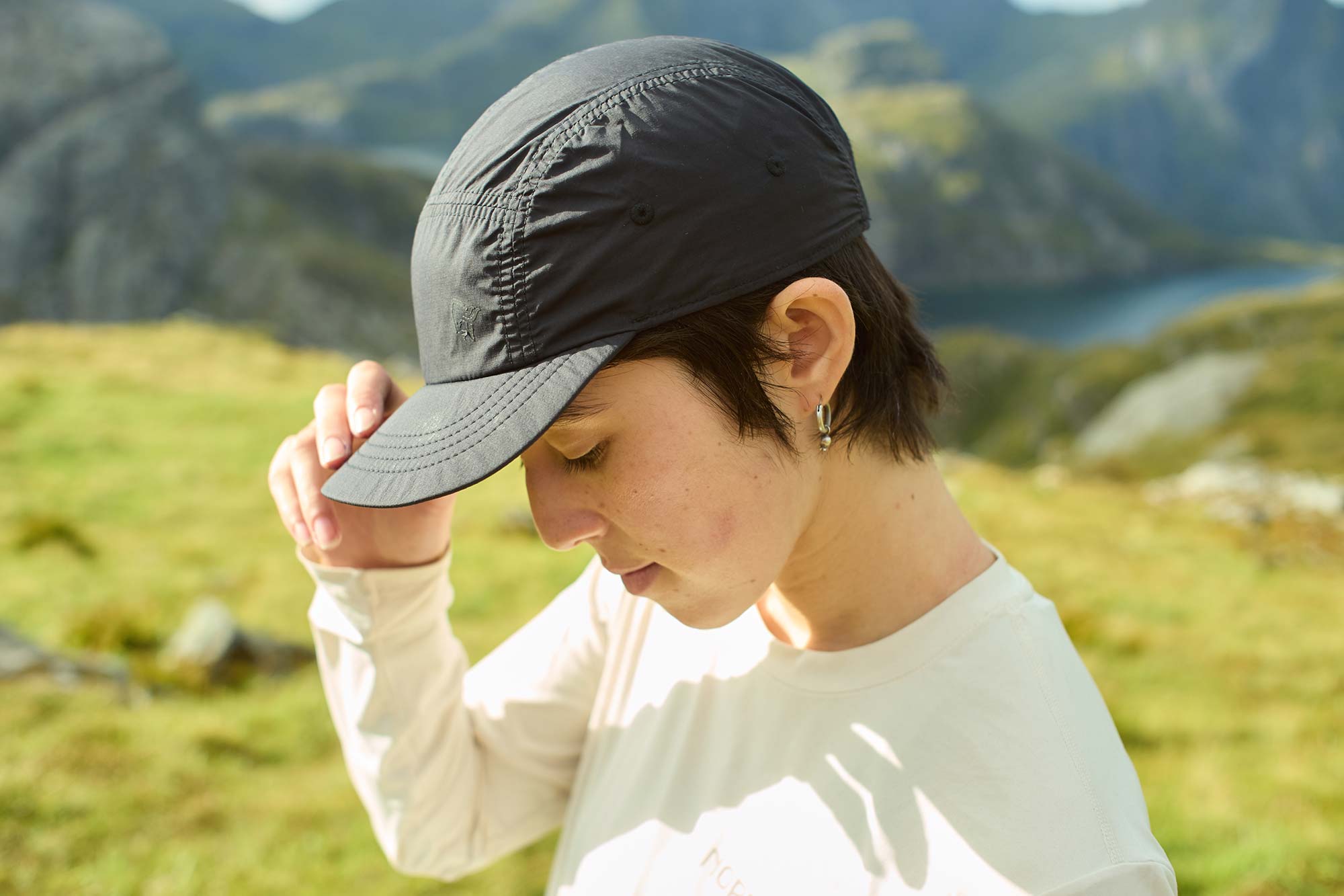 トレイルランニングなどのエンデューロアクティビティーに適した耐久性の高いフィットキャップです。湿気を吸い上げるライナーが付き、換気用のホールは刺繍で縁取られ補強されています。セミソフトなツバは形を変えられコンパクトに収納することが可能です。首裏のウェビングを調整することでフィット感を簡単に調整できます。