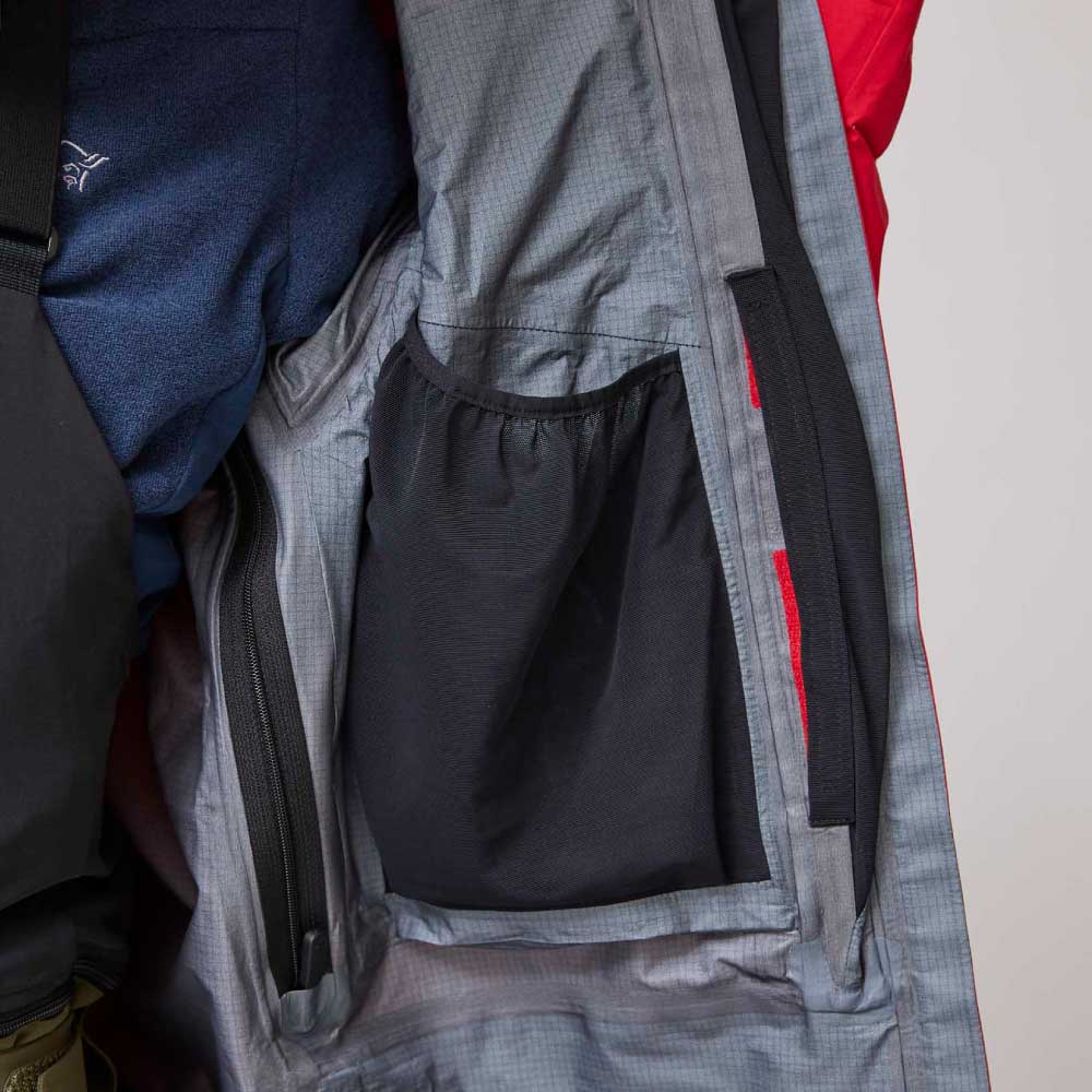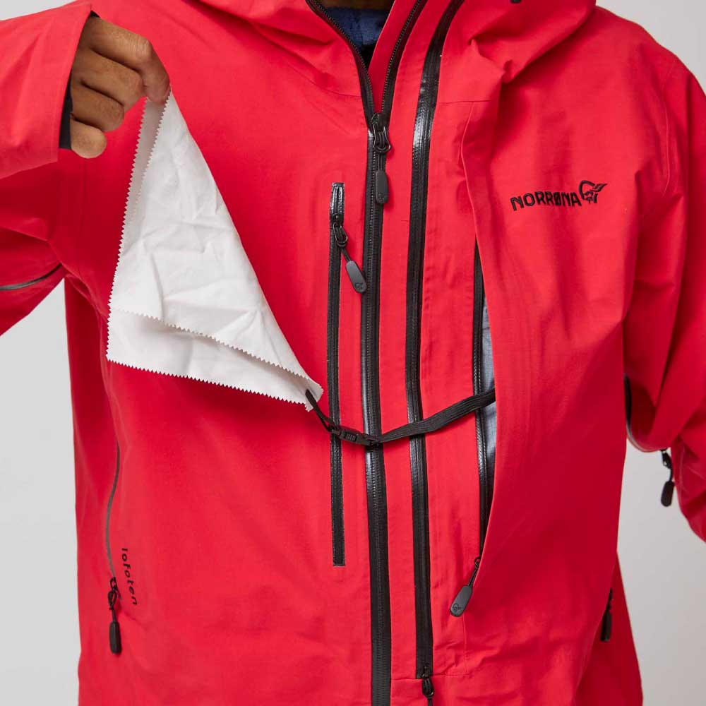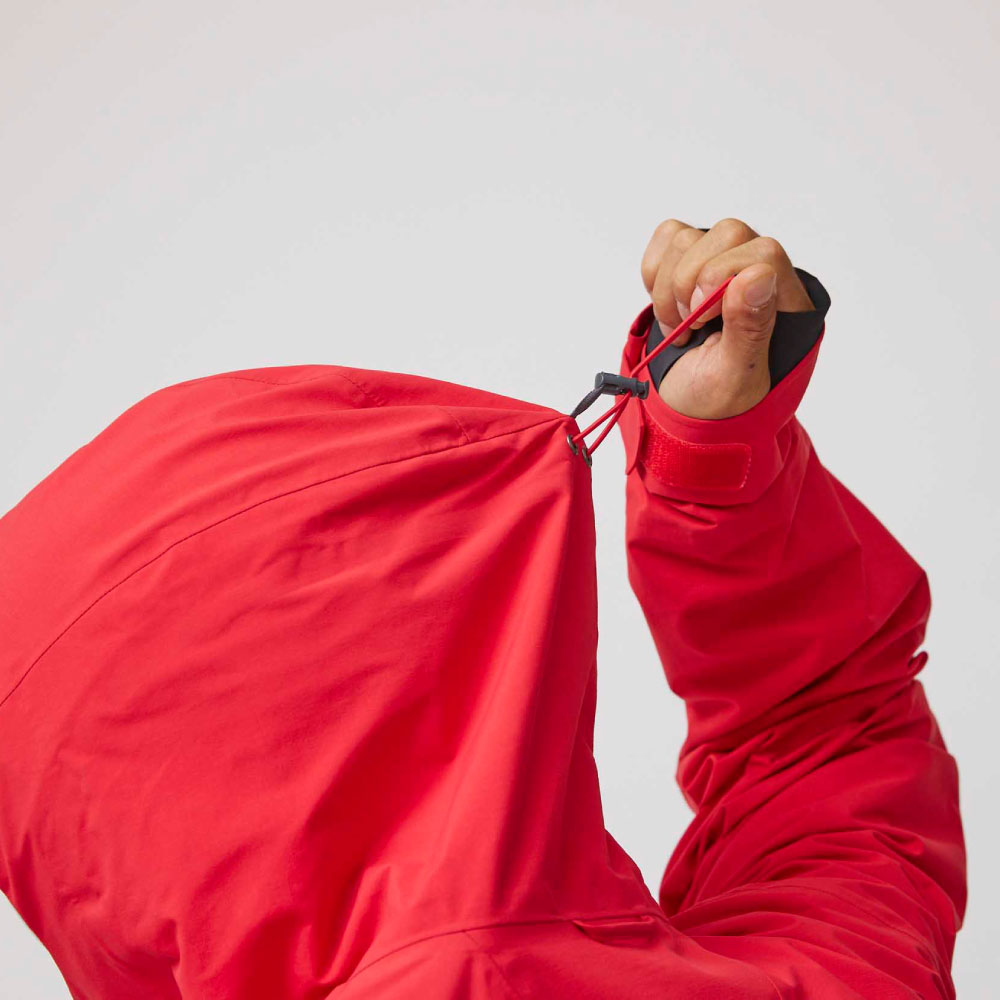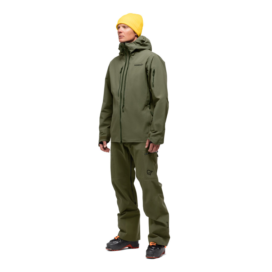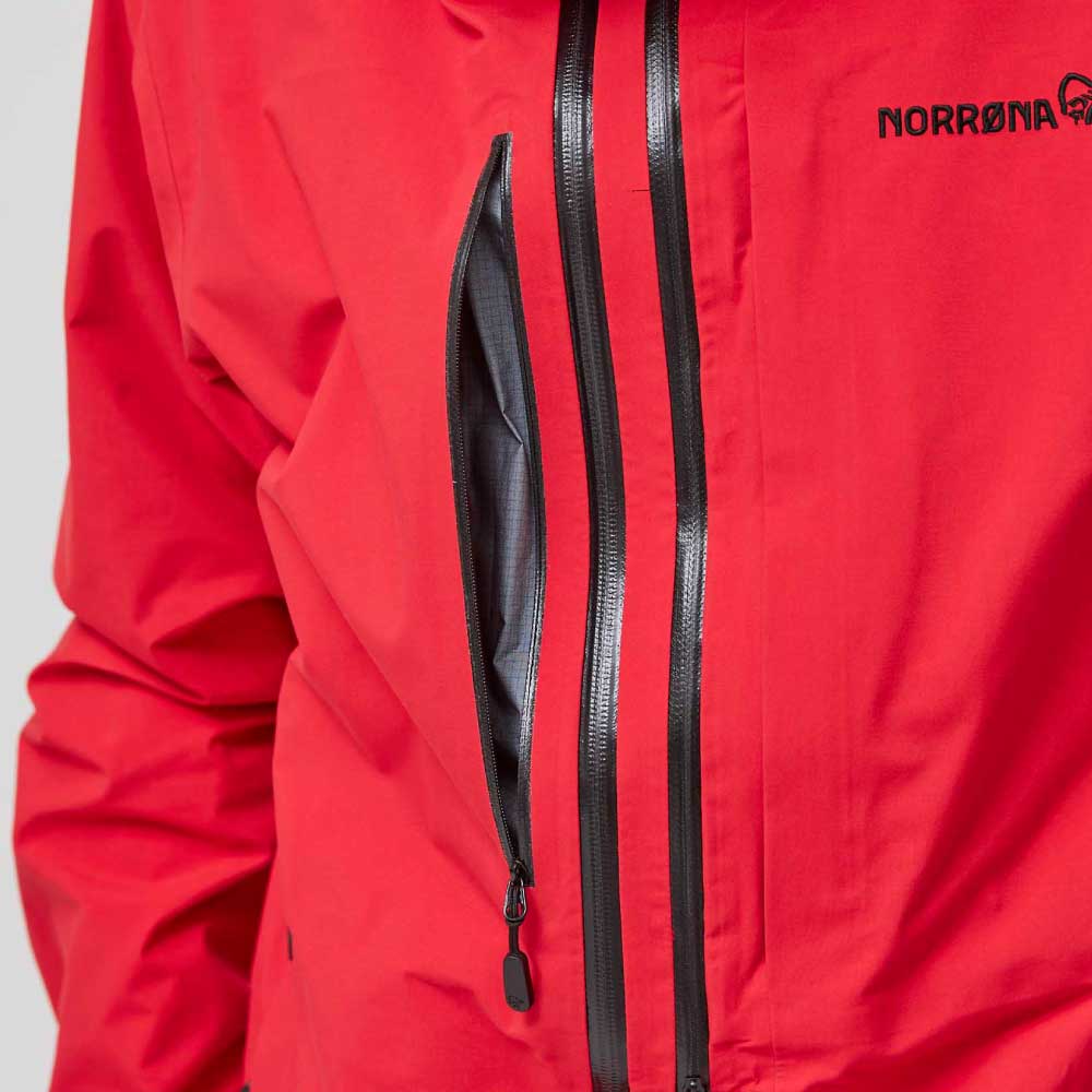アルパインエリアでのクライム&ライドなど、ハードコアな使用を想定したライディングジャケット。NORR?NAの全ラインナップ中、最も耐久性があり、高い透湿性と耐久性を誇り、タイトなツリーランや岩に囲まれた急峻なシュートも安心して攻めることができます。素材は進化したゴアテックス®プロの高い透湿性を追求したモストブリーザブルテクノロジーを採用。表地のリサイクルナイロンは70デニールをベースに要所を160デニール生地で補強。ブルーサイン認証済みのC6レベルのDWR処理で高い撥水性を維持しています。フロントファスナーを閉めたまま使える首元から大きく開くフロントメッシュベンチレーターに、斜めにセットされた脇下ベンチレーター、さらに熱気の出口となる上腕裏という3つのベンチレーターの効果で空気の流れを生み、より高い換気機能を発揮してジャケットの脱ぎ着の回数を減らします。フロントファスナーを開かなくても素早くアバランチビーコンを取り出せるアクセスホールなど、BC環境に特化したディテールにも注目です。ビブとのセットアップで10個所のポケットが使用可能。バックパックを下ろすことなく長時間行動し続ける滑り手に最適です。
