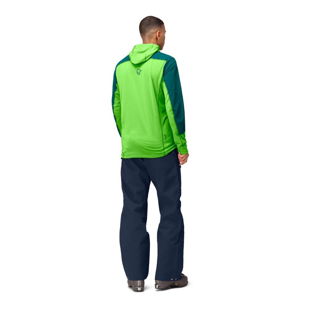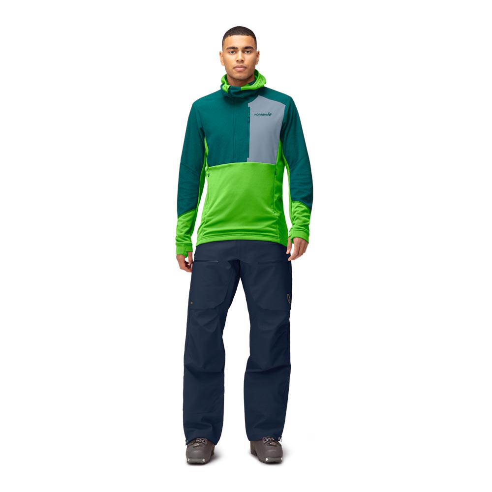 汎用性の高いミッドレイヤーです。アクティブに動いてもオーバーヒートしないように体幹を温めます。スキー/スノーボードはもちろん、登山、トレッキングといった様々なアウトドアアクティビティでも活躍します。最適な保温性と快適性を提供するために、各部位に異なったPolartec®ファブリックを配置して作られています。背中、お腹周り、脇の下、フード上部には優れた吸湿速乾性と収納性を併せ持つPolartec® Powe Grid™ 186g/m2 を使用し、活動中に蓄積された余分な体温を簡単に放出します。肩、首、袖には、優れた保温性と通気性を併せ持つPolartec® Thermal Pro® 193g/m2 を使用し快適な着心地を提供します。